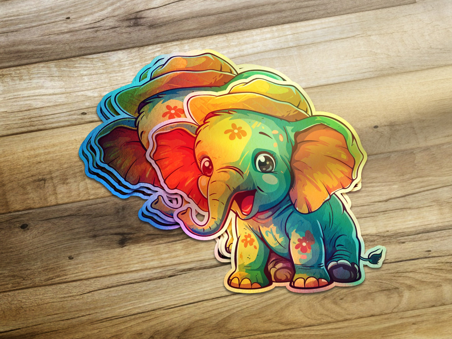 Add some whimsy to your life with this adorable baby elephant sticker! Features vibrant colors and a playful design, perfect for decorating laptops, and more!