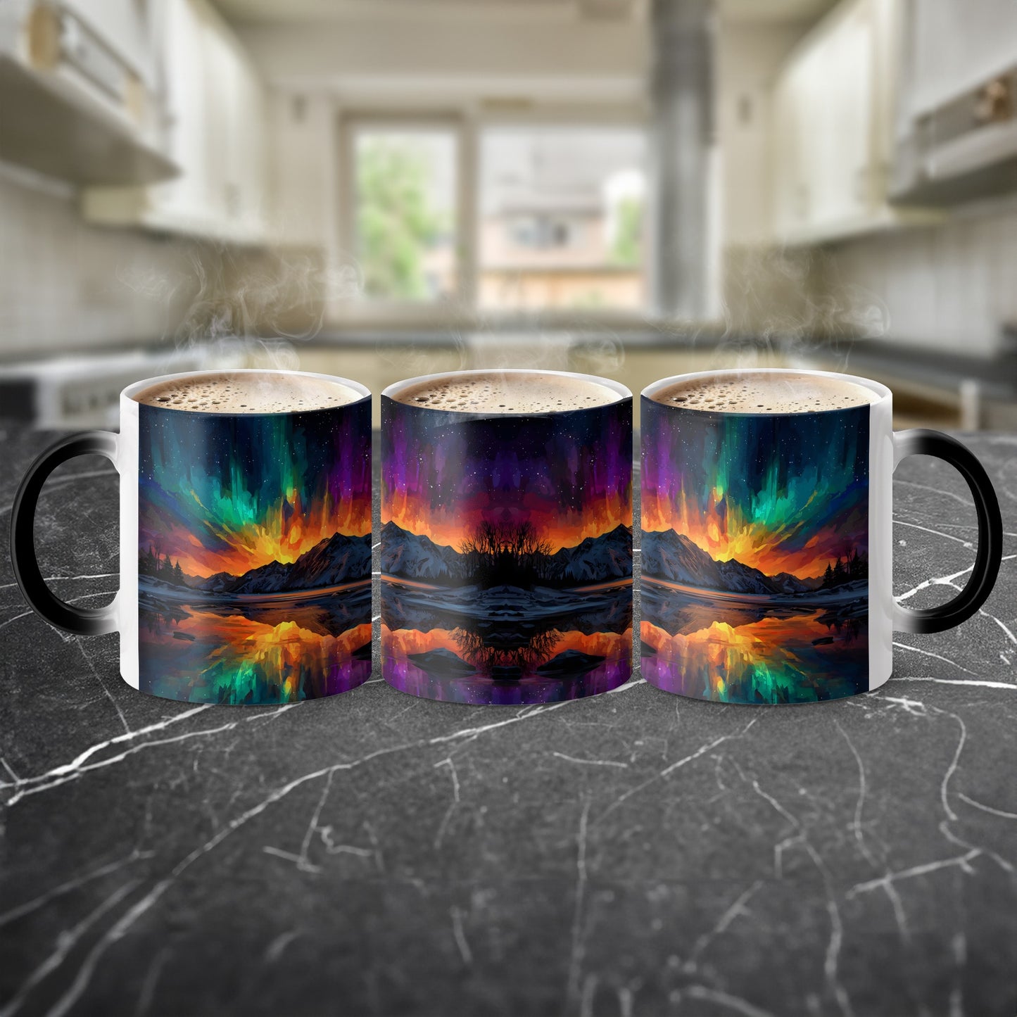 Aurora Borealis Over Mountain Lake Scenic View Mug