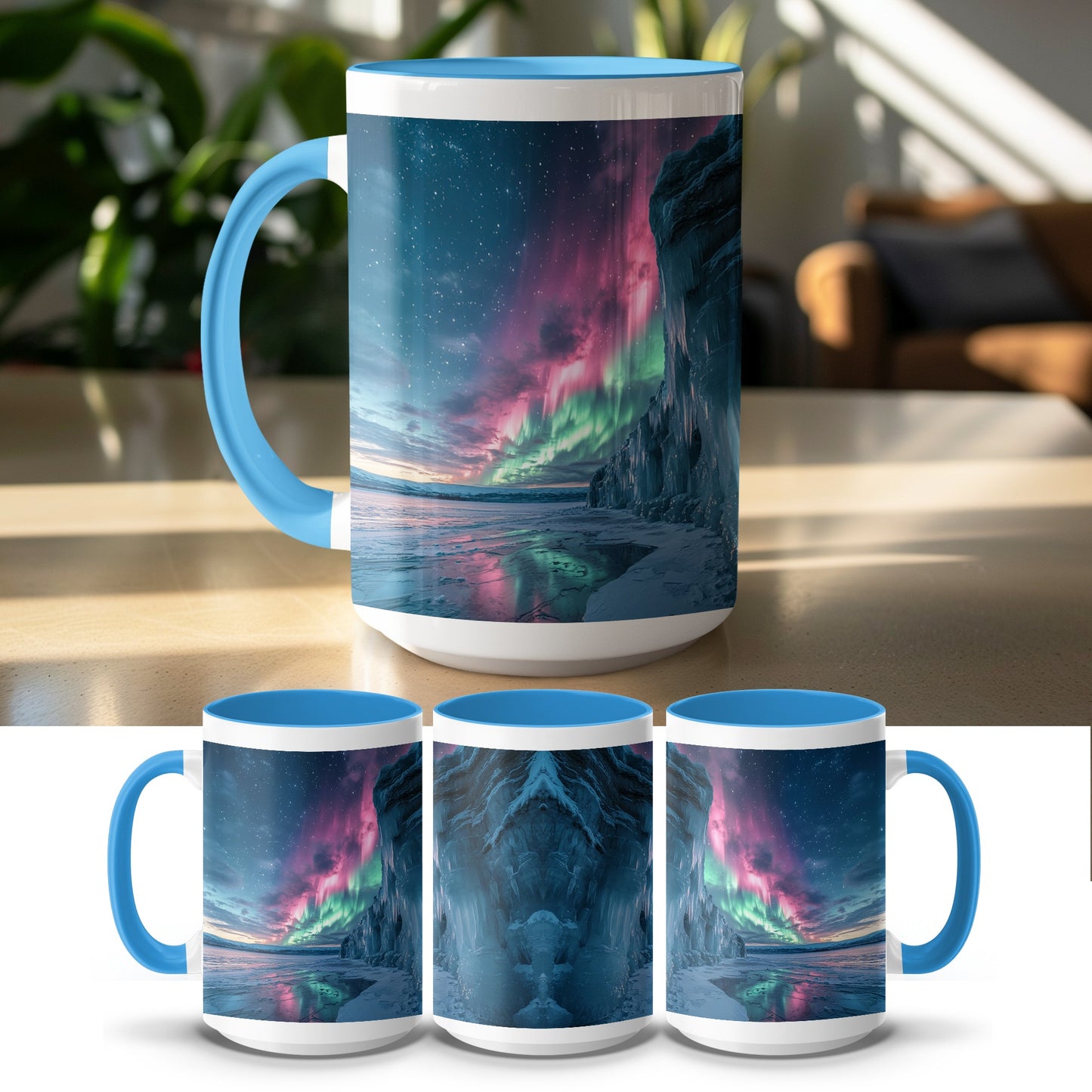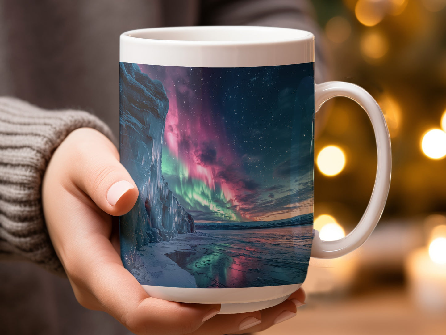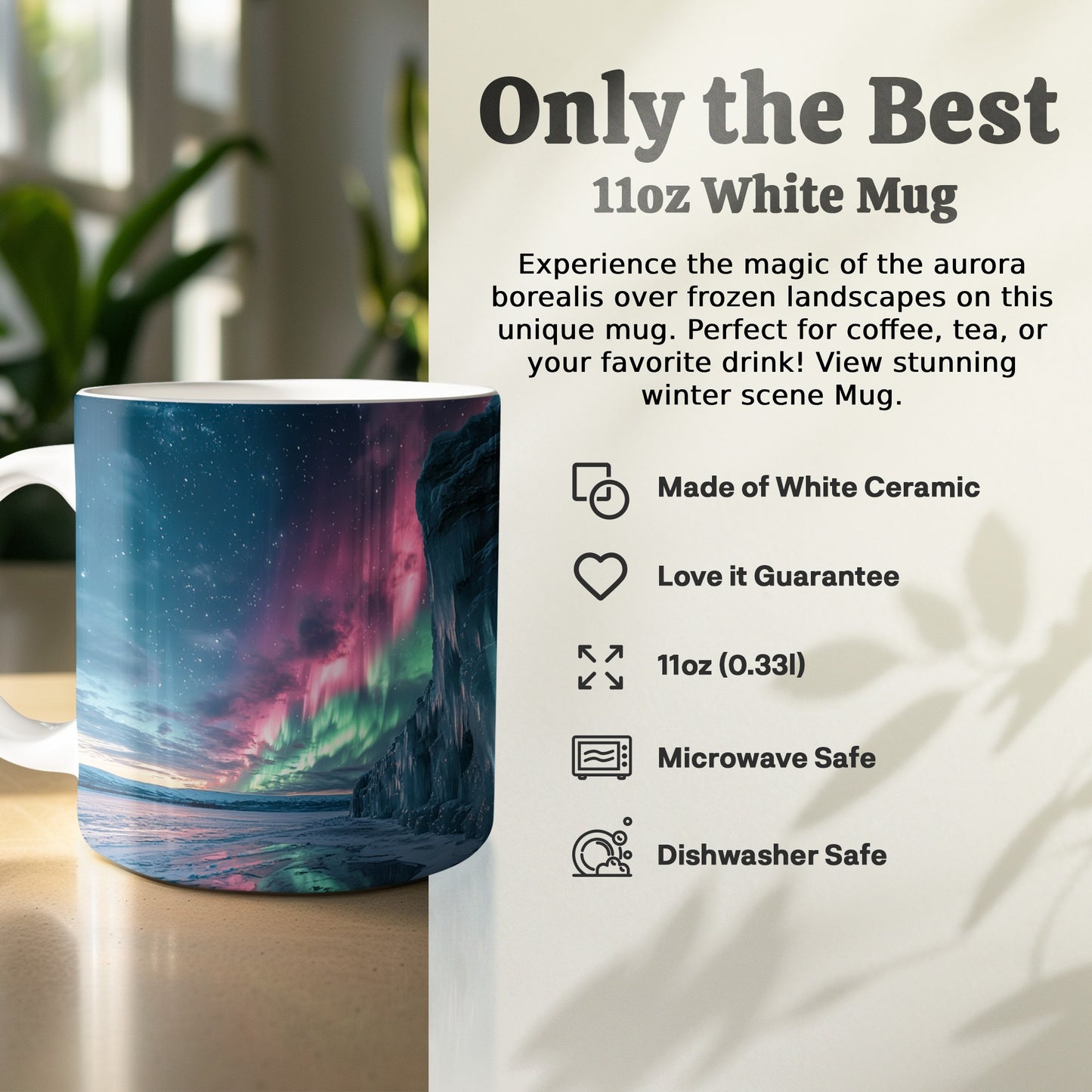 Mug: Aurora Borealis, Frozen Landscape, Colorful Sky, Winter Scene
