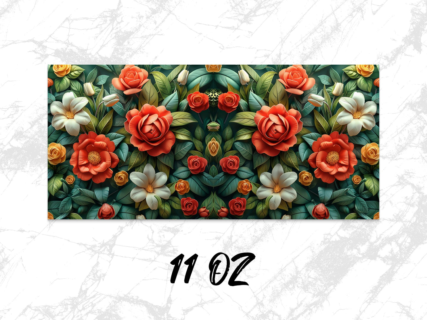 Transform your mug with a stunning floral design. This wrap features beautifully illustrated roses and leaves to give you a unique mug design. Perfect for flower lovers!