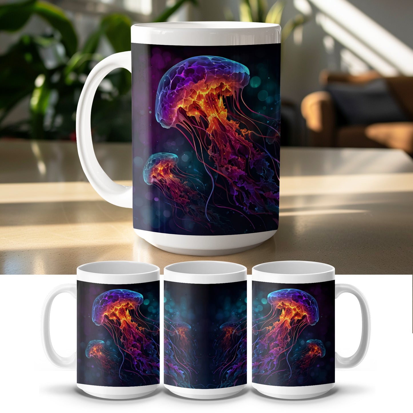 Bioluminescent Jellyfish Aquatic Life Abstract Design Mug