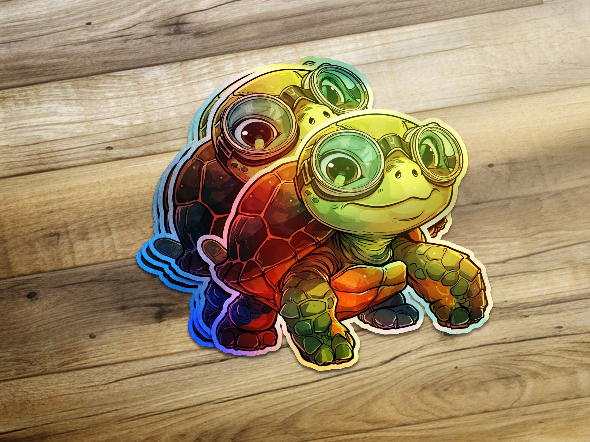Add a splash of whimsical charm to any surface with this adorable cartoon turtle sticker, sporting aviator goggles. Ideal for decorating laptops journals water bottles and more.
