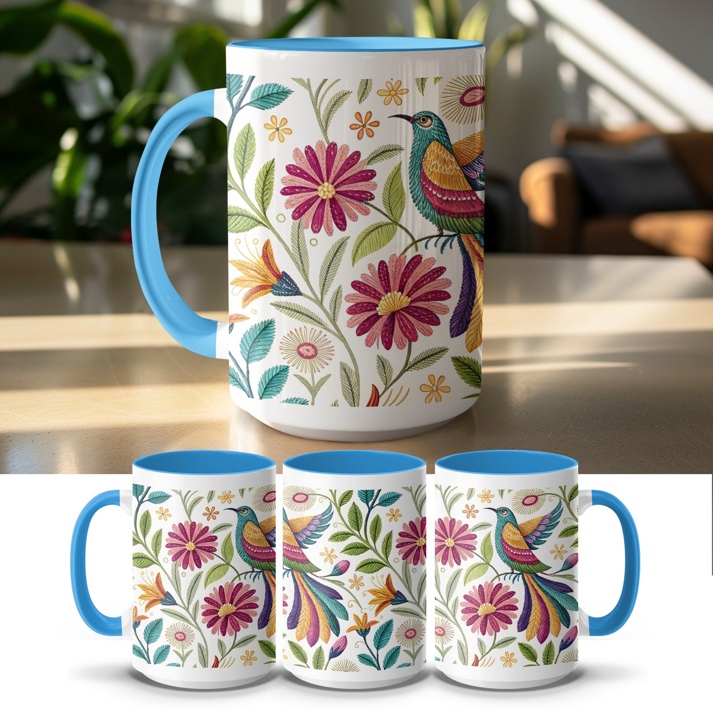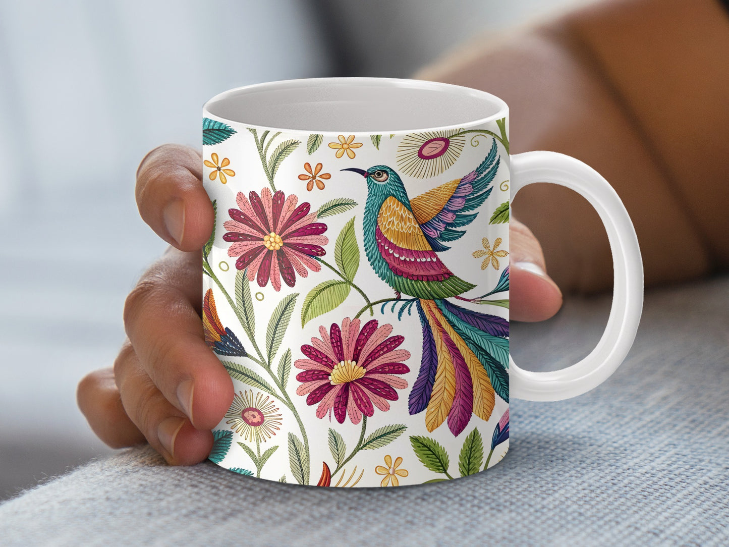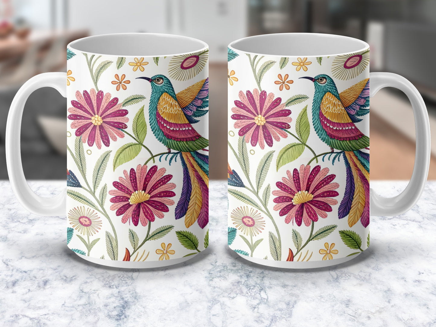 Experience the elegance of Otomi embroidery with this vibrant floral pattern featuring a colorful bird design. Perfect for adding a touch of sophistication to your projects Digital.