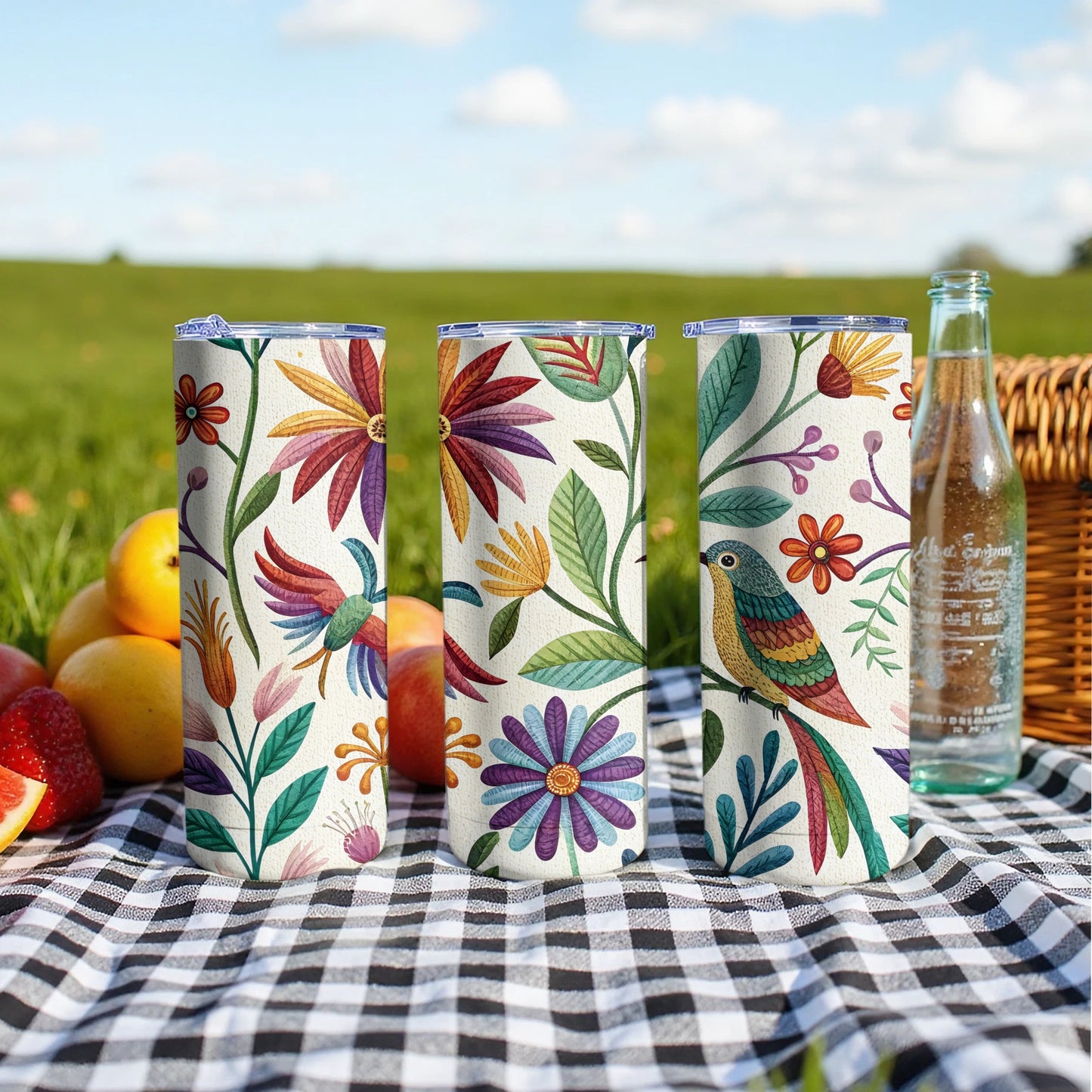 Colorful Birds and Floral Mexican Otomi Art Style Tumbler