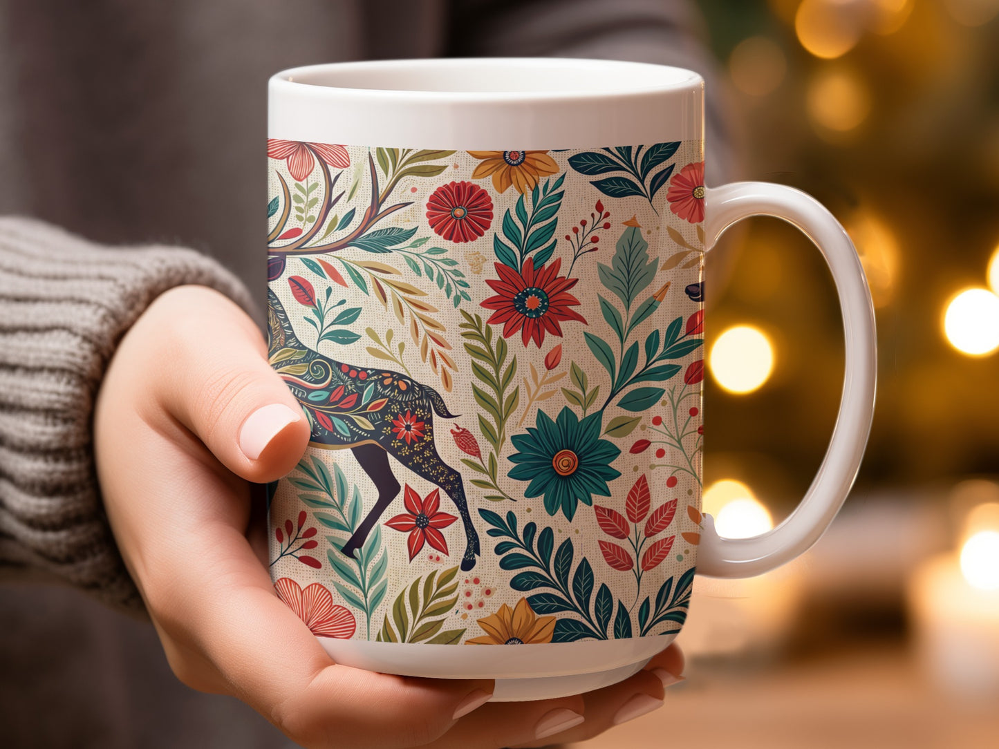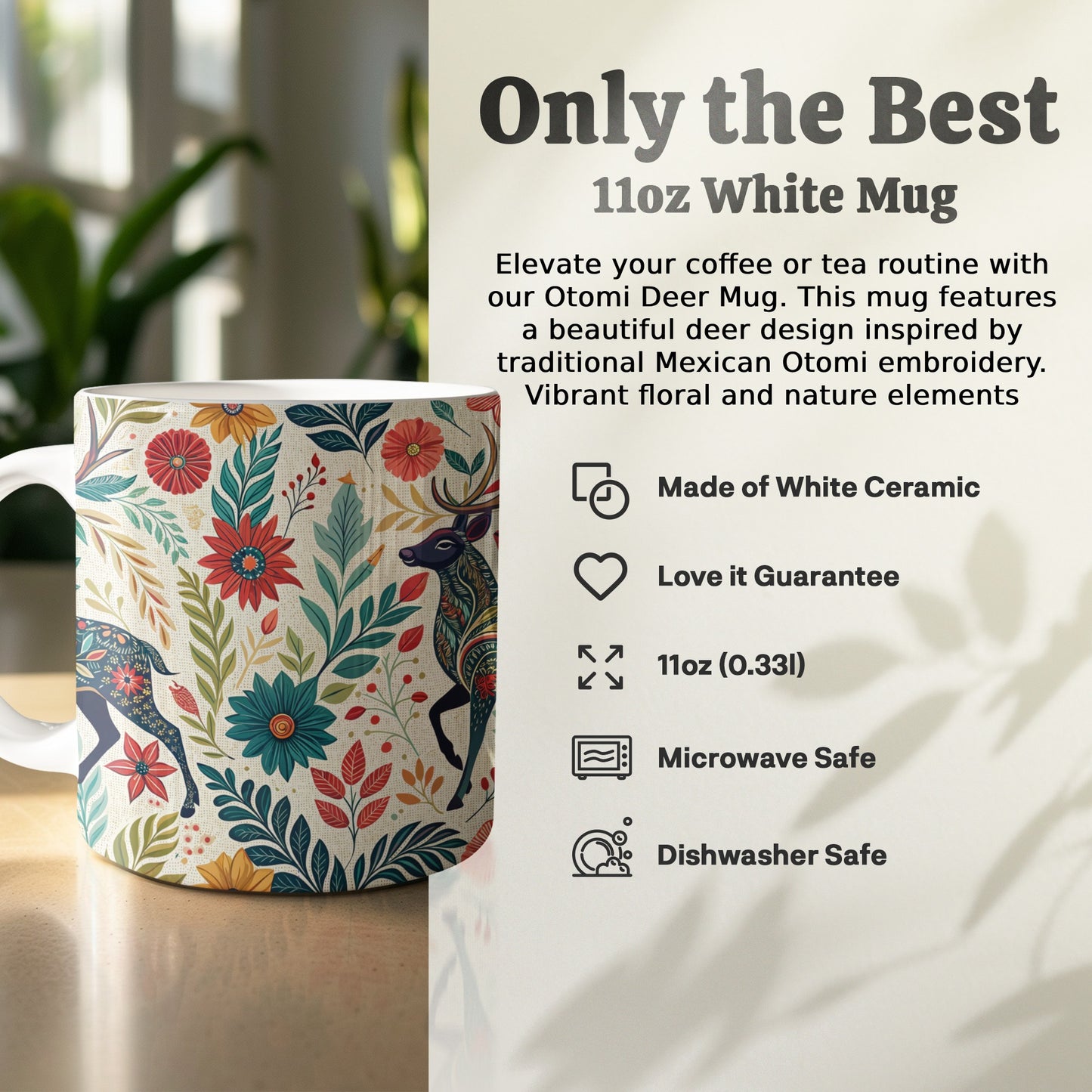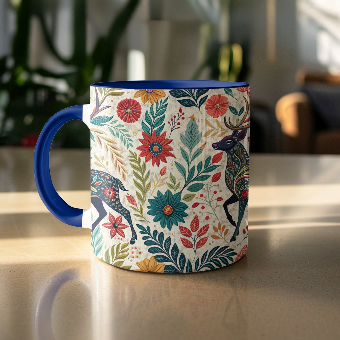 Colorful Deer Floral Design Mexican Otomi Style Mug