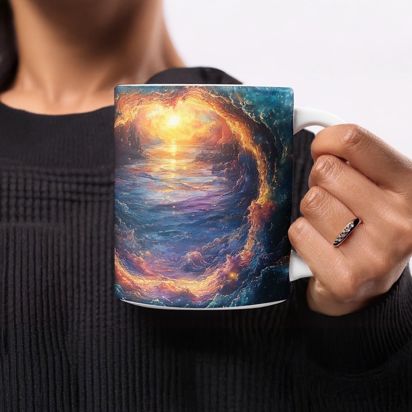 Galaxy Wave Mug: Space Nebula Design, Abstract Art, Coffee Cup