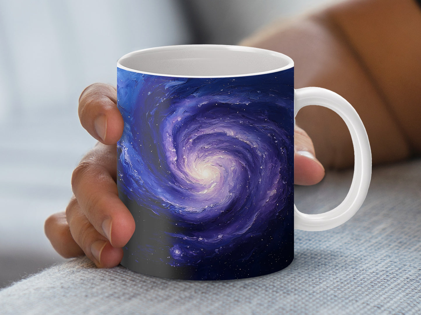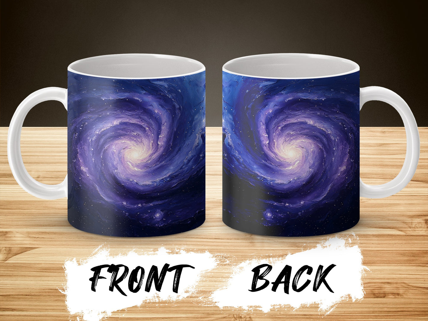 Transform your mug with this captivating cosmic swirls art design. A high-quality digital wrap displays galaxy inspired beauty perfect for adding a unique touch.