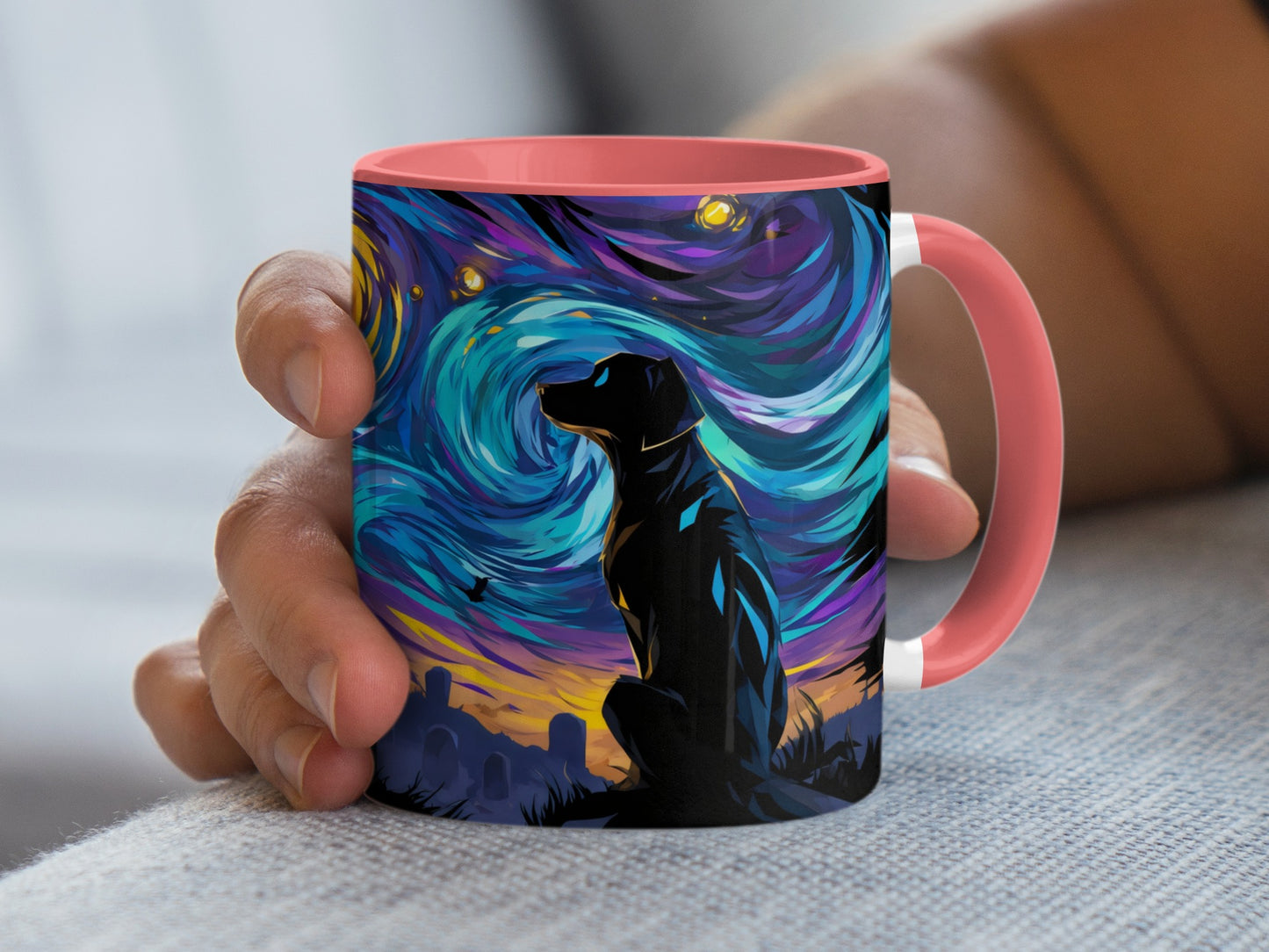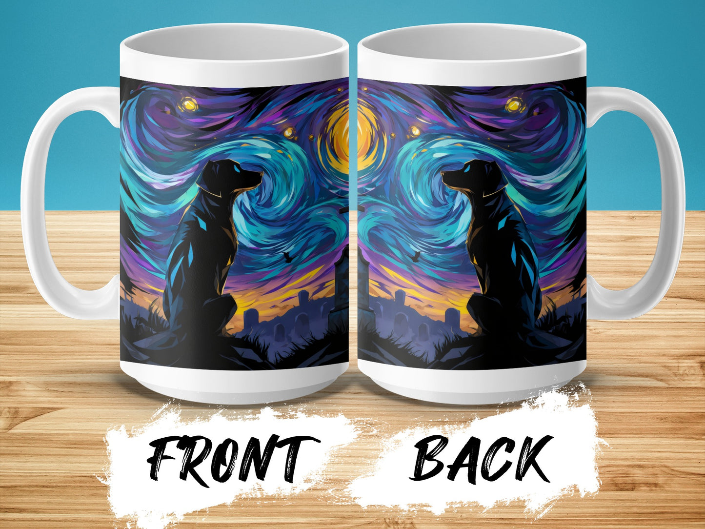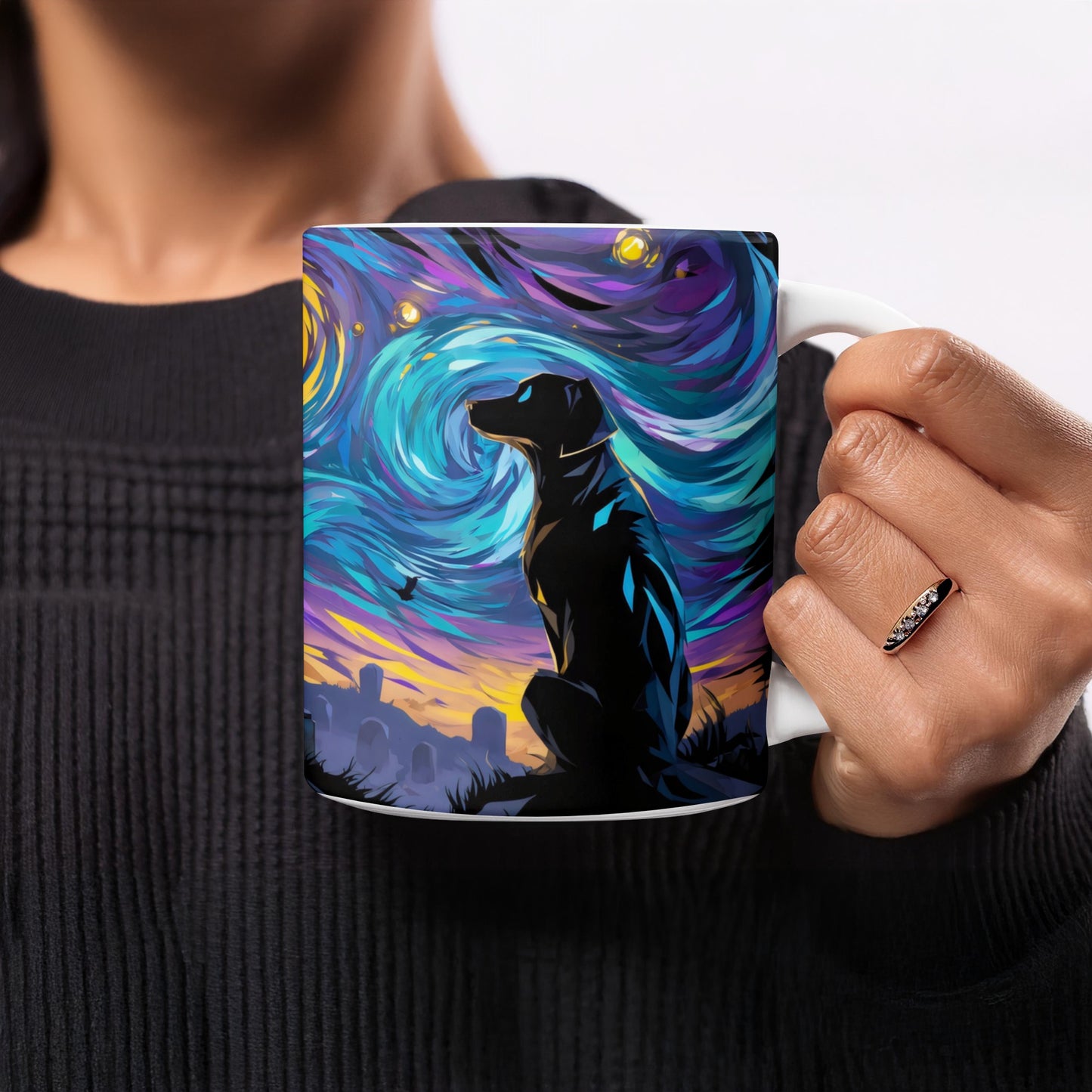 Dog at Graveyard Under Night Sky Dreamy Vibes Mug