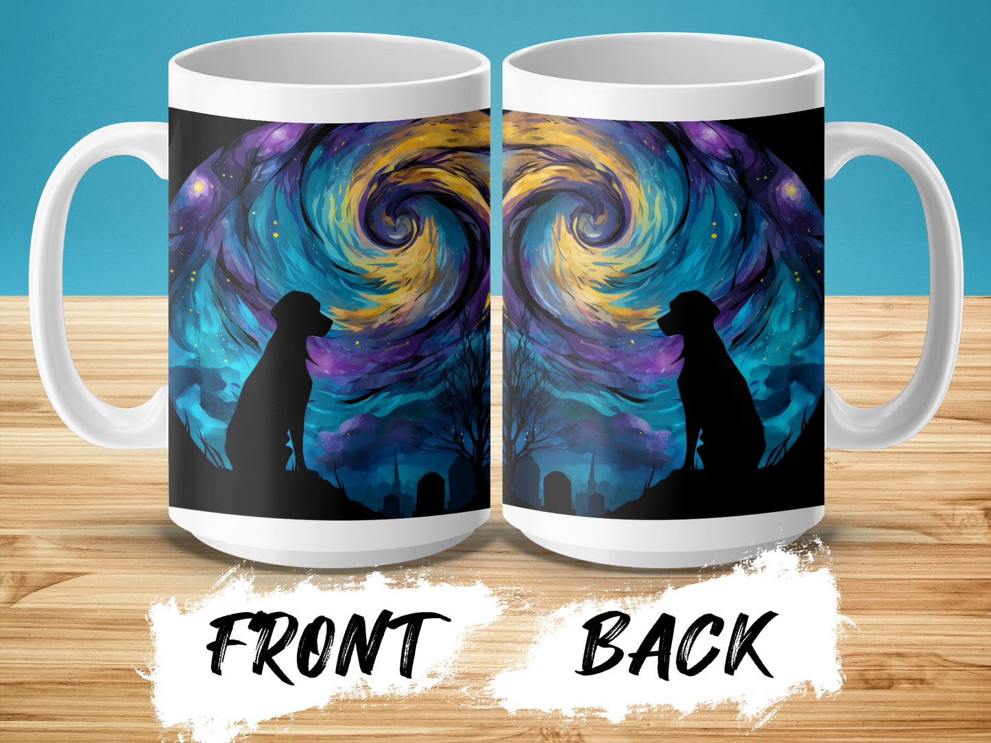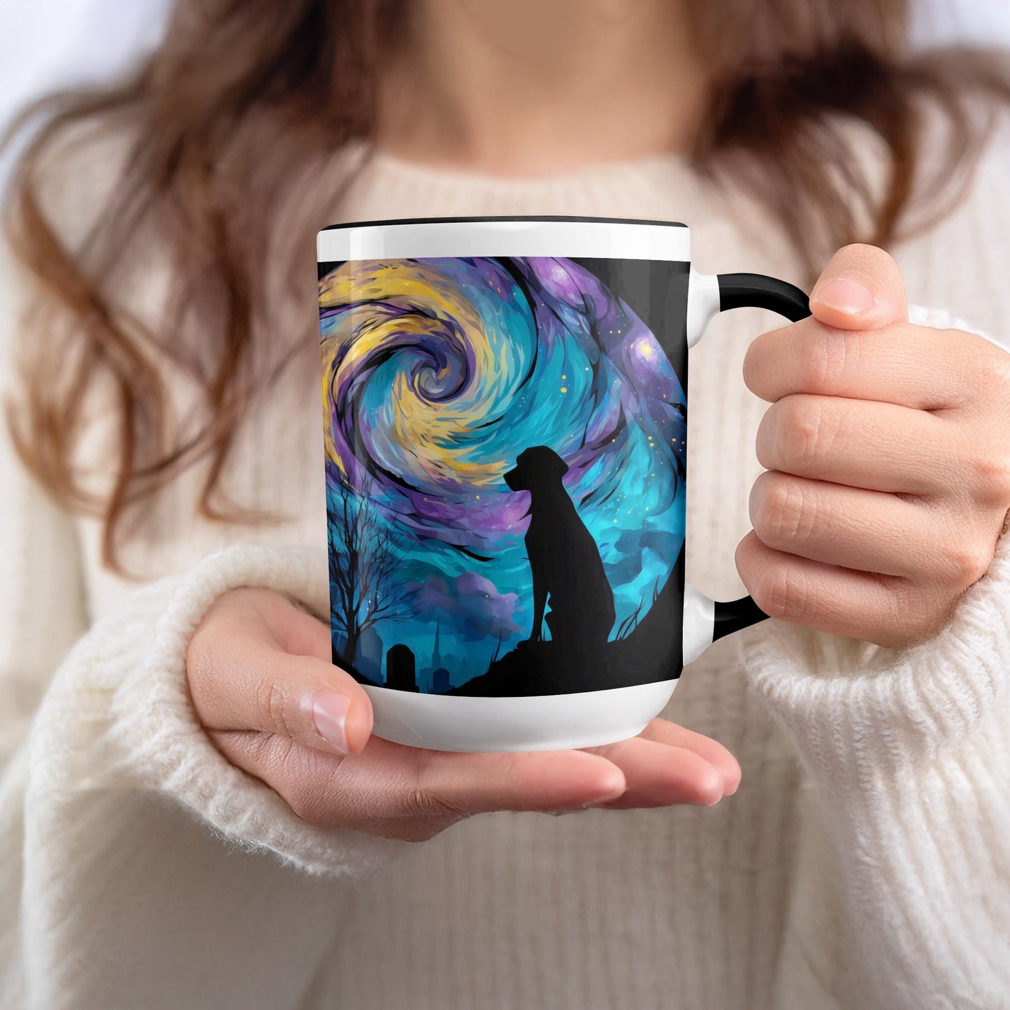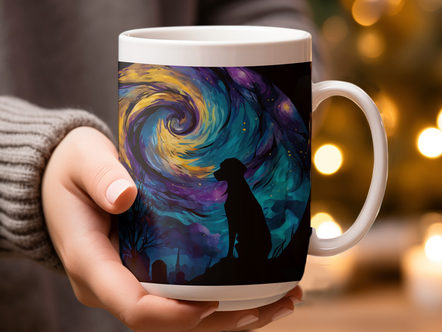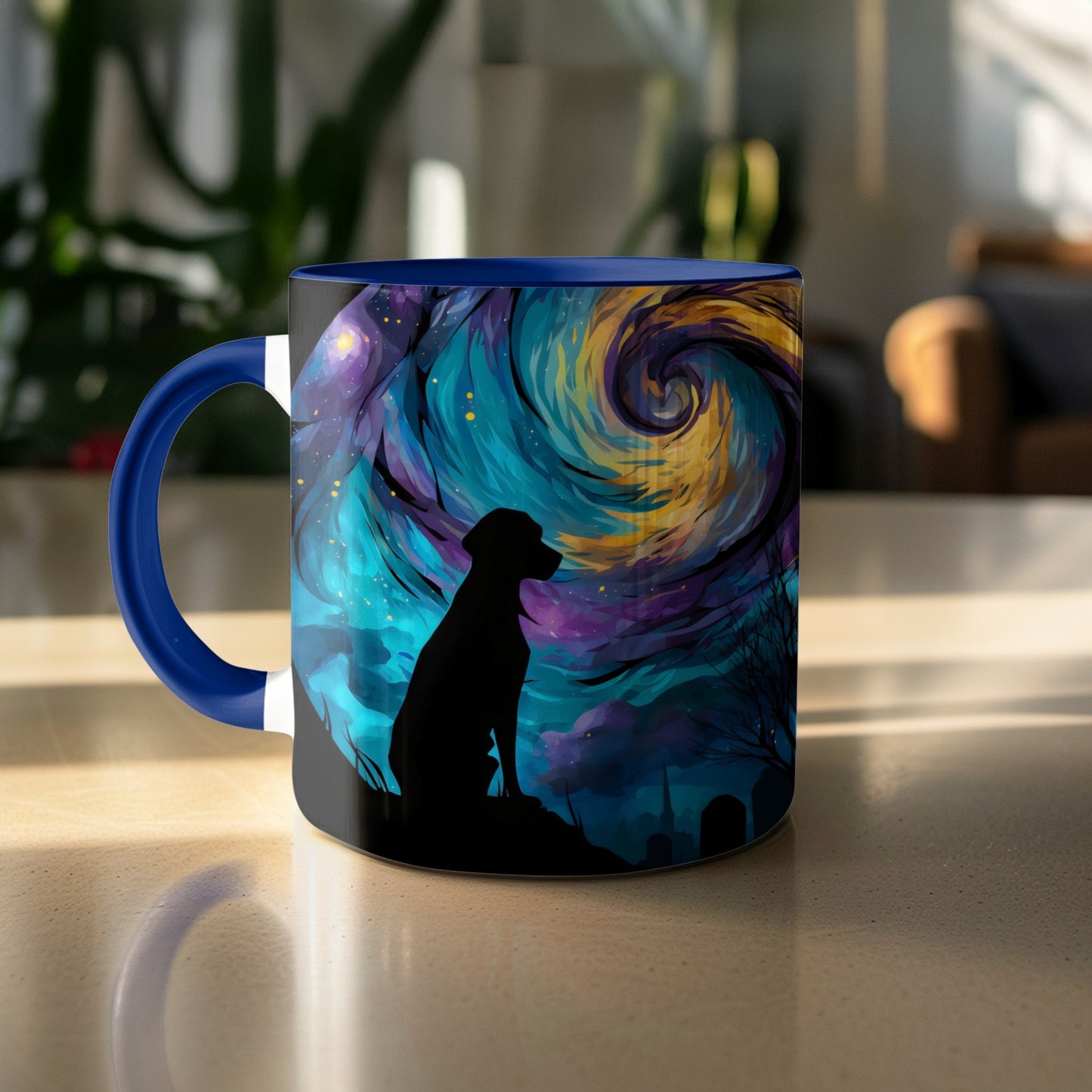 Dog Silhouette Under Starry Night Art Design Style Mug