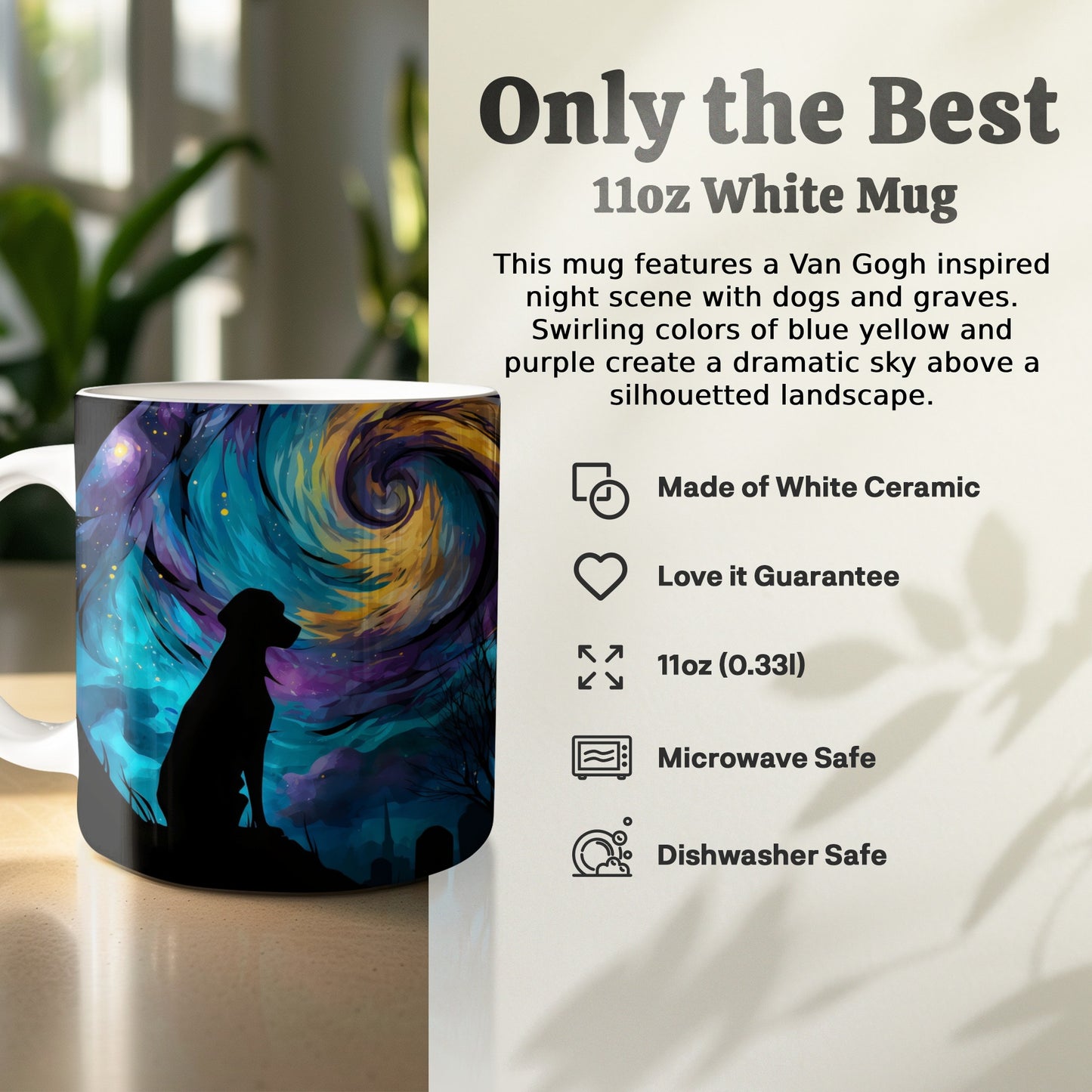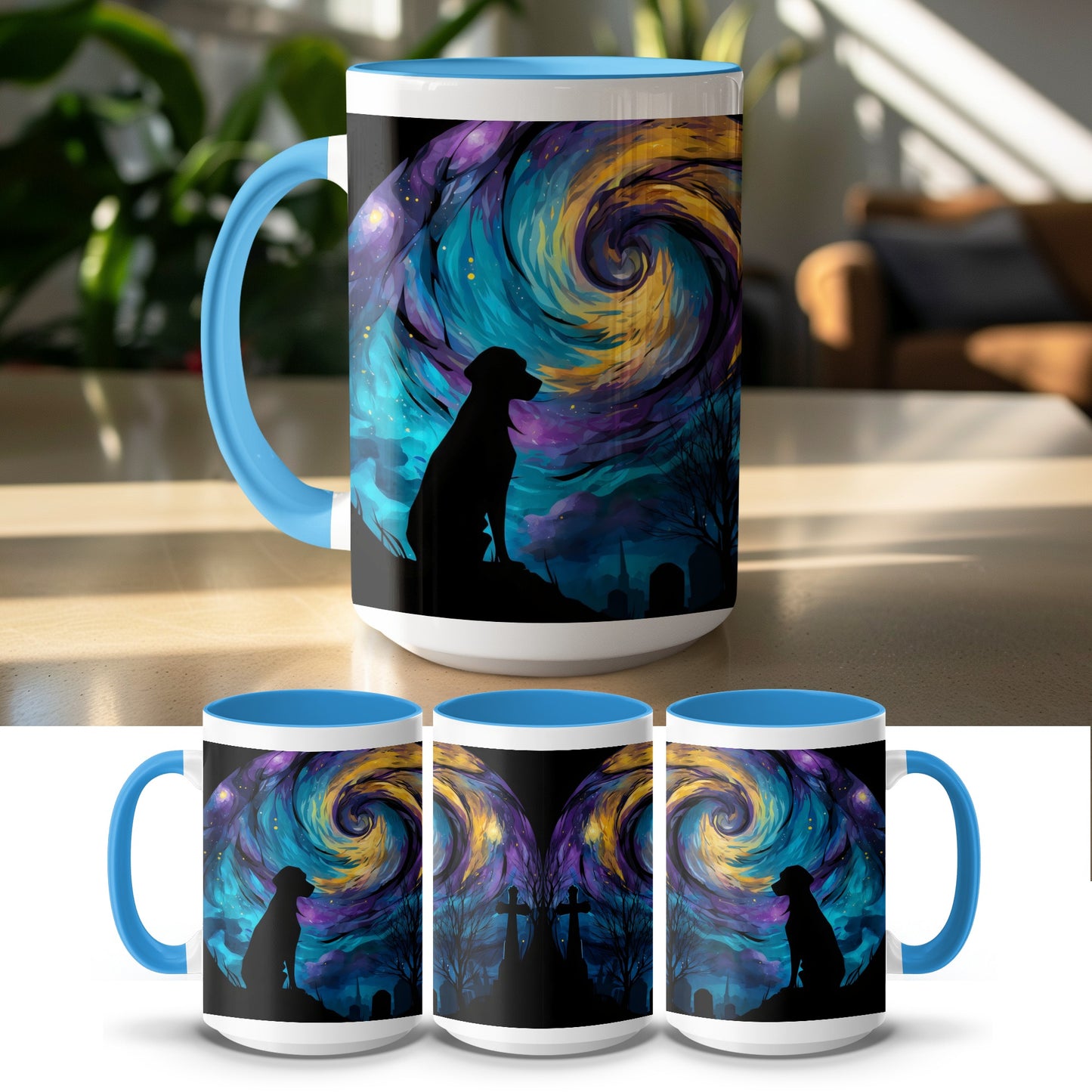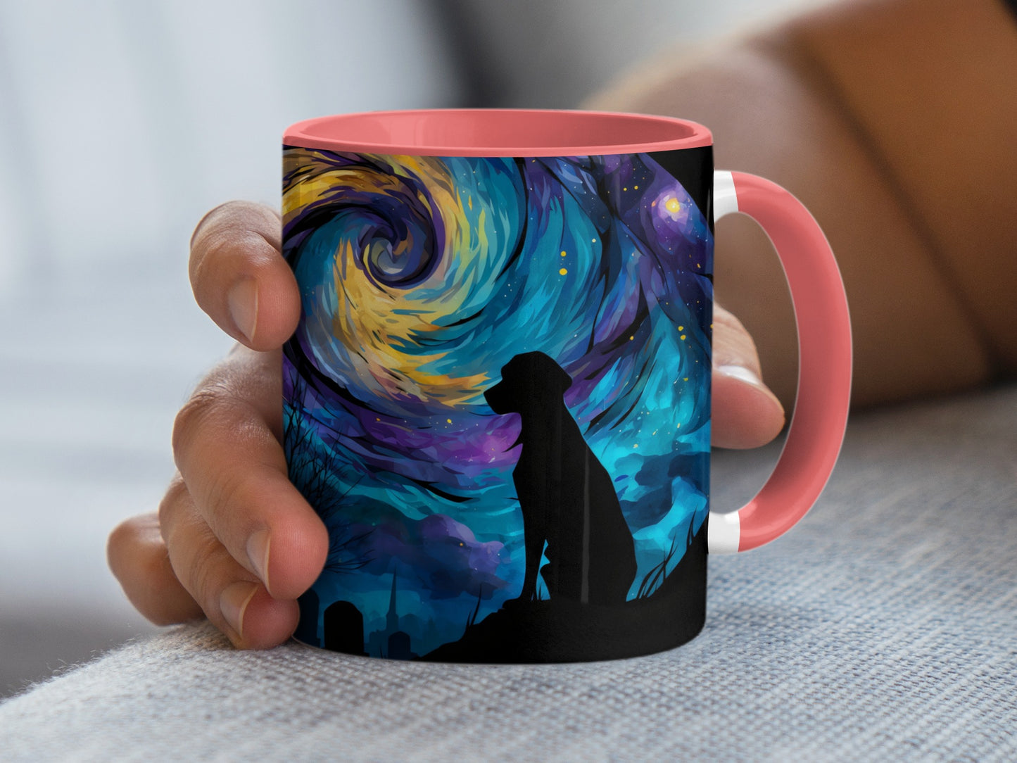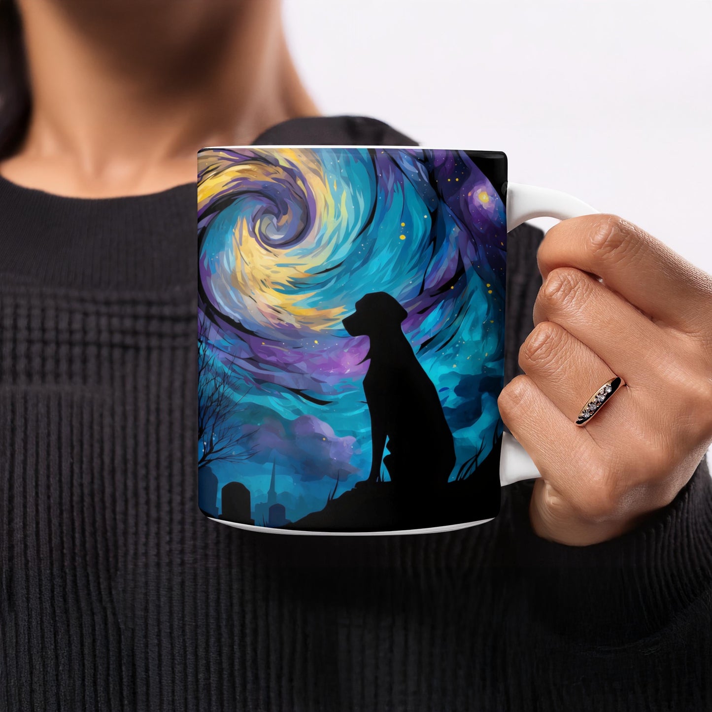 Dog Silhouette Under Starry Night Art Design Style Mug