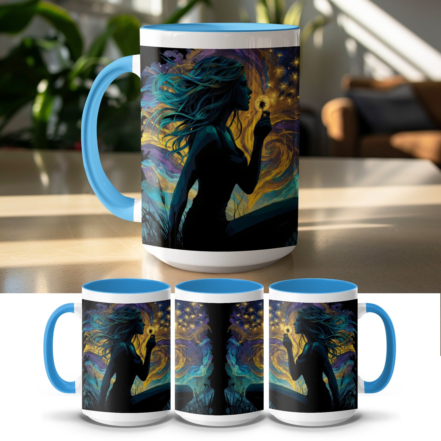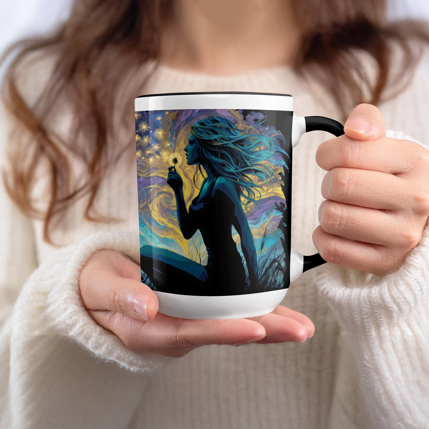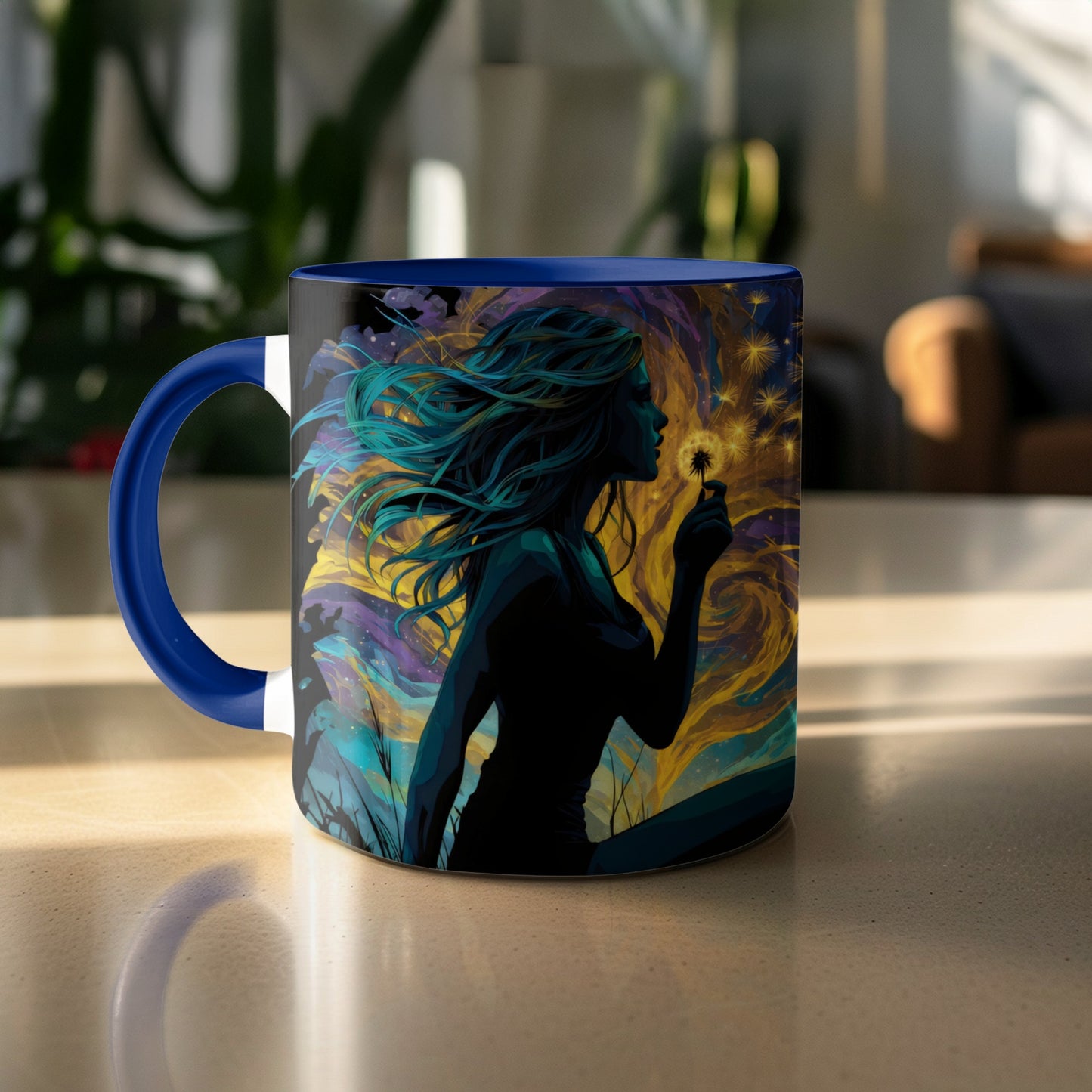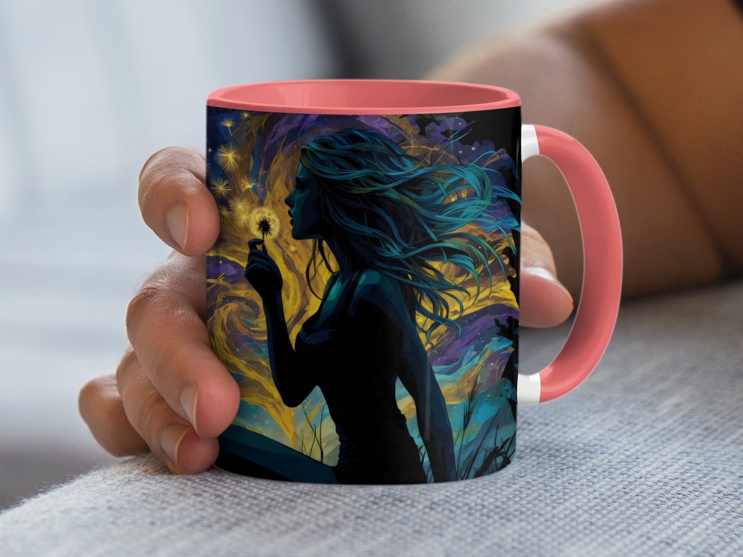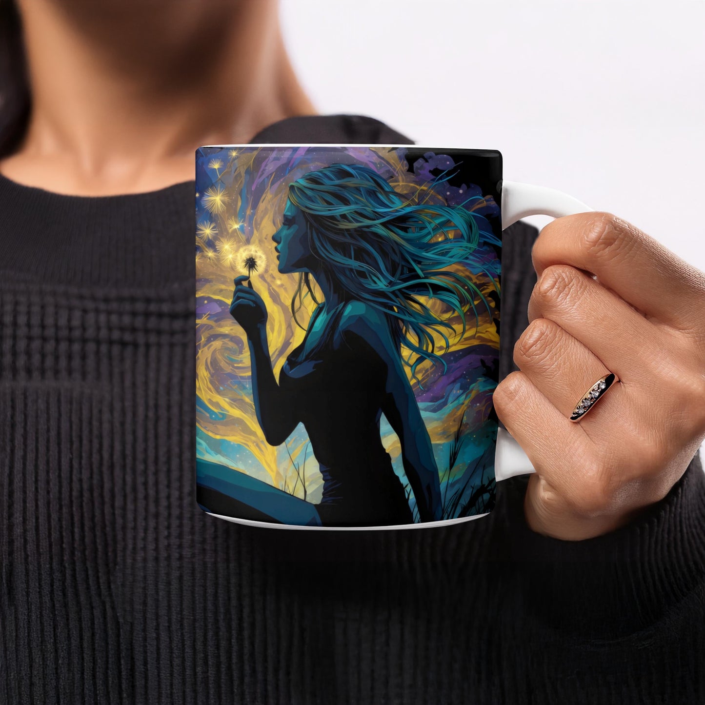 Dreamlike Woman with Dandelion Seeds Illustration Mug
