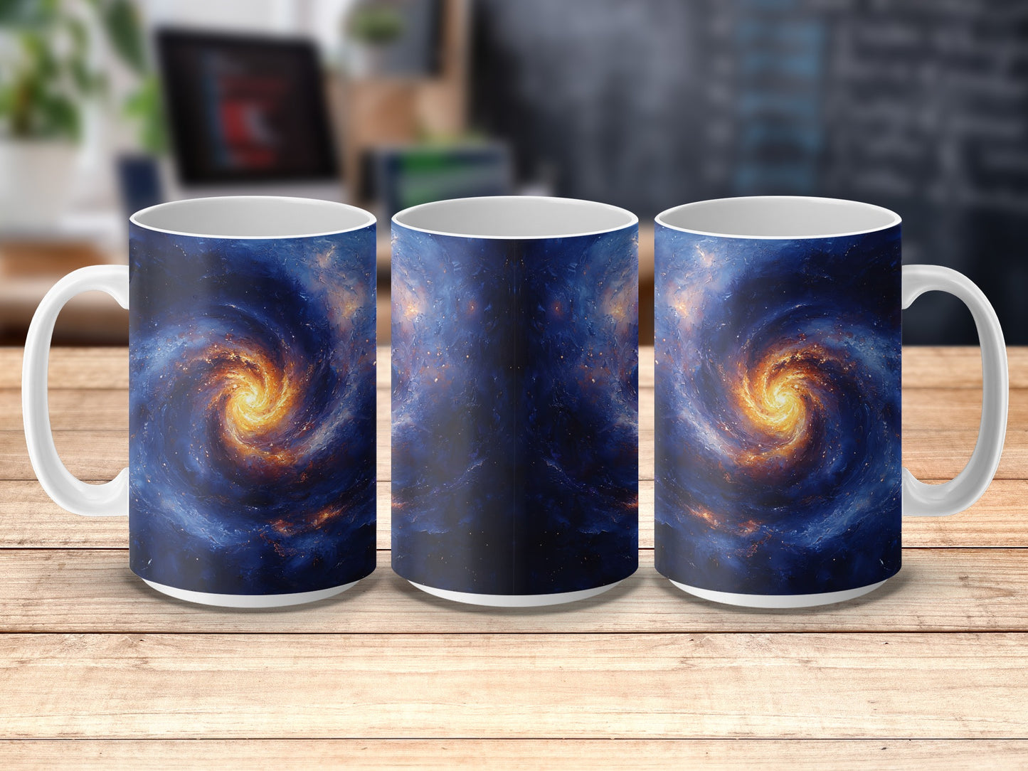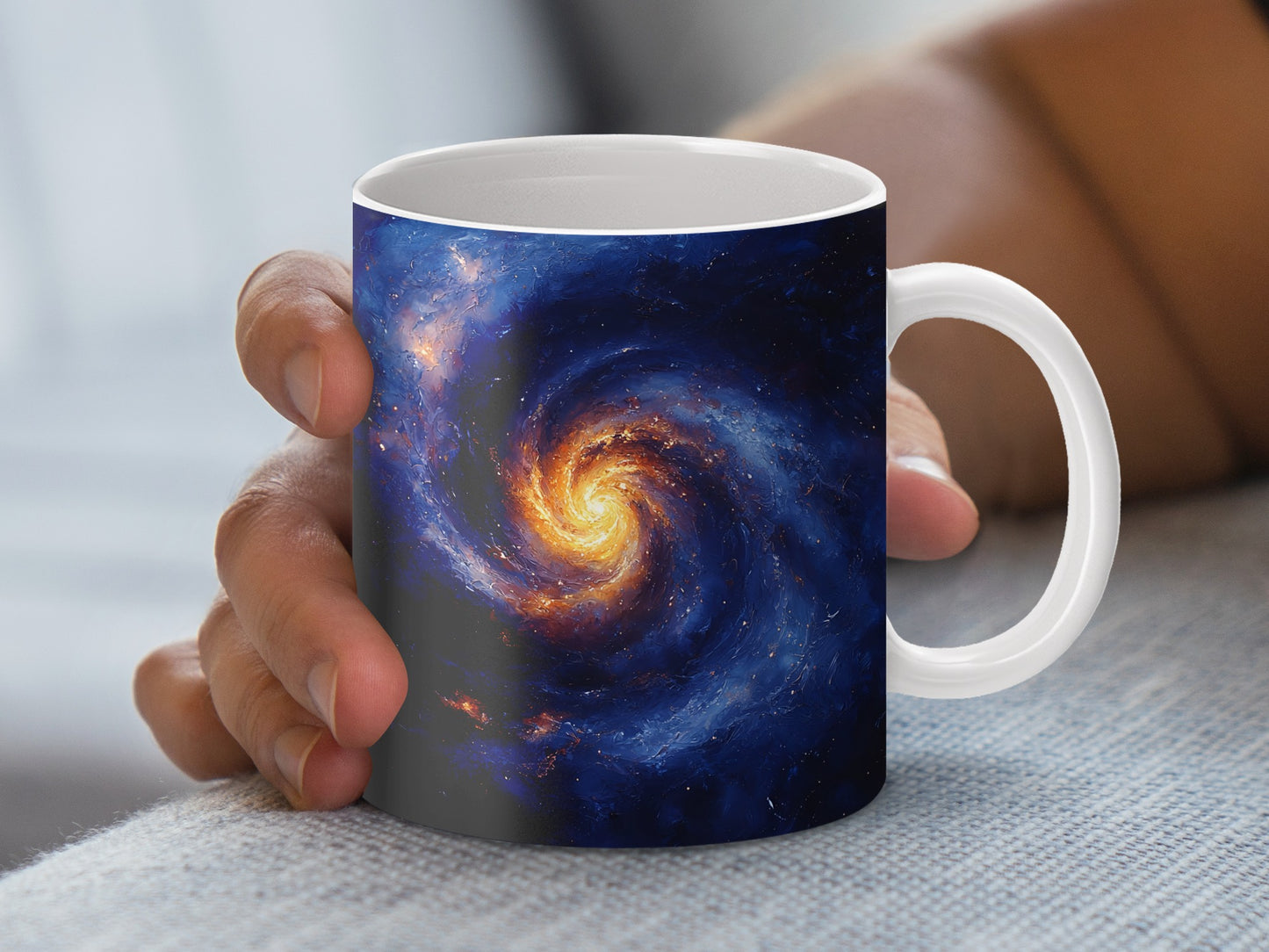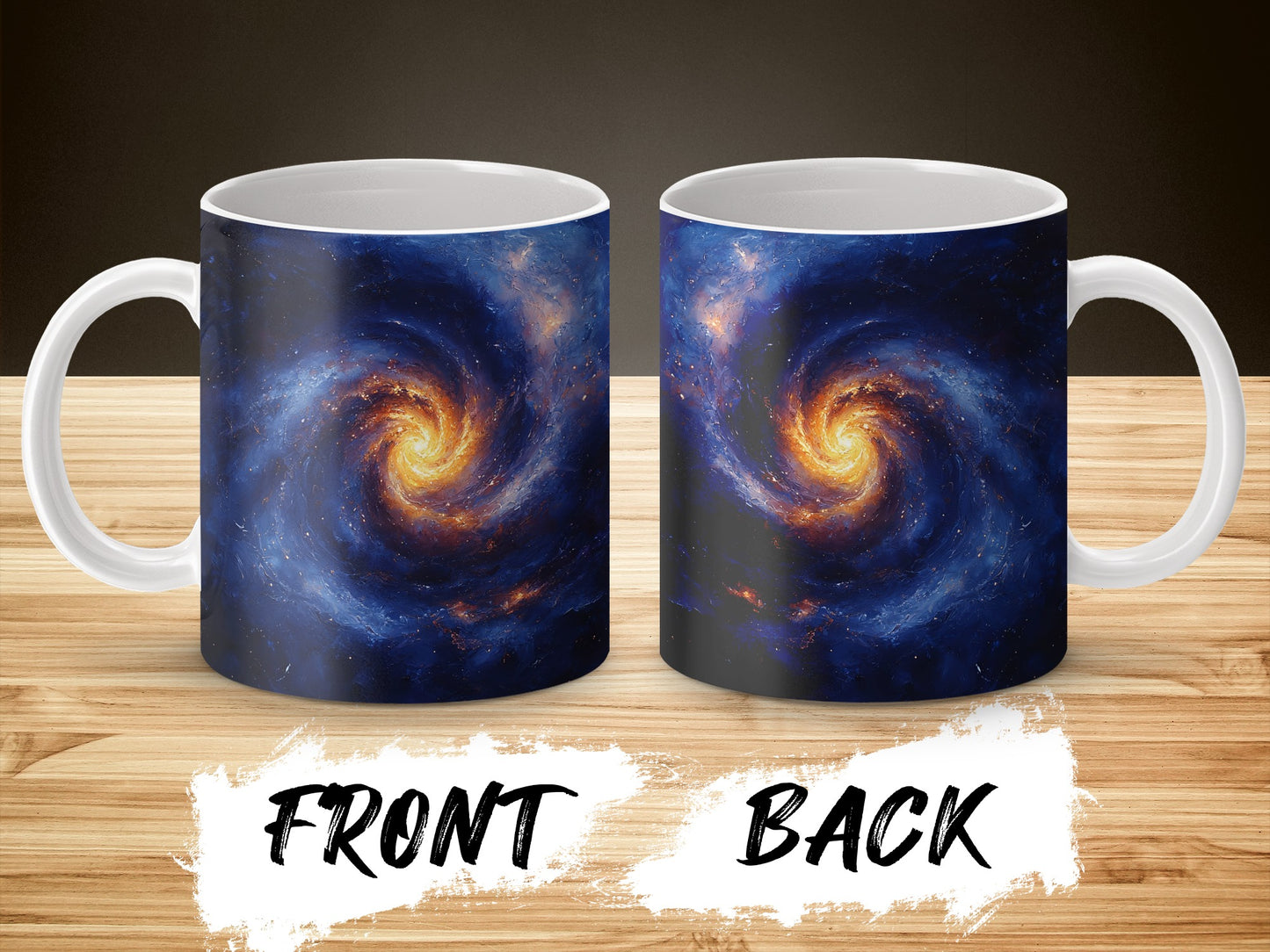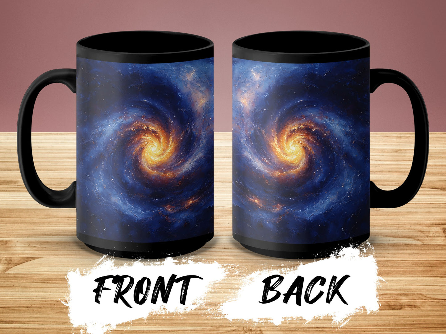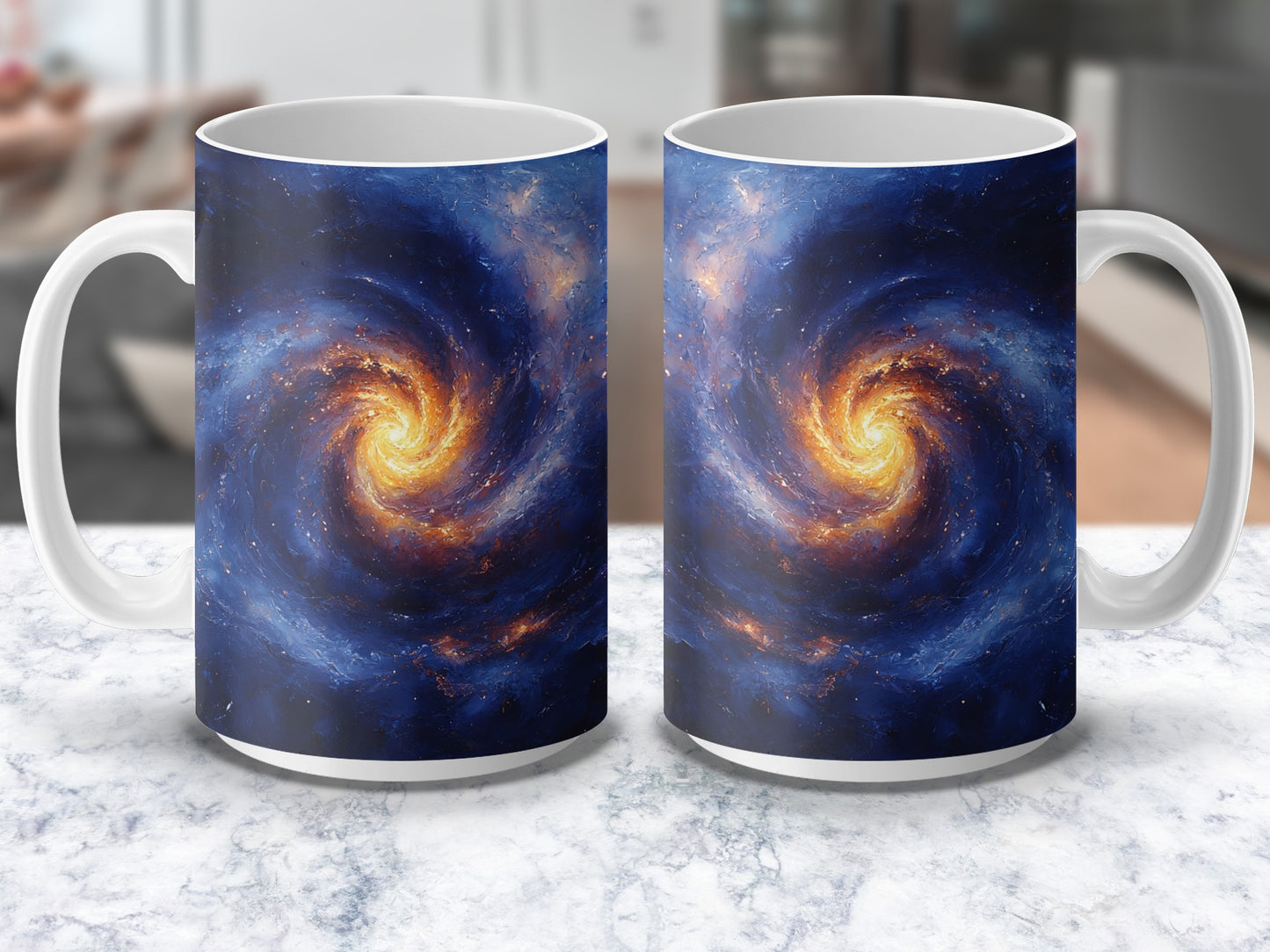 Transform your mug with a stunning design showcasing two mesmerizing galaxies swirling in a cosmic dance. A unique gift for space enthusiasts or art lovers alike.