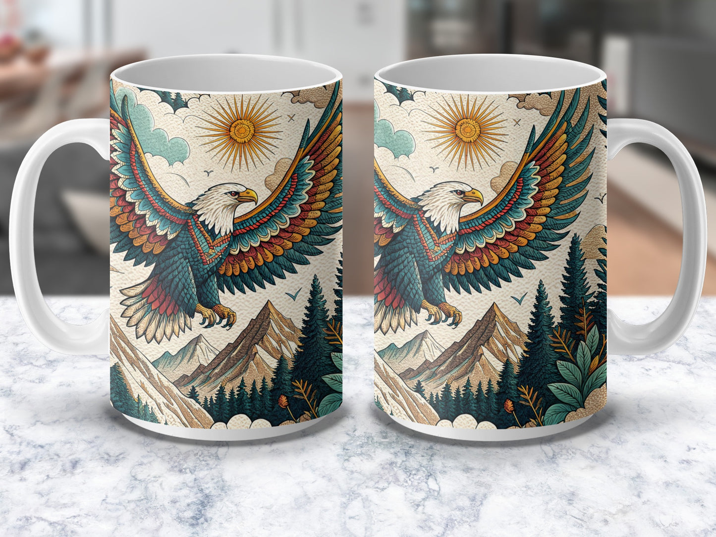 Eagle Pattern Otomi Embroidery Style Mug Design Digital