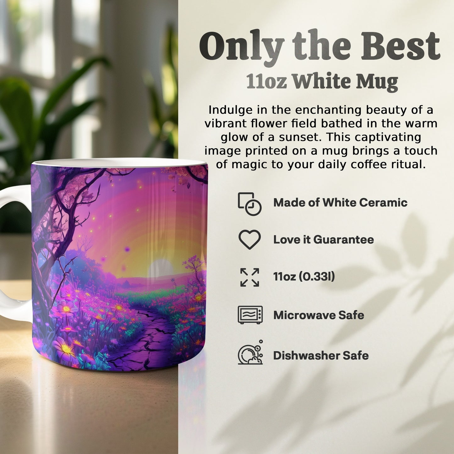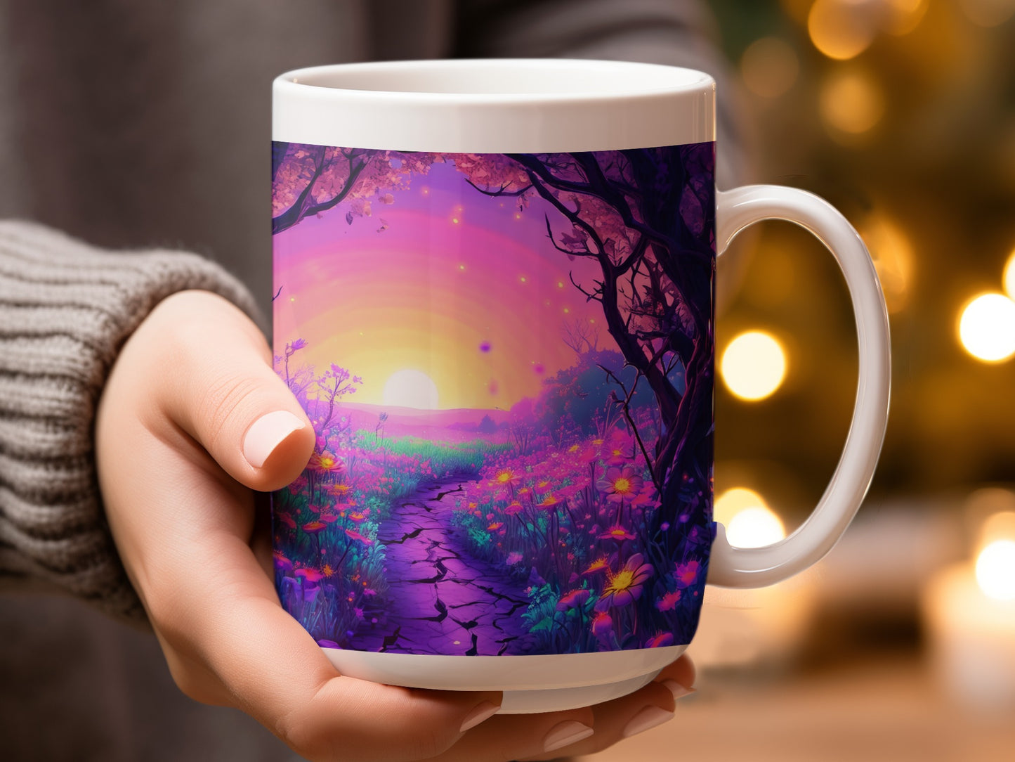 Enchanted Sunset Landscape With Trees and Flowers Digital