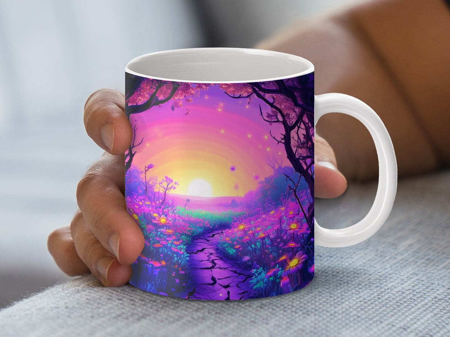 Embrace the serene beauty of a magical world with this enchanting digital art piece. Vivid colors and whimsical details transport you to a peaceful landscape ideal for any project.
