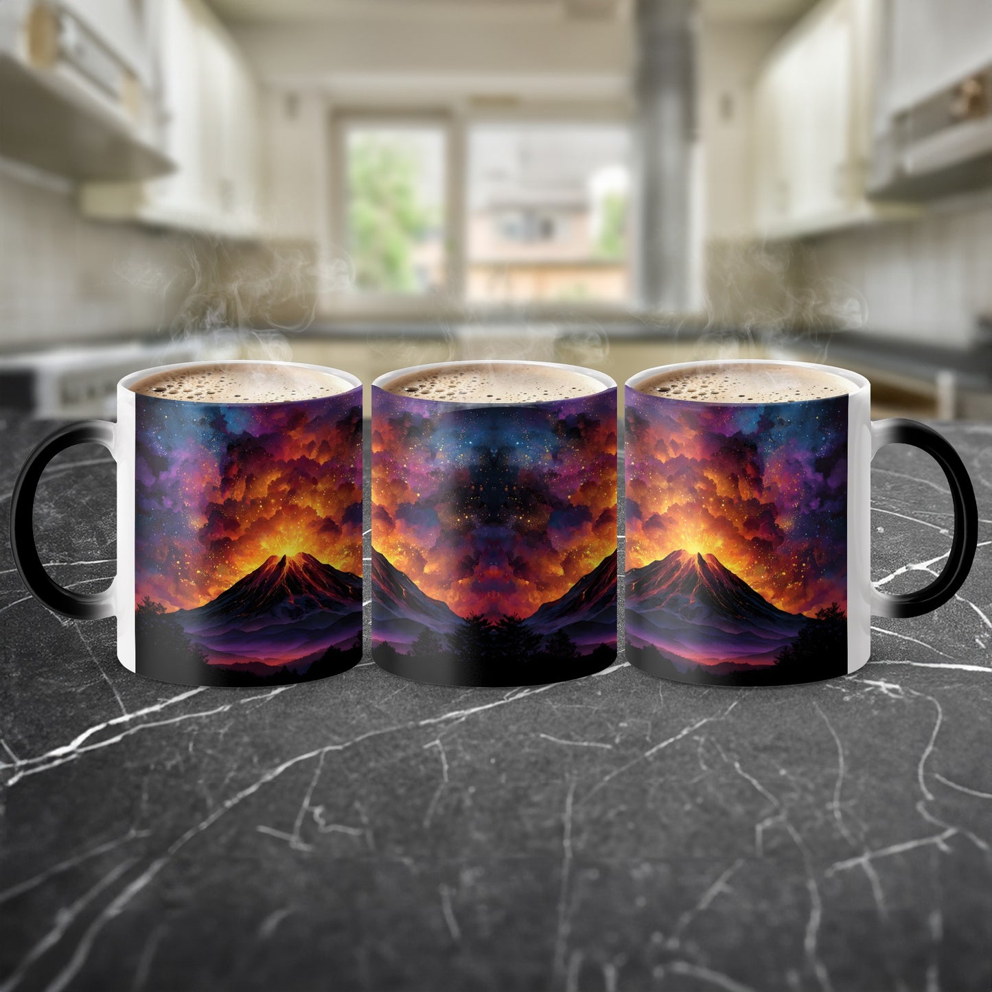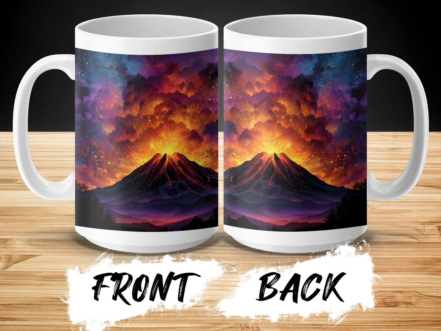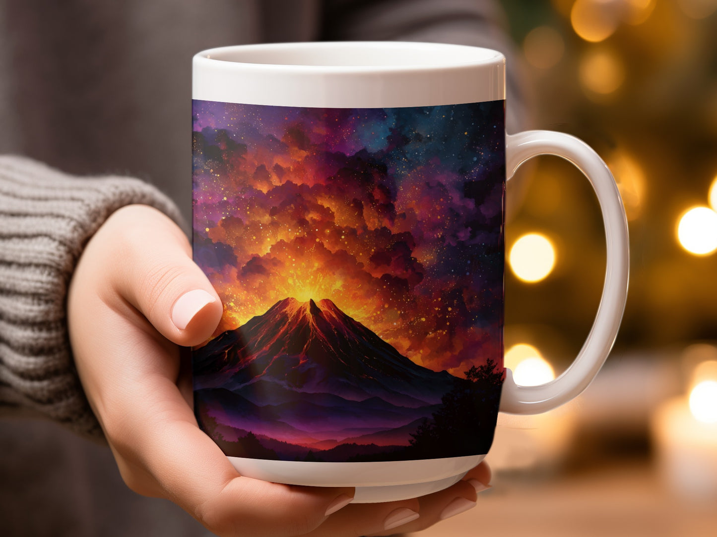 Erupting Volcanoes Under Galaxy Scape Novelty Coffee Mug