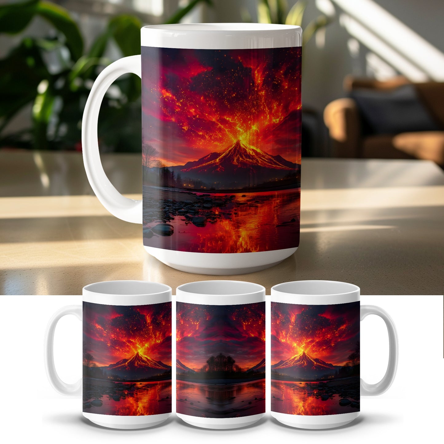 Explosive Volcano River Reflection Artistic Magic Mug