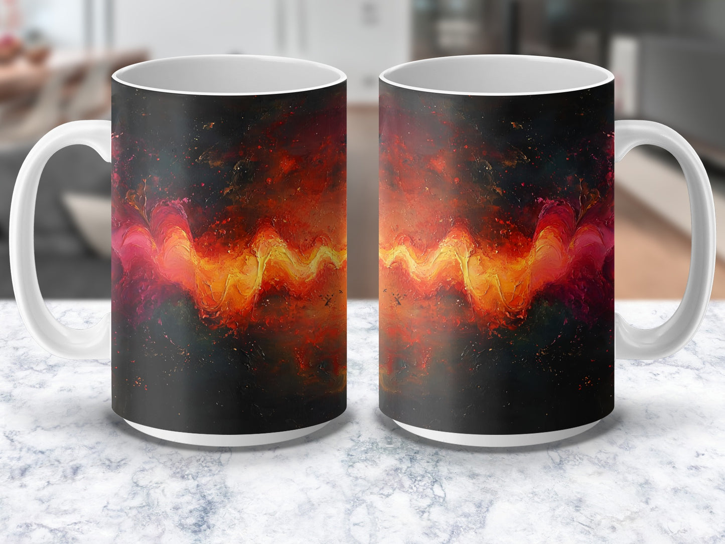 Fiery Cosmic Wave Abstract Art for Personalized Mugs 11oz & 15oz Digital Mug Wraps