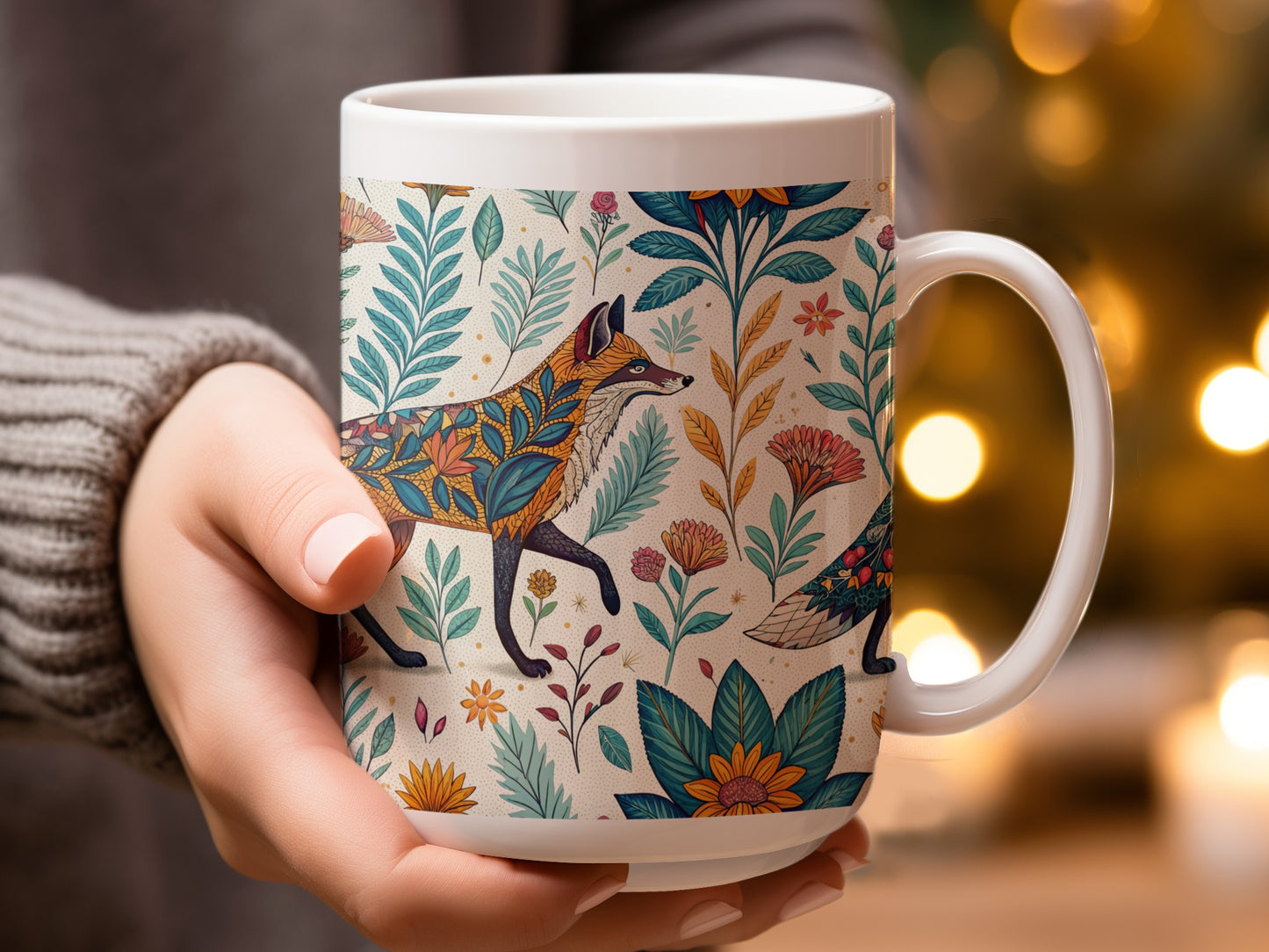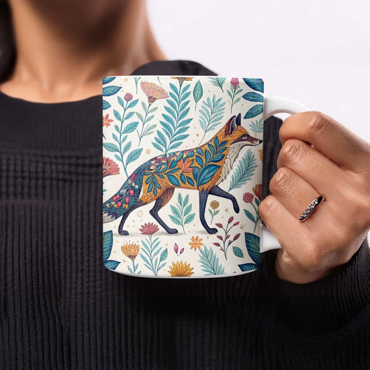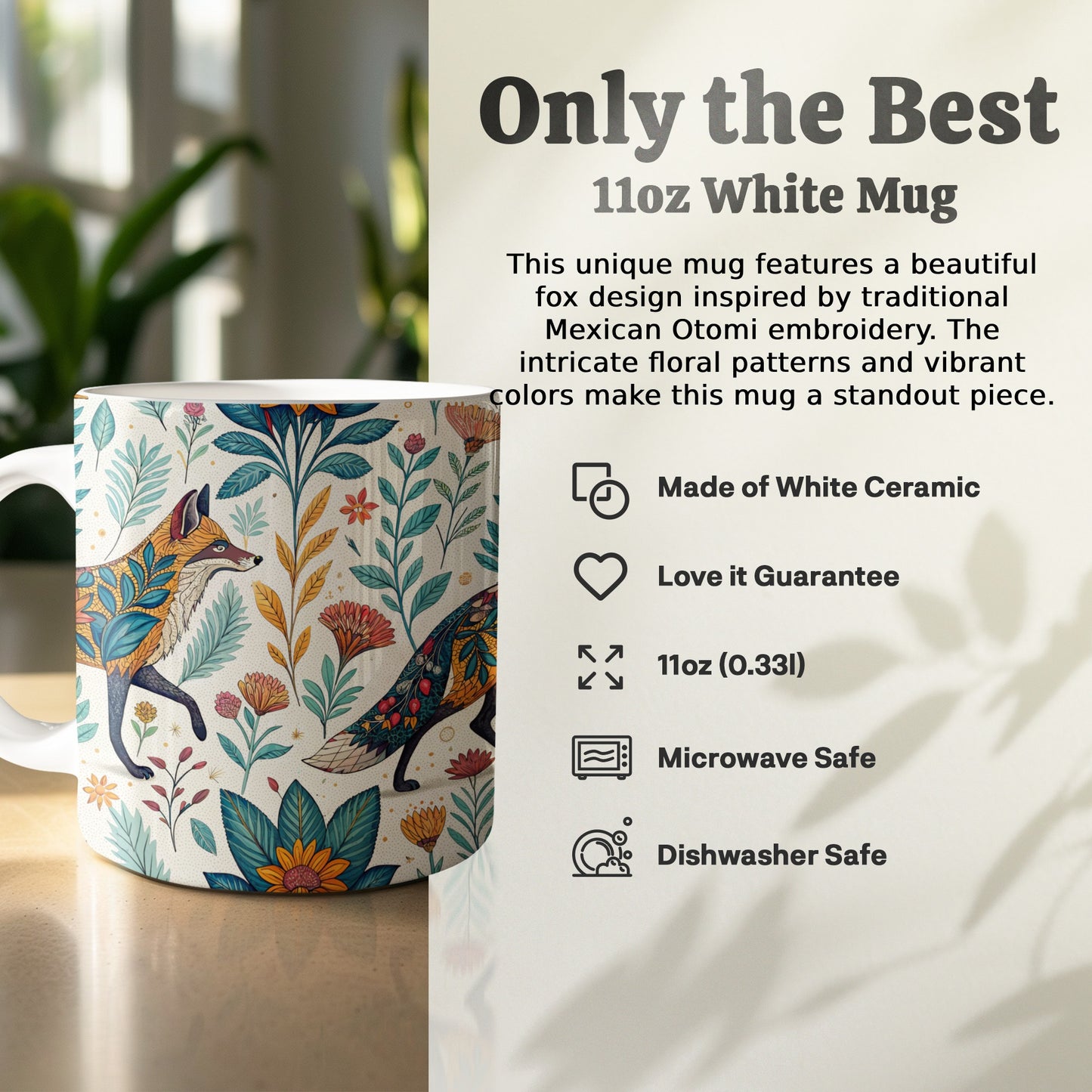 Floral Fox Design Mexican Otomi Style Unique Mug