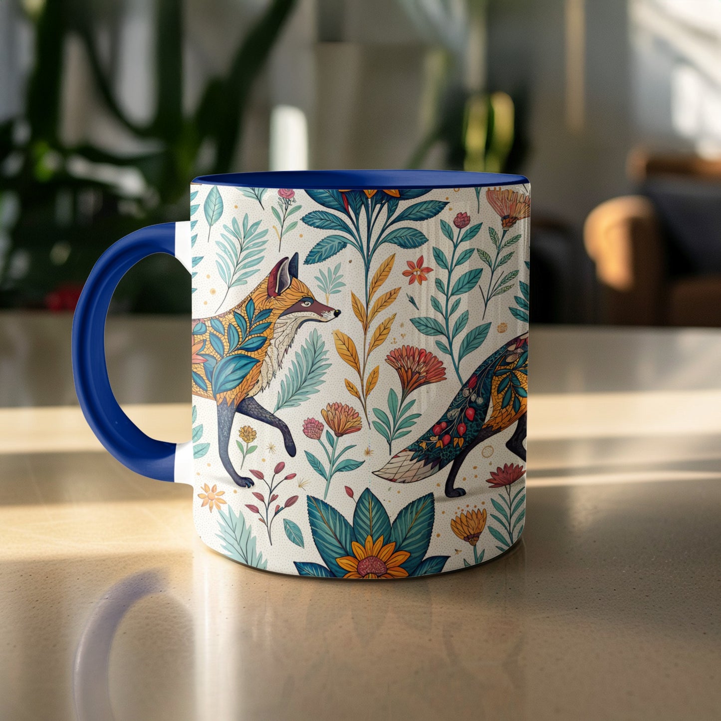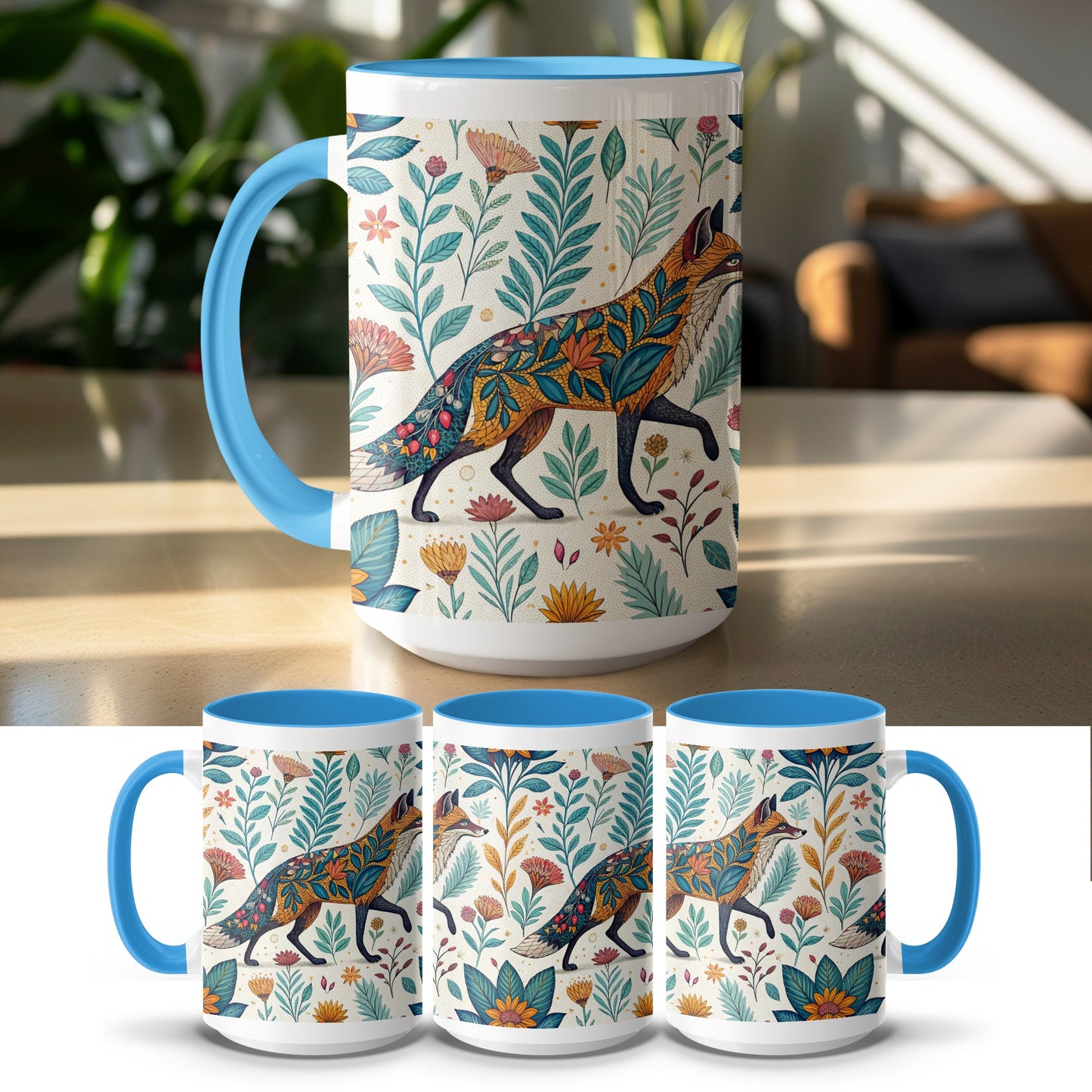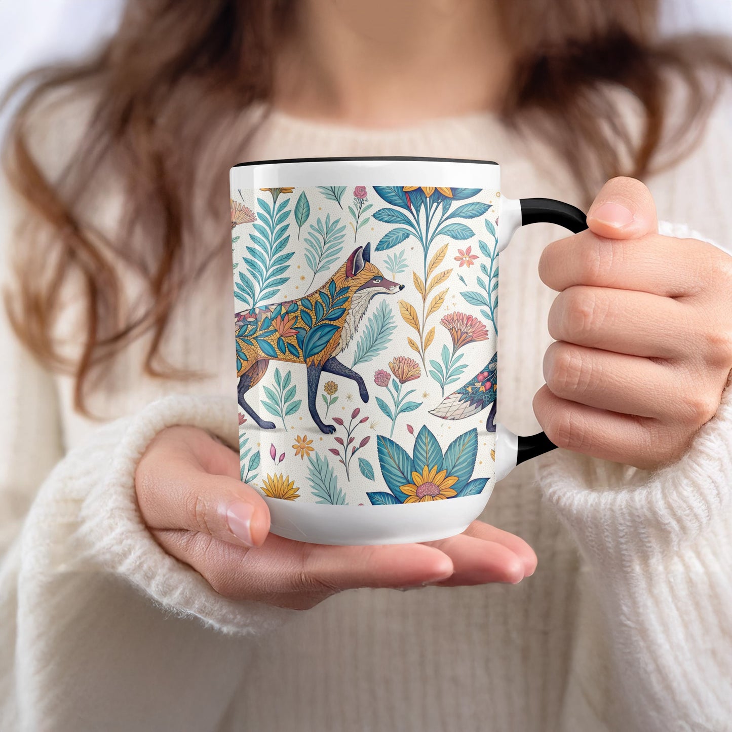 Floral Fox Design Mexican Otomi Style Unique Mug