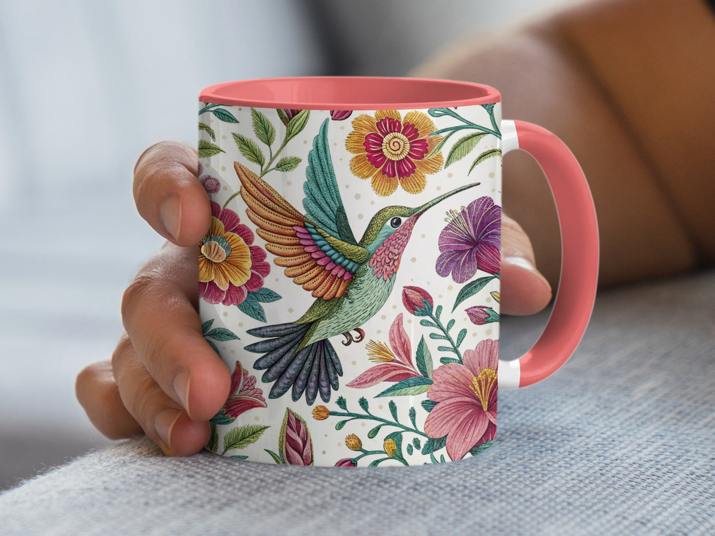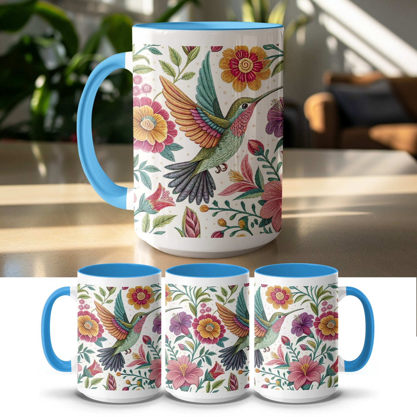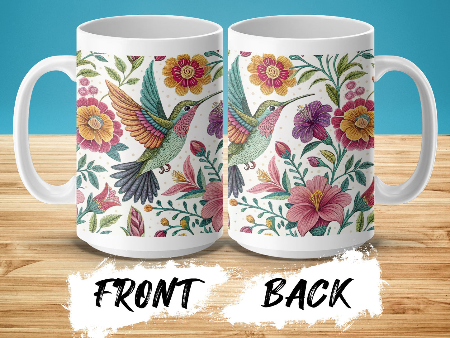 Floral Hummingbird Mexican Otomi Embroidery Style Mug