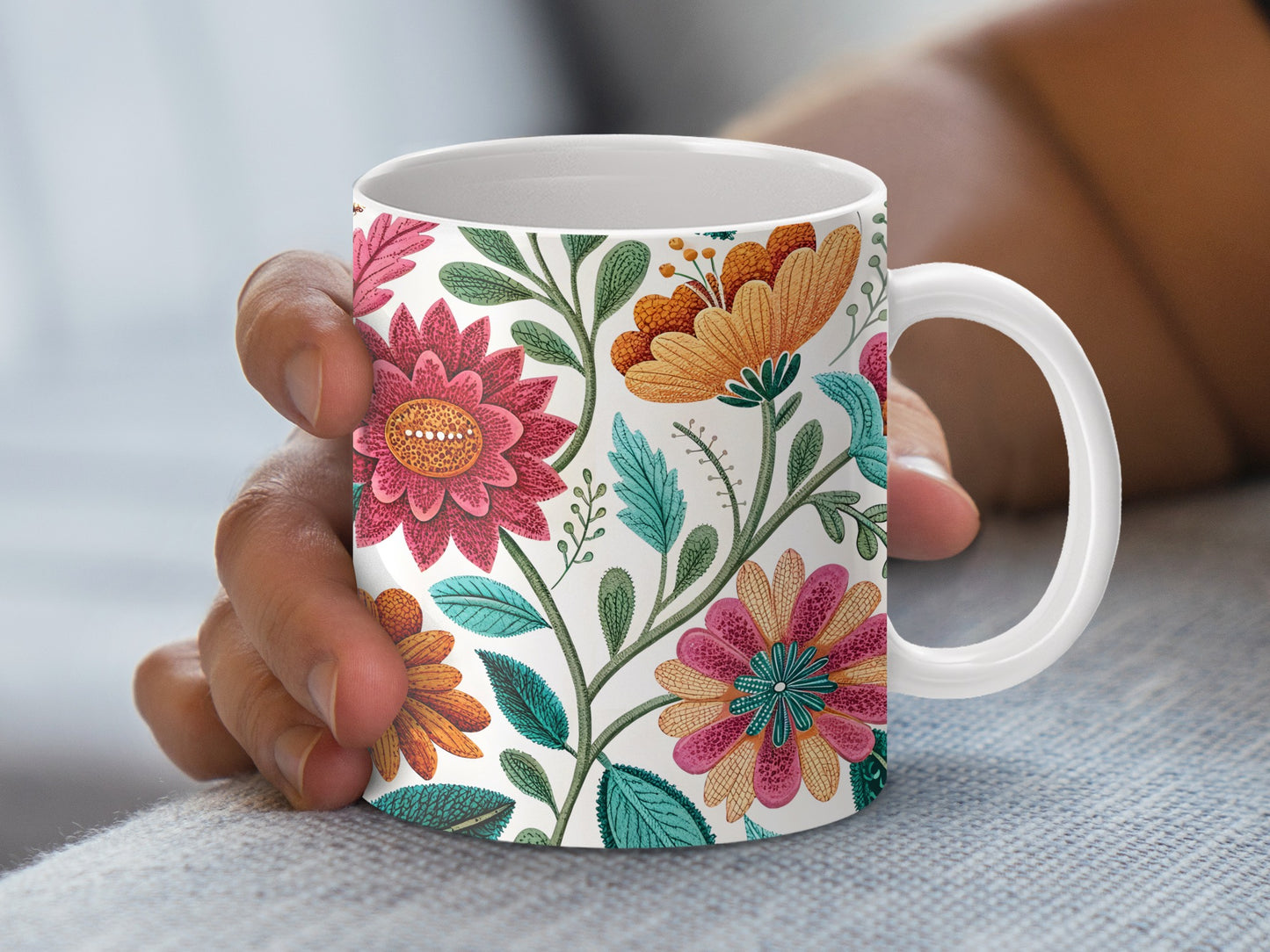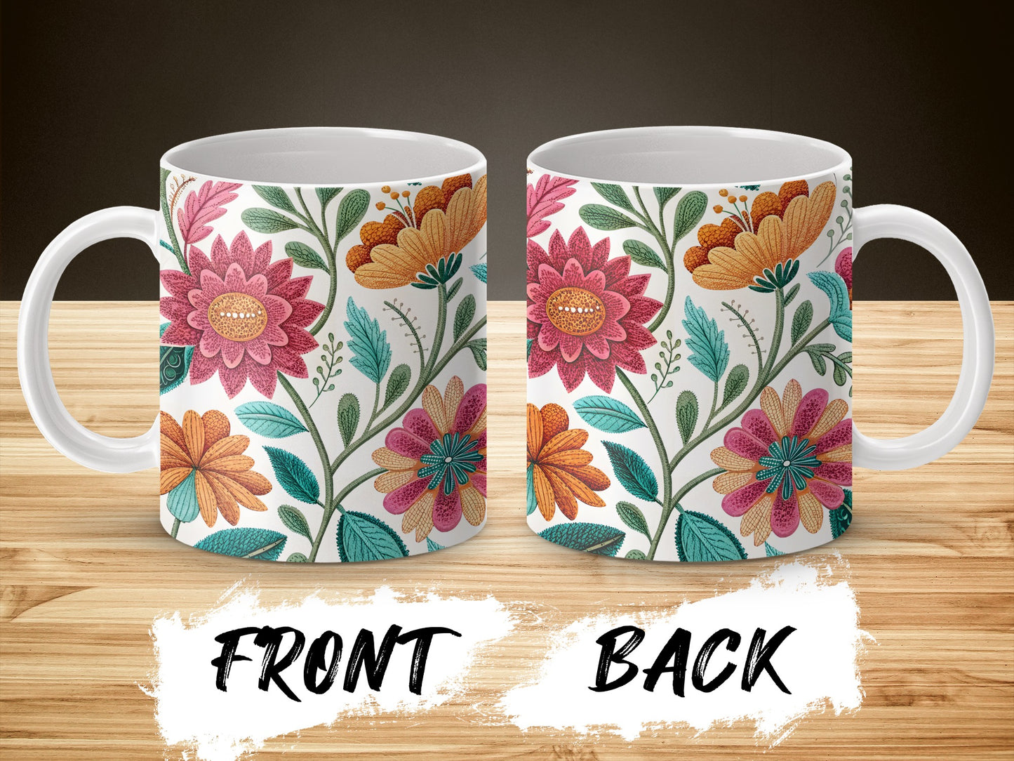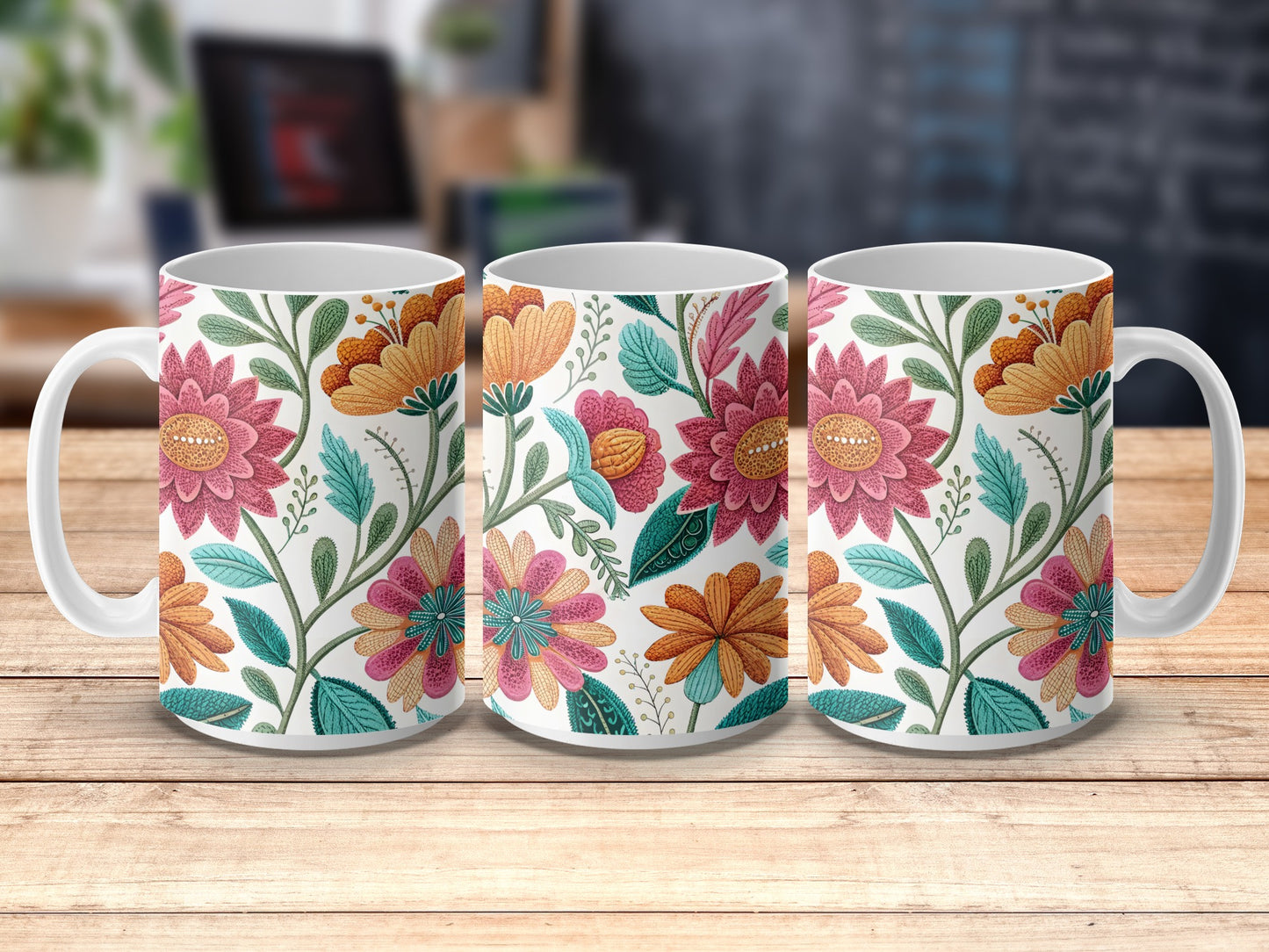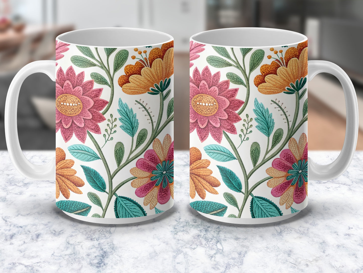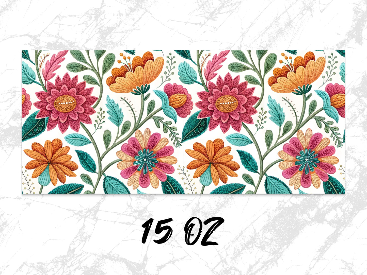 Floral Seamless Design with Otomi Embroidery Style Digital