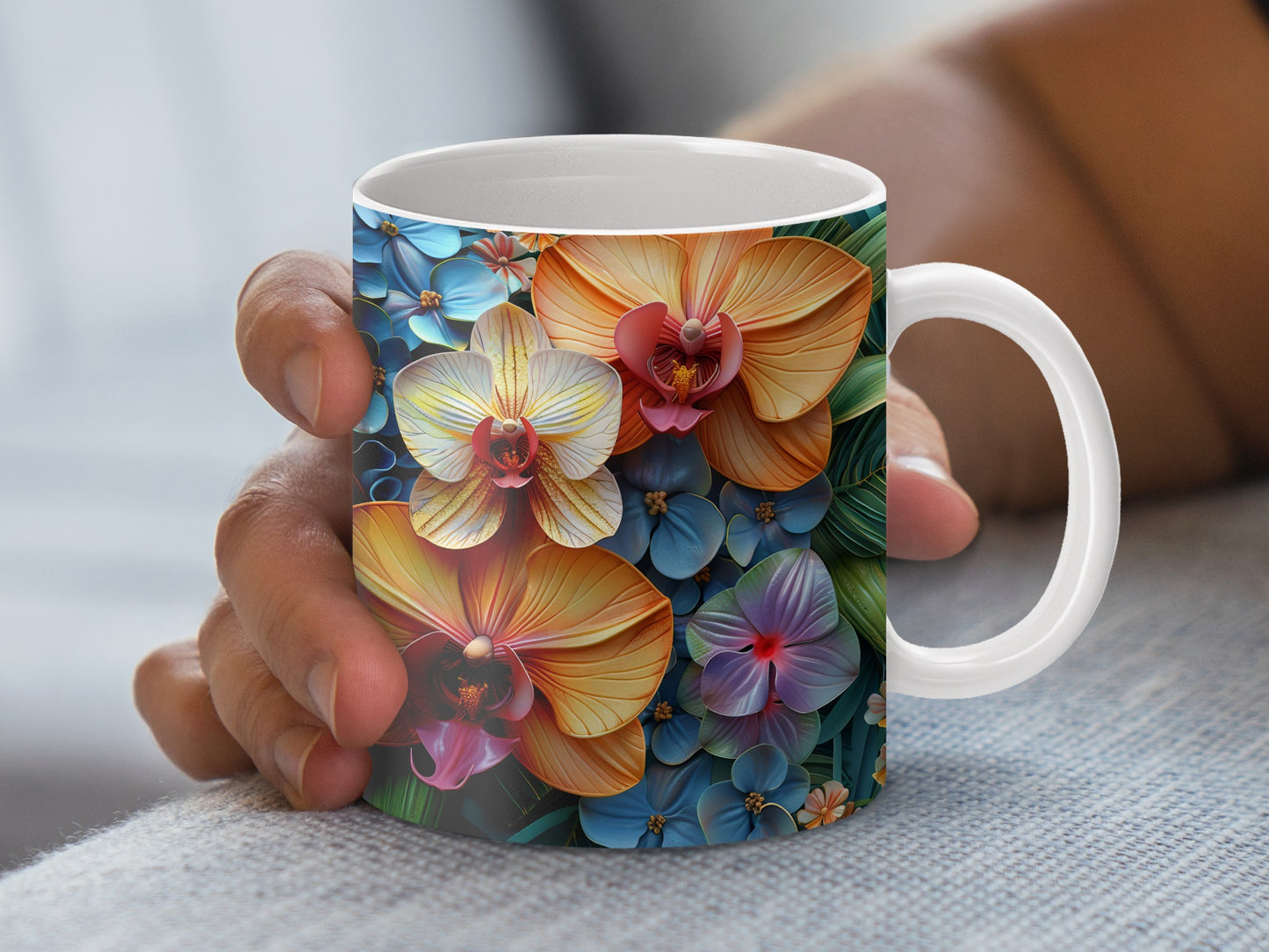 Transform your mug into a vibrant work of art with this stunning floral symmetry design. Perfect for adding a touch of elegance and color to your everyday routine.