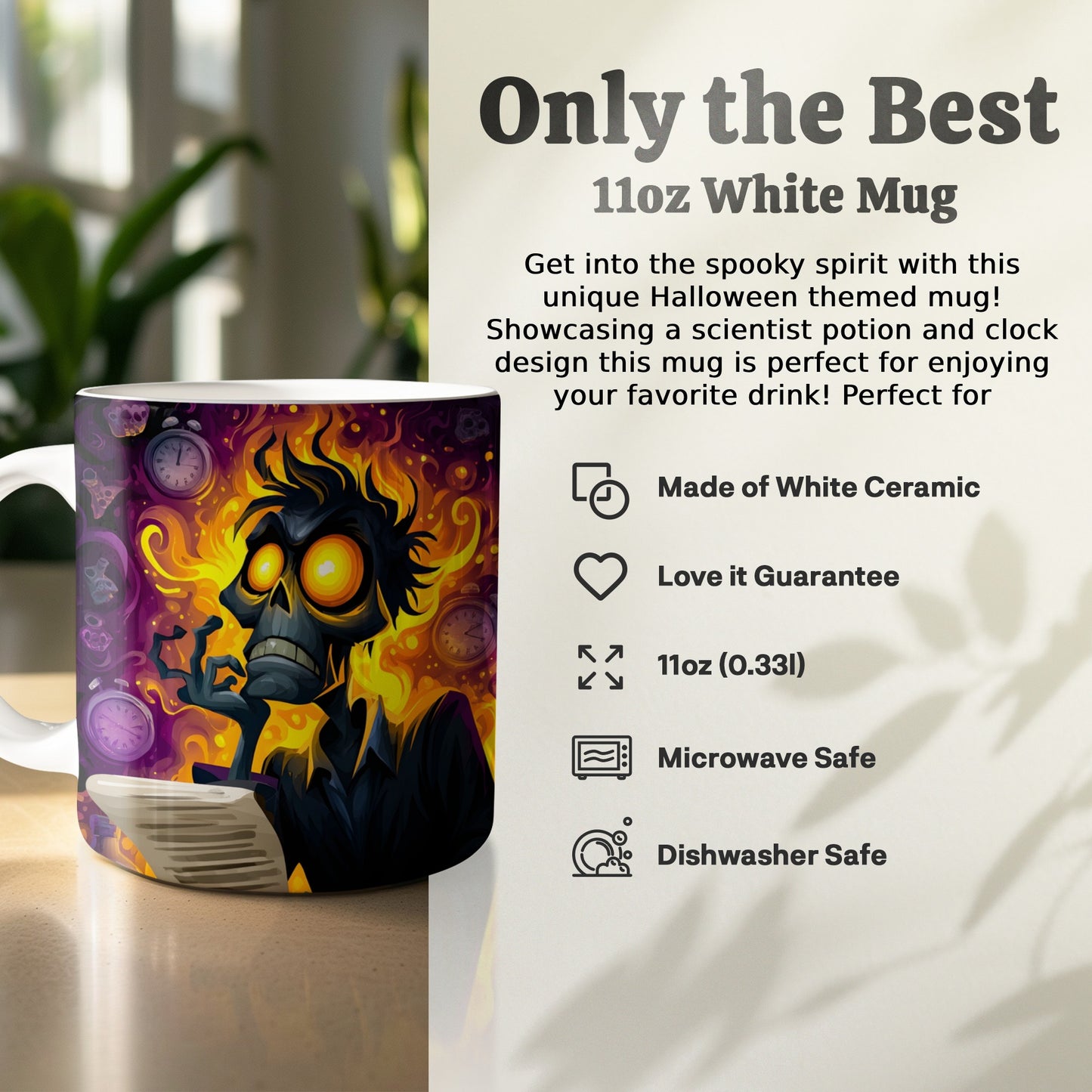 Spooky Scientist Potion Clock Design Halloween Style Mug