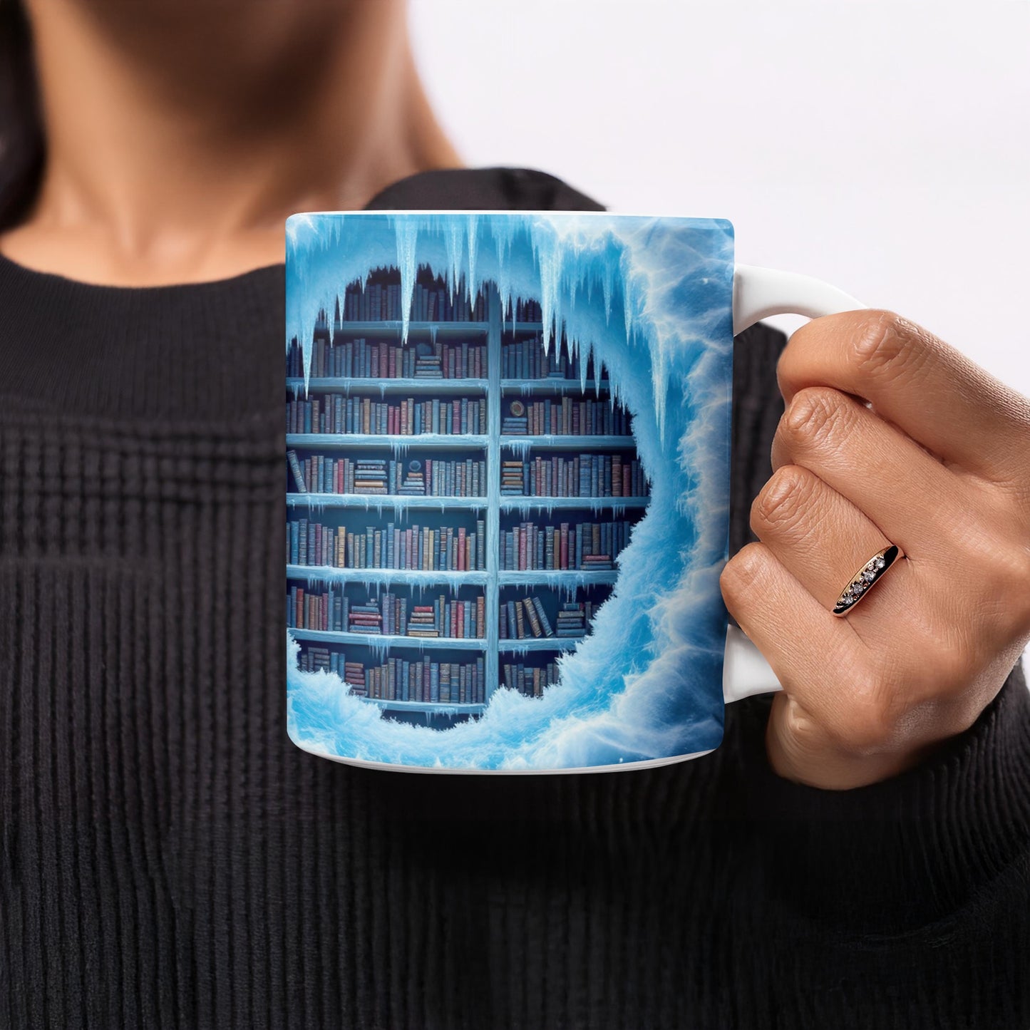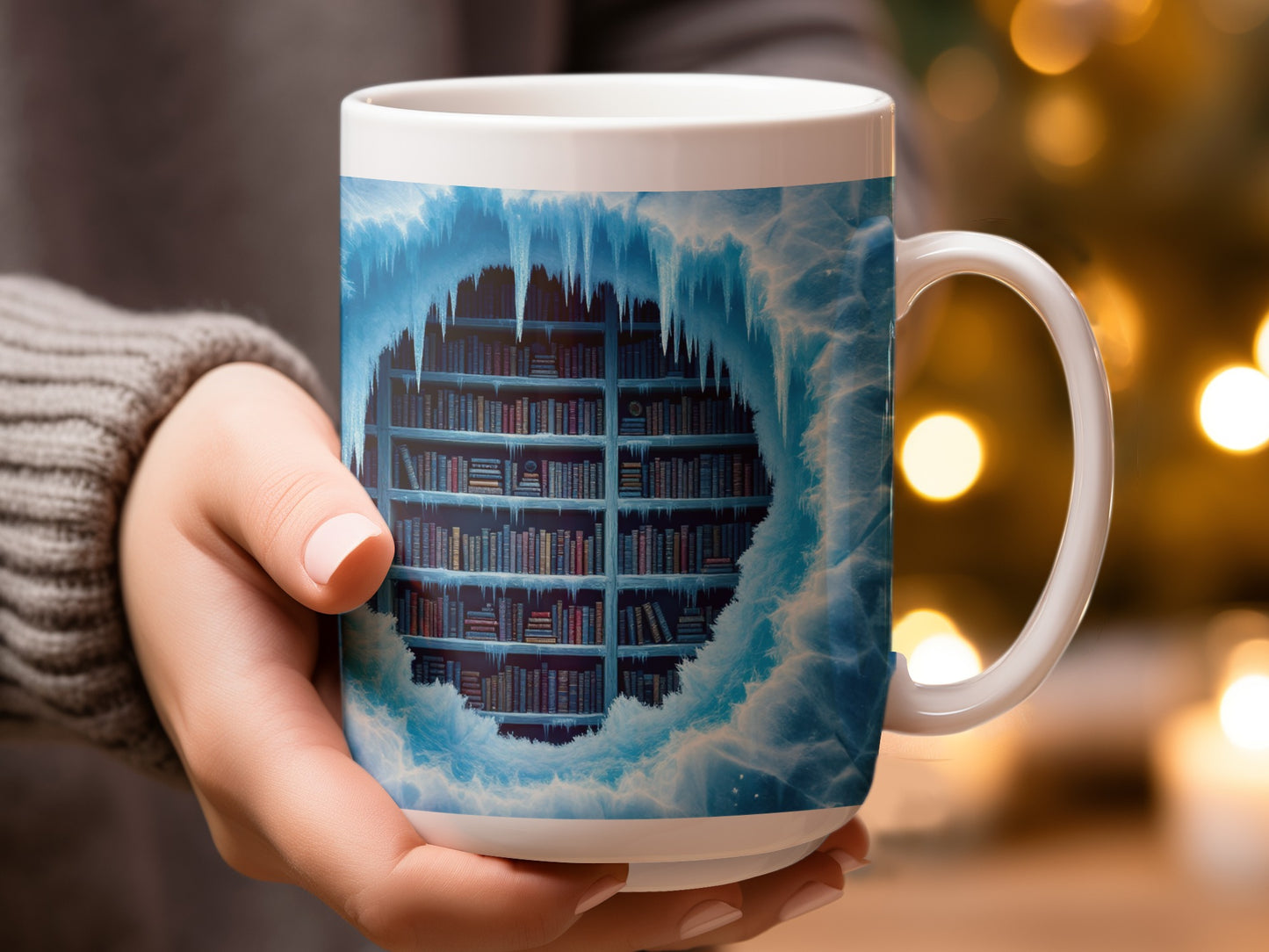 Icy Bookshelf Frozen In Time A Unique Reading Mug