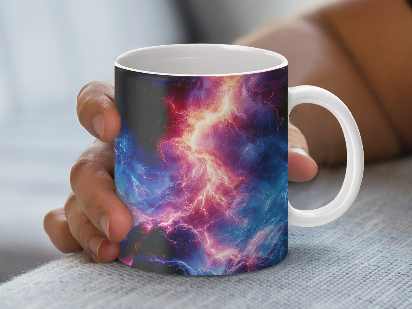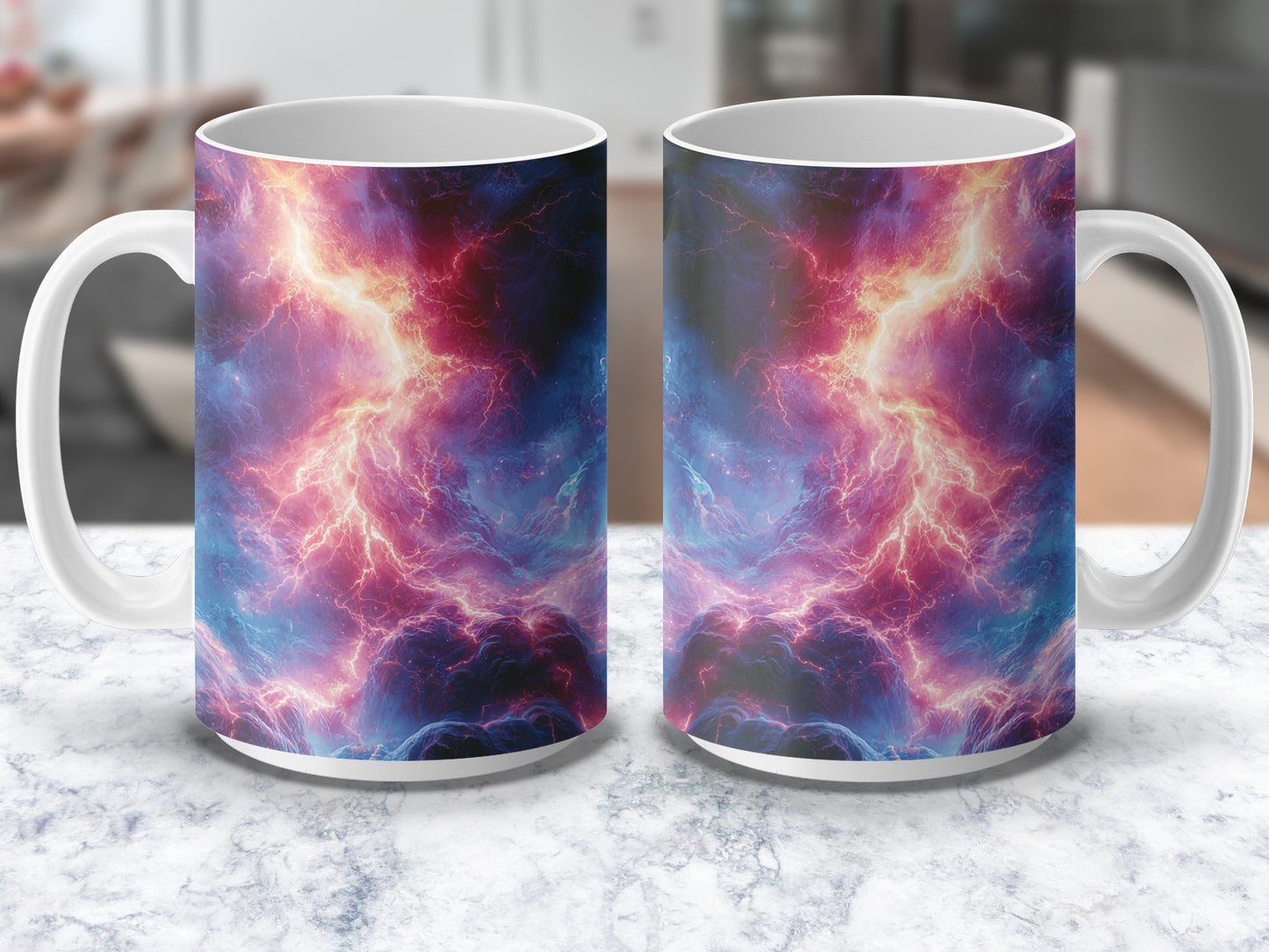 Elevate your mug game with this vibrant digital wrap! Featuring a mesmerizing galaxy and lightning design this is the perfect way to customize your drinkware.