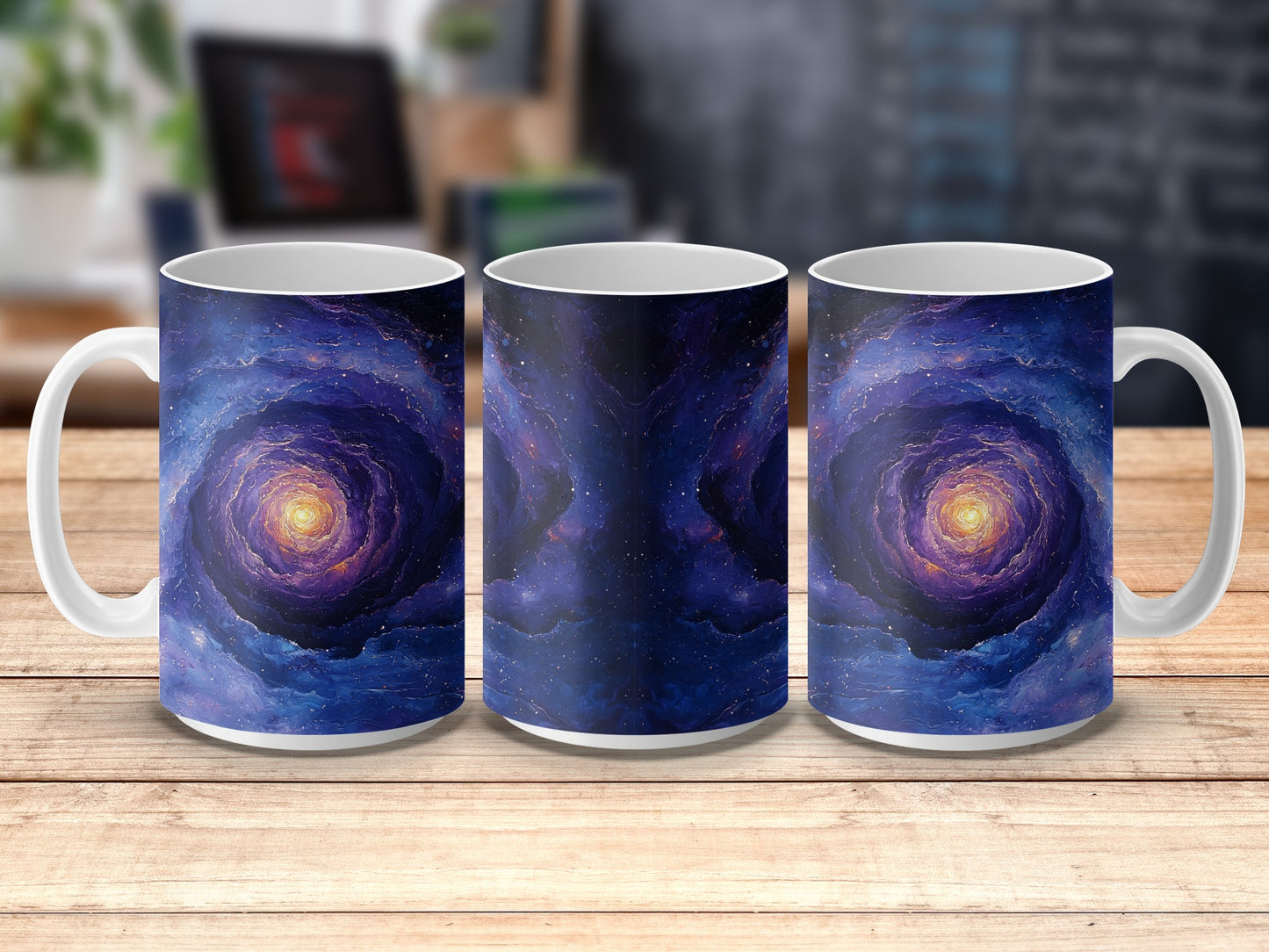 Elevate your mug with cosmic charm using this captivating galaxy spirals design! Transform your ordinary drinkware into a work of art with this eye-catching pattern.