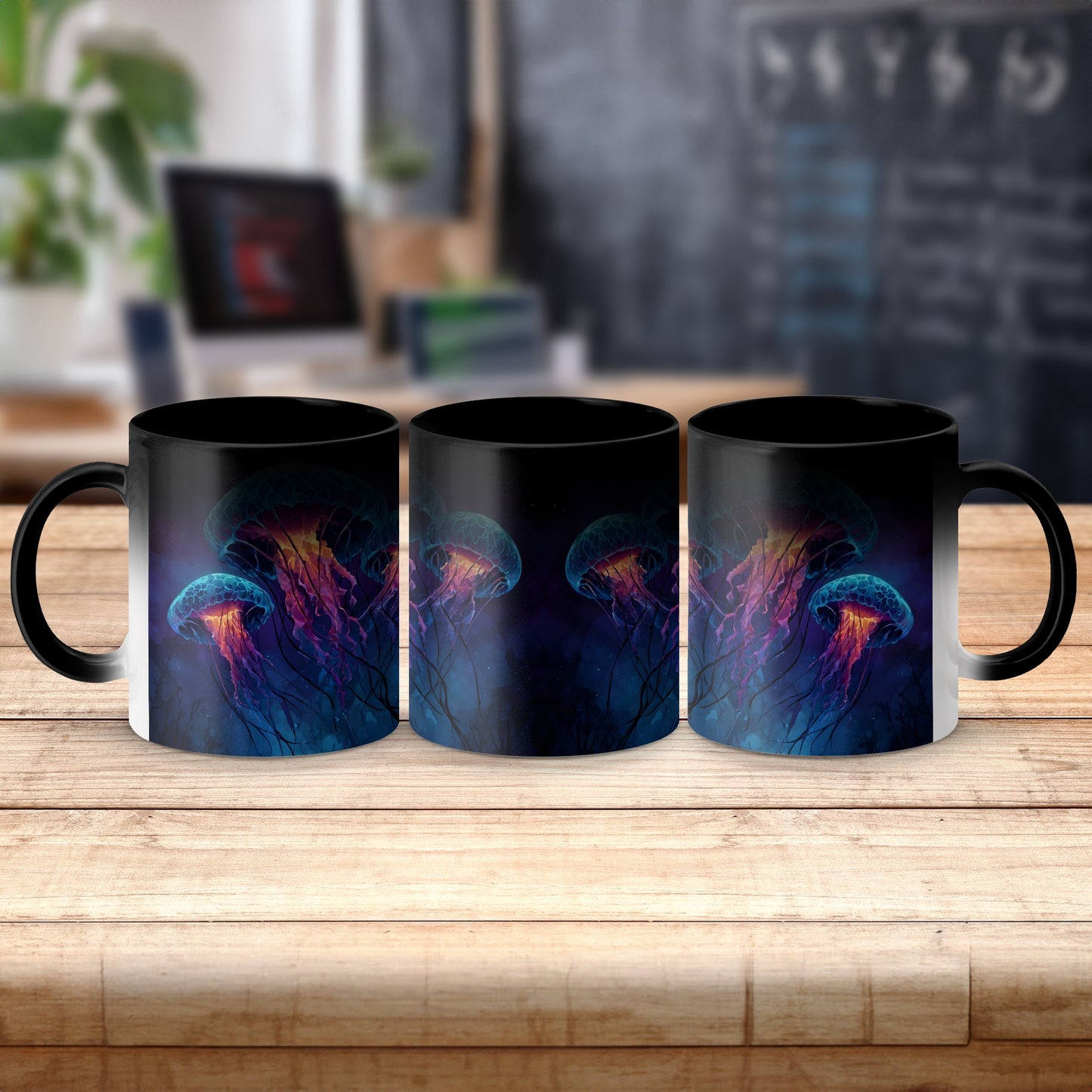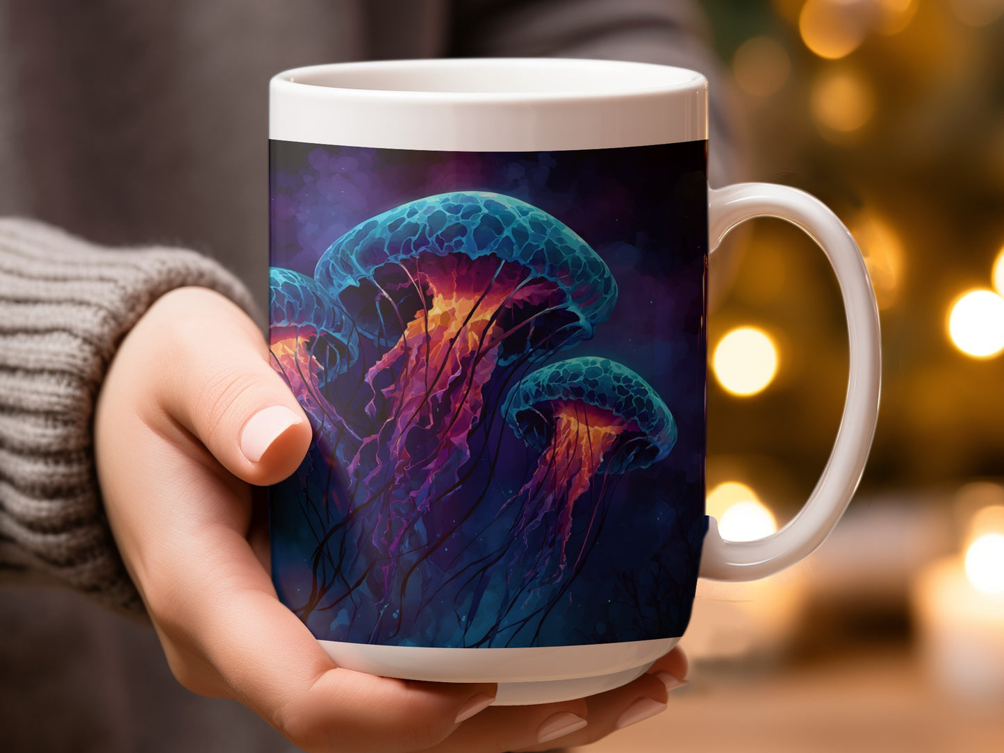 Glowing Jellyfish in Deep Sea Colorful Art Mug