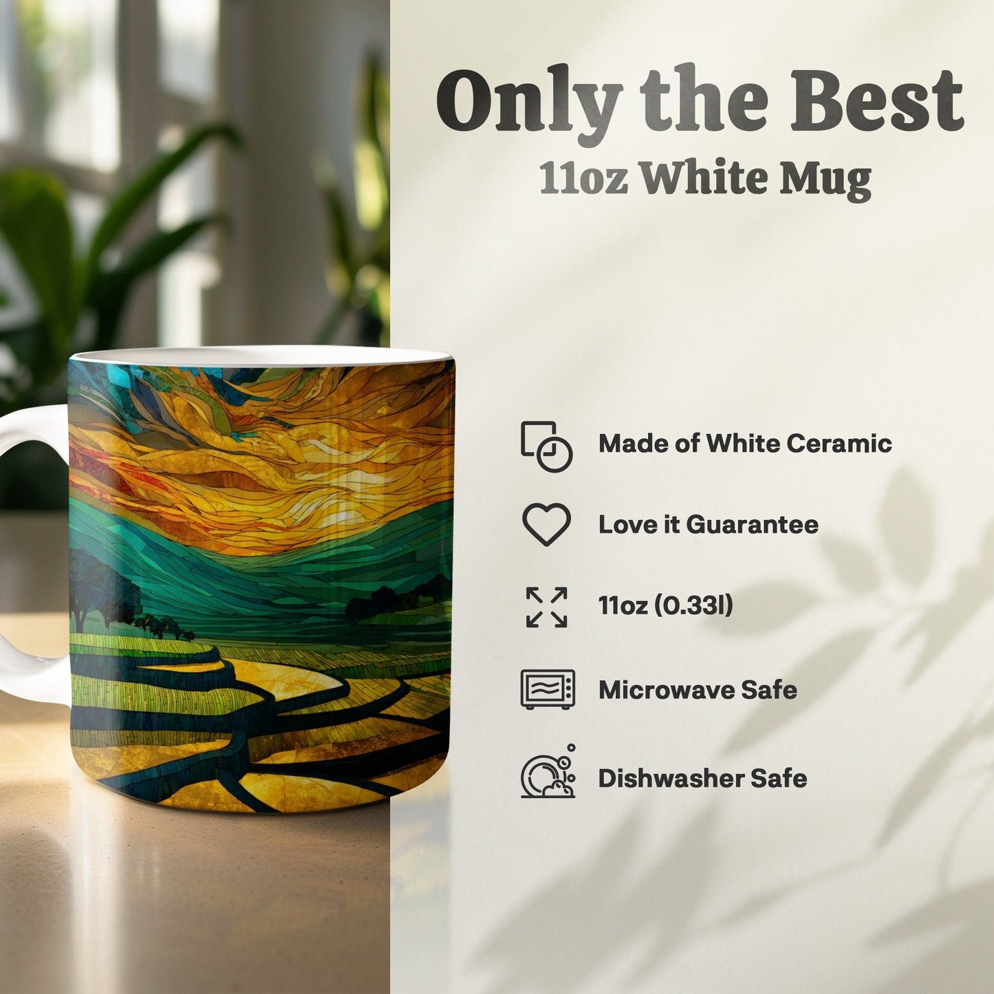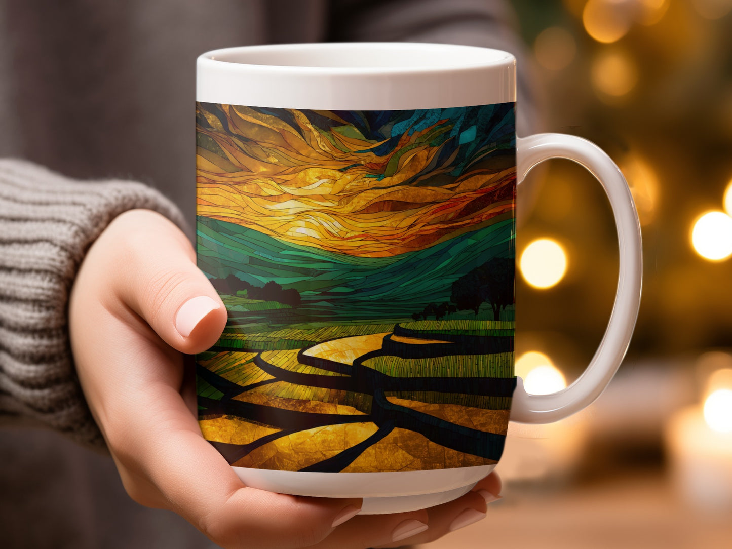Discover stunning stained glass art of golden rice fields a captivating blend of nature beauty. This landscape artwork brings serene fields to your collection.