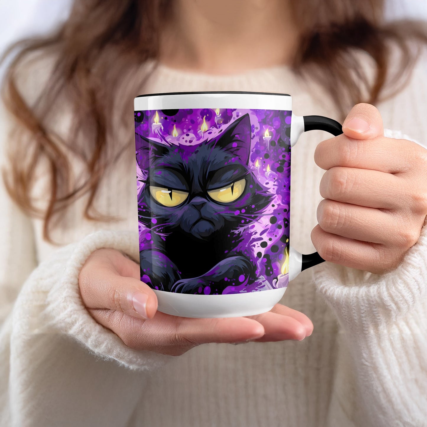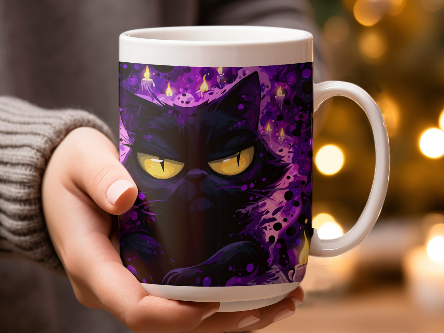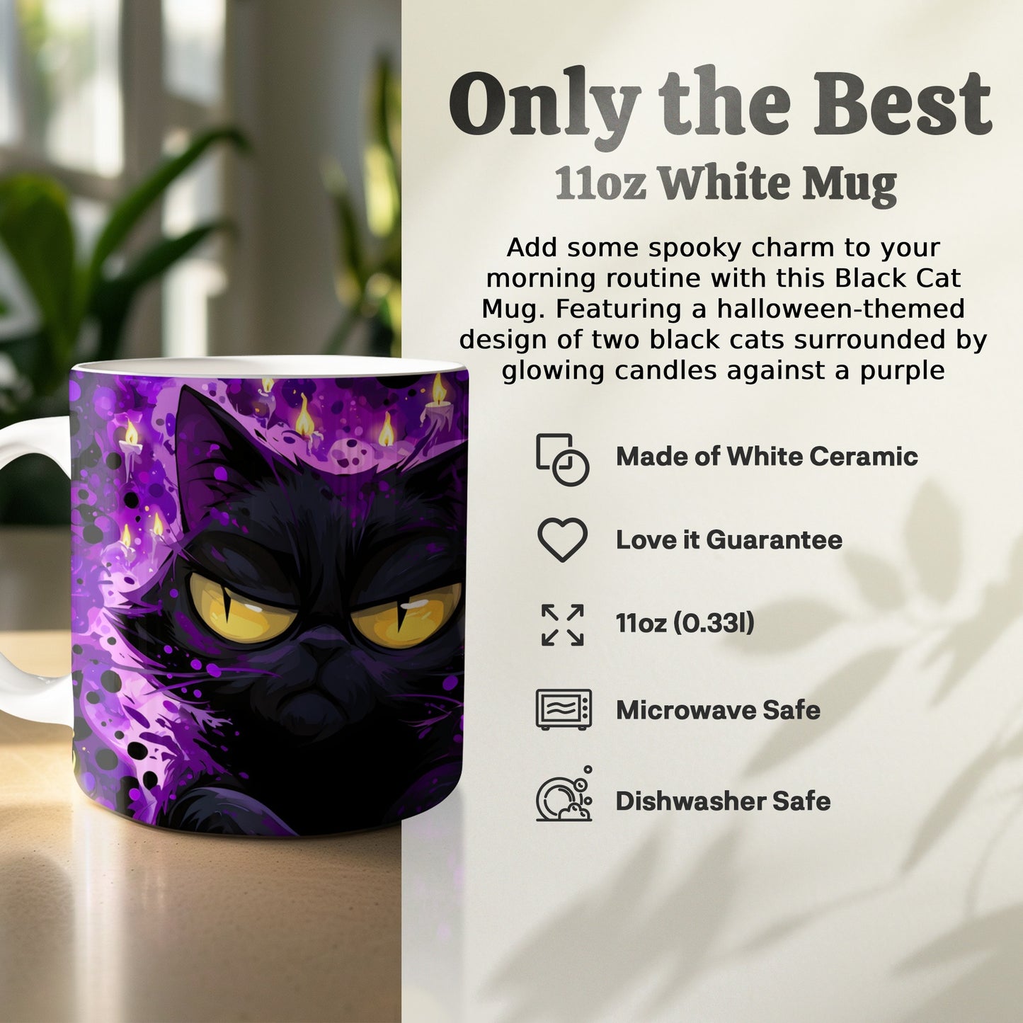 Black Cat Surrounded by Candles Halloween Themed Mug
