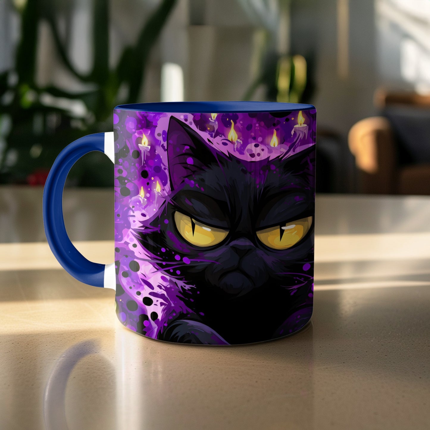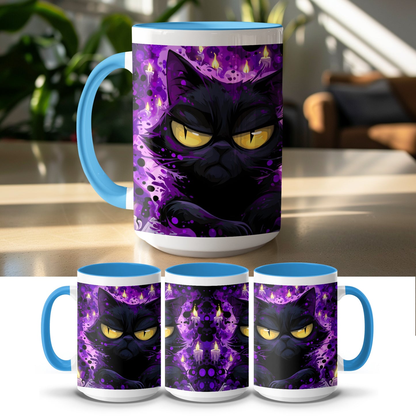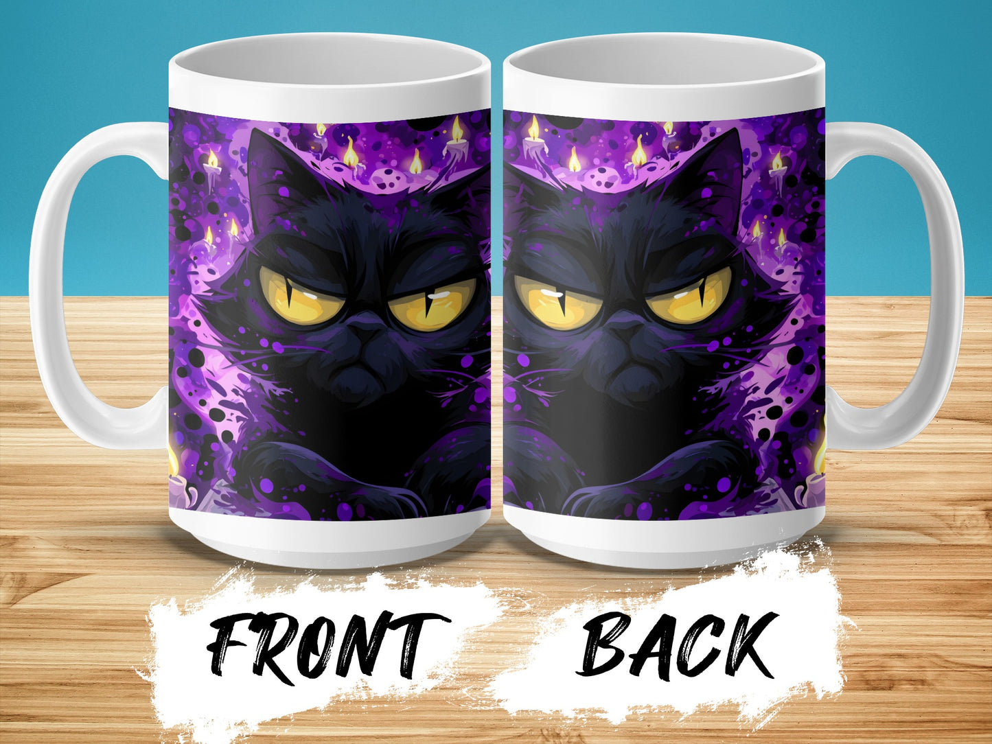 Black Cat Surrounded by Candles Halloween Themed Mug