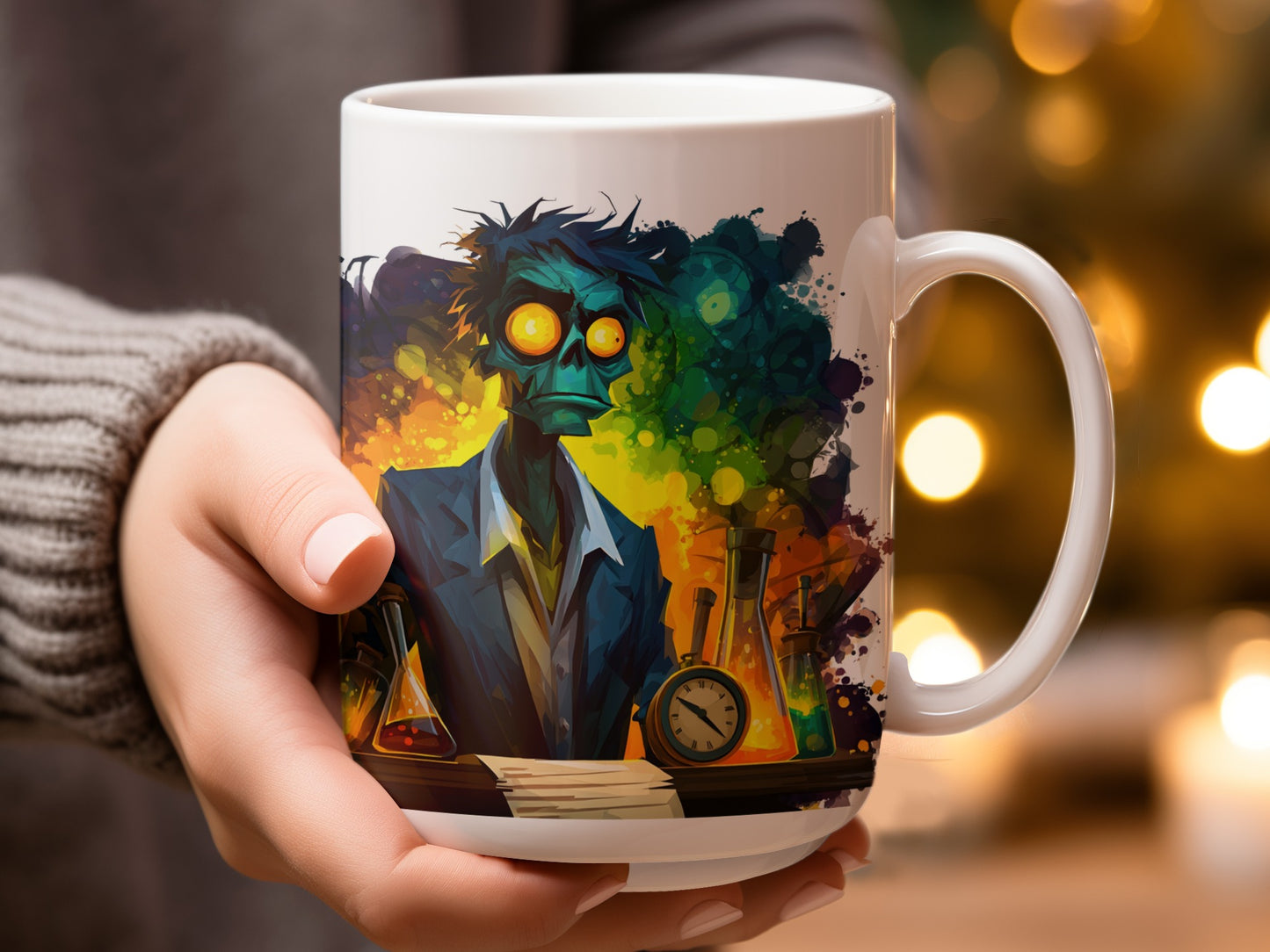 Mad Scientist Potion Clock Halloween Themed Graphic Mug