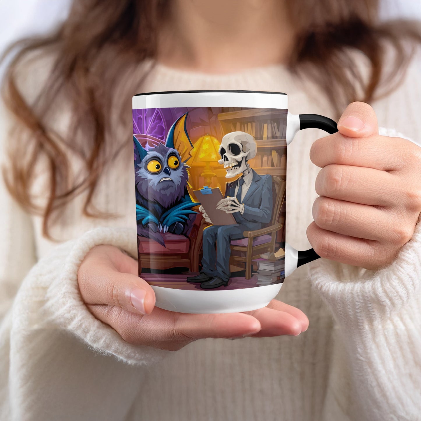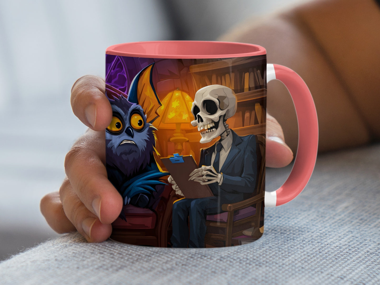 Cartoon Mug: Bat, Skeleton, Therapist, Counselling, Funny, Unique