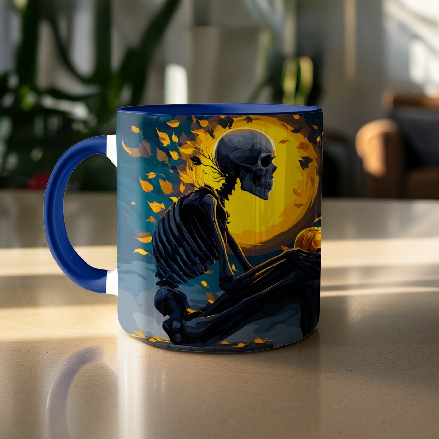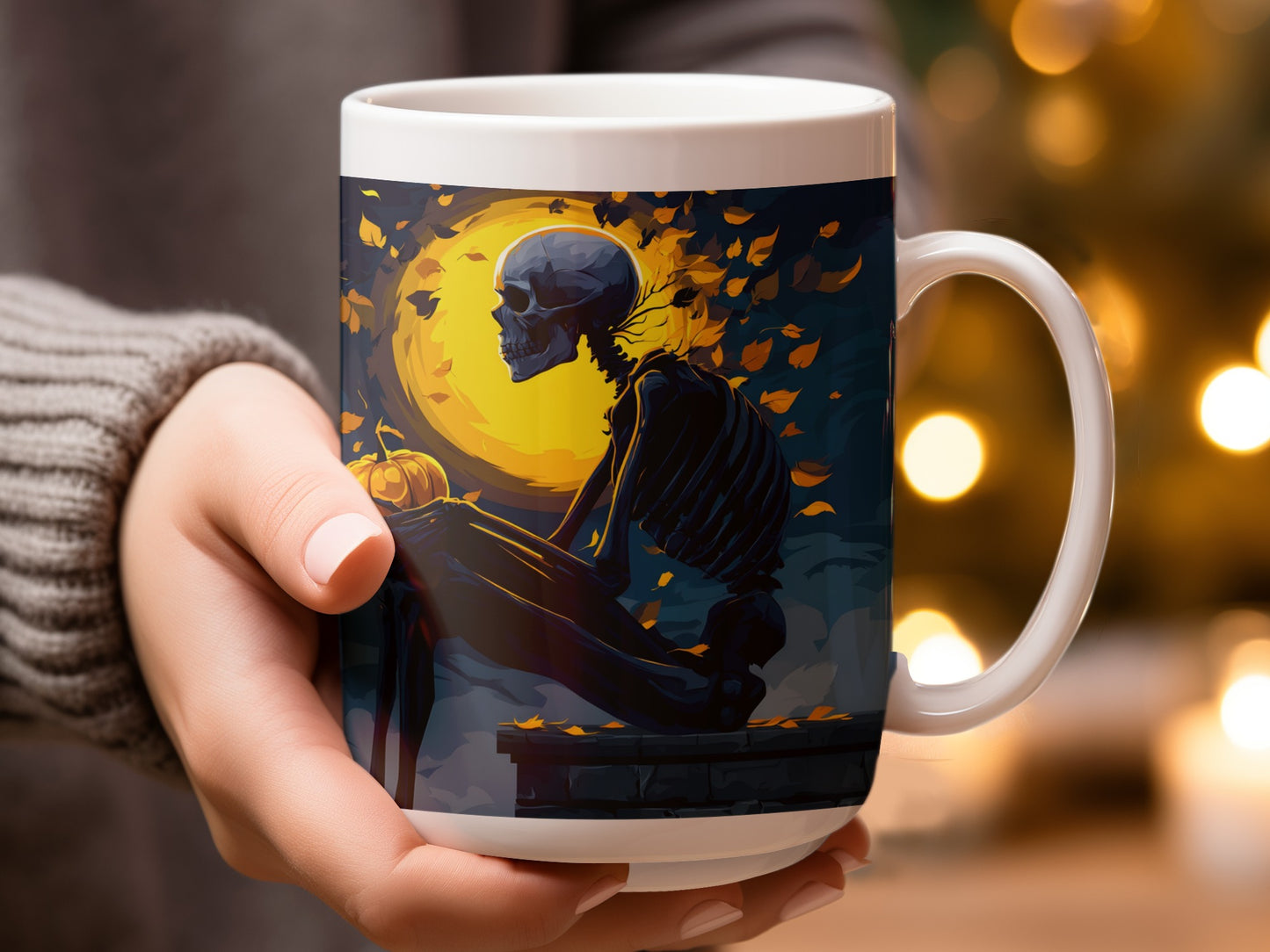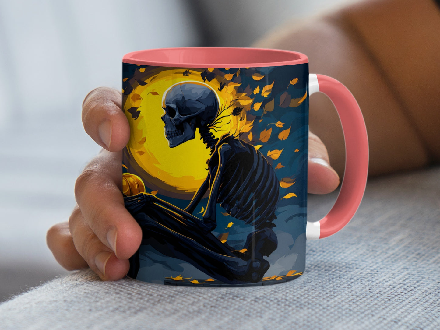Skeleton with Pumpkins and Moon Halloween Style Mug