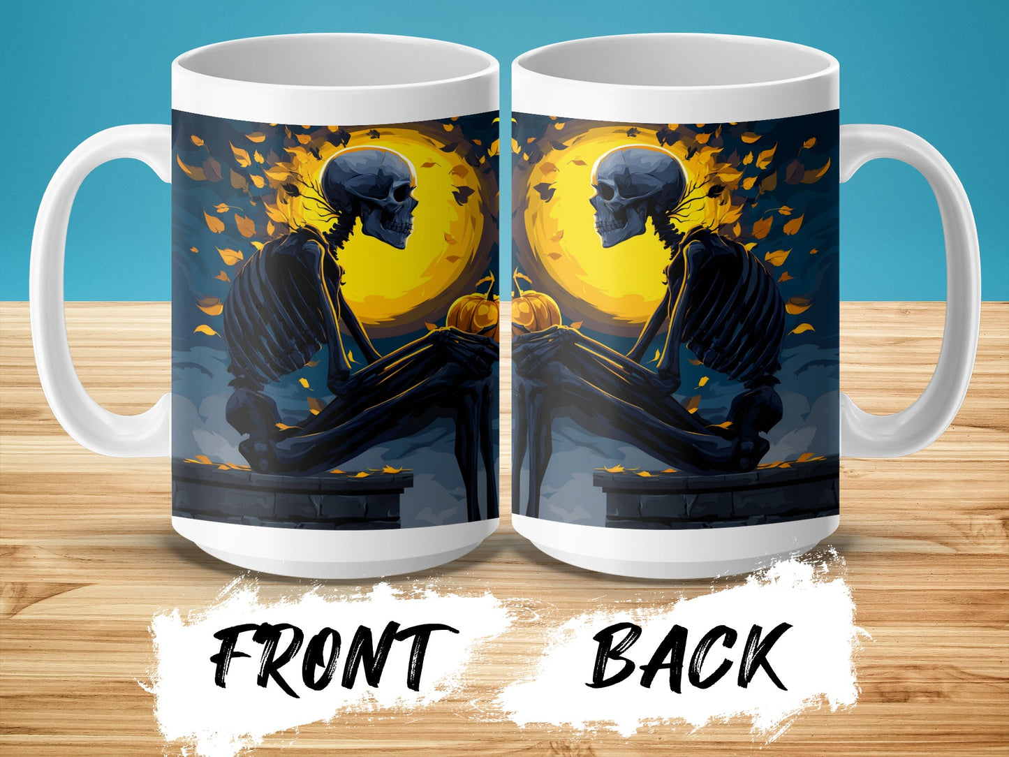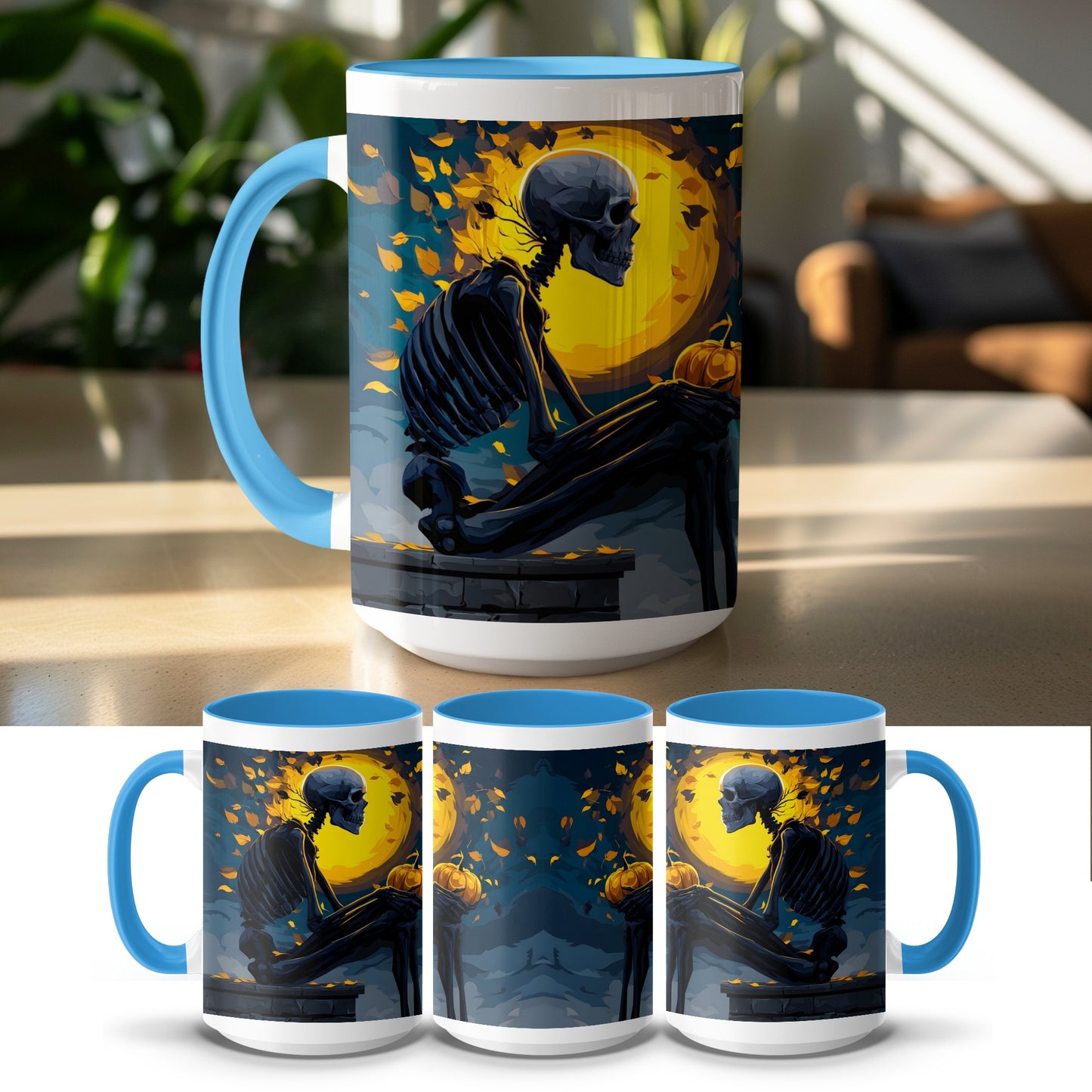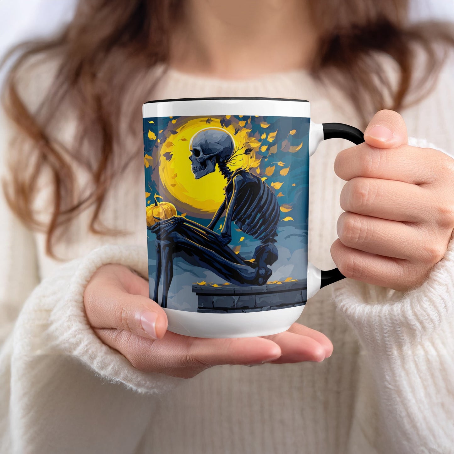 Skeleton with Pumpkins and Moon Halloween Style Mug