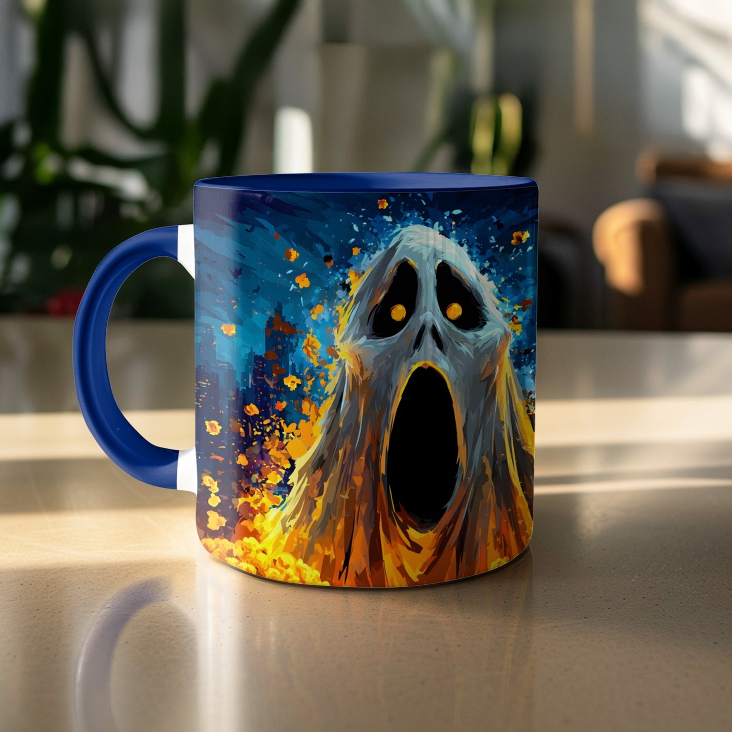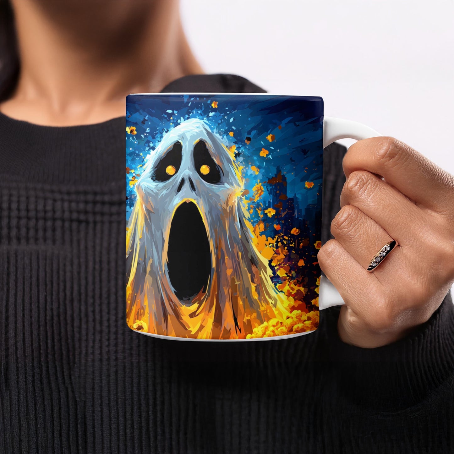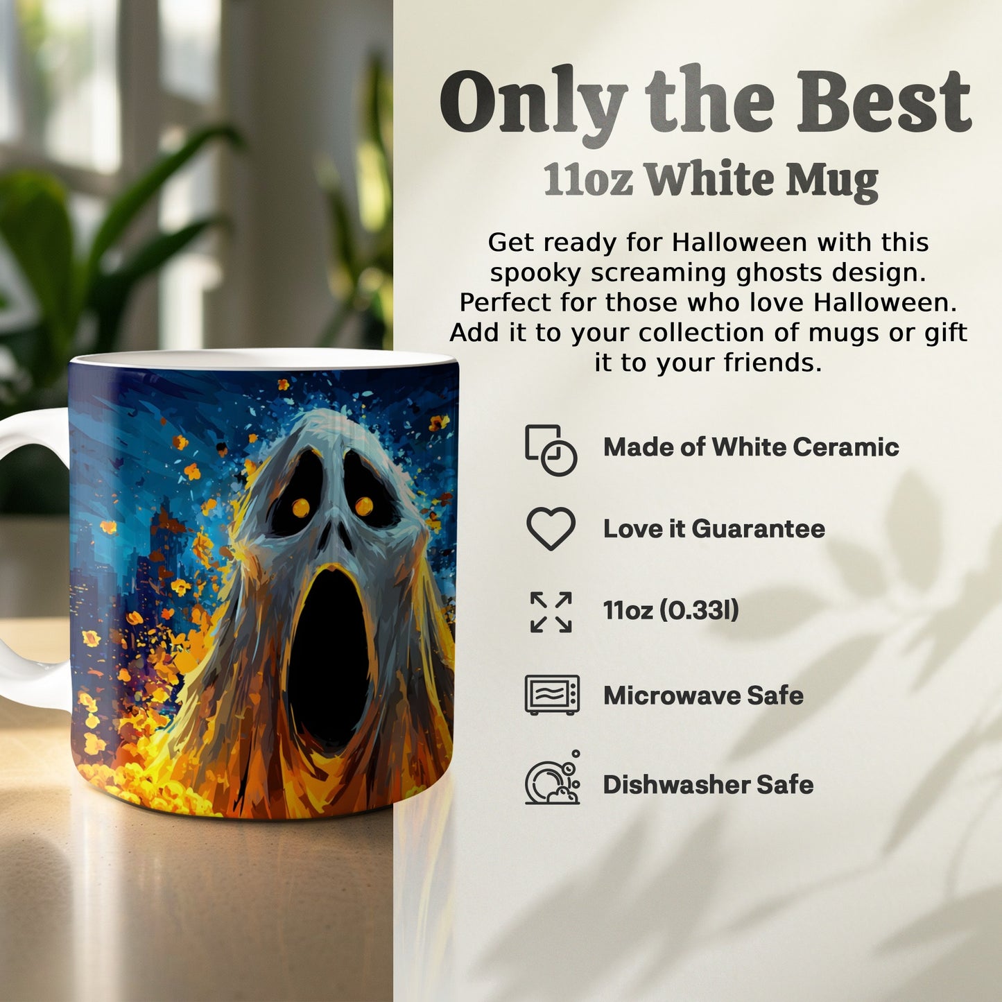 Spooky Screaming City Ghosts in Halloween-Themed Design Mug