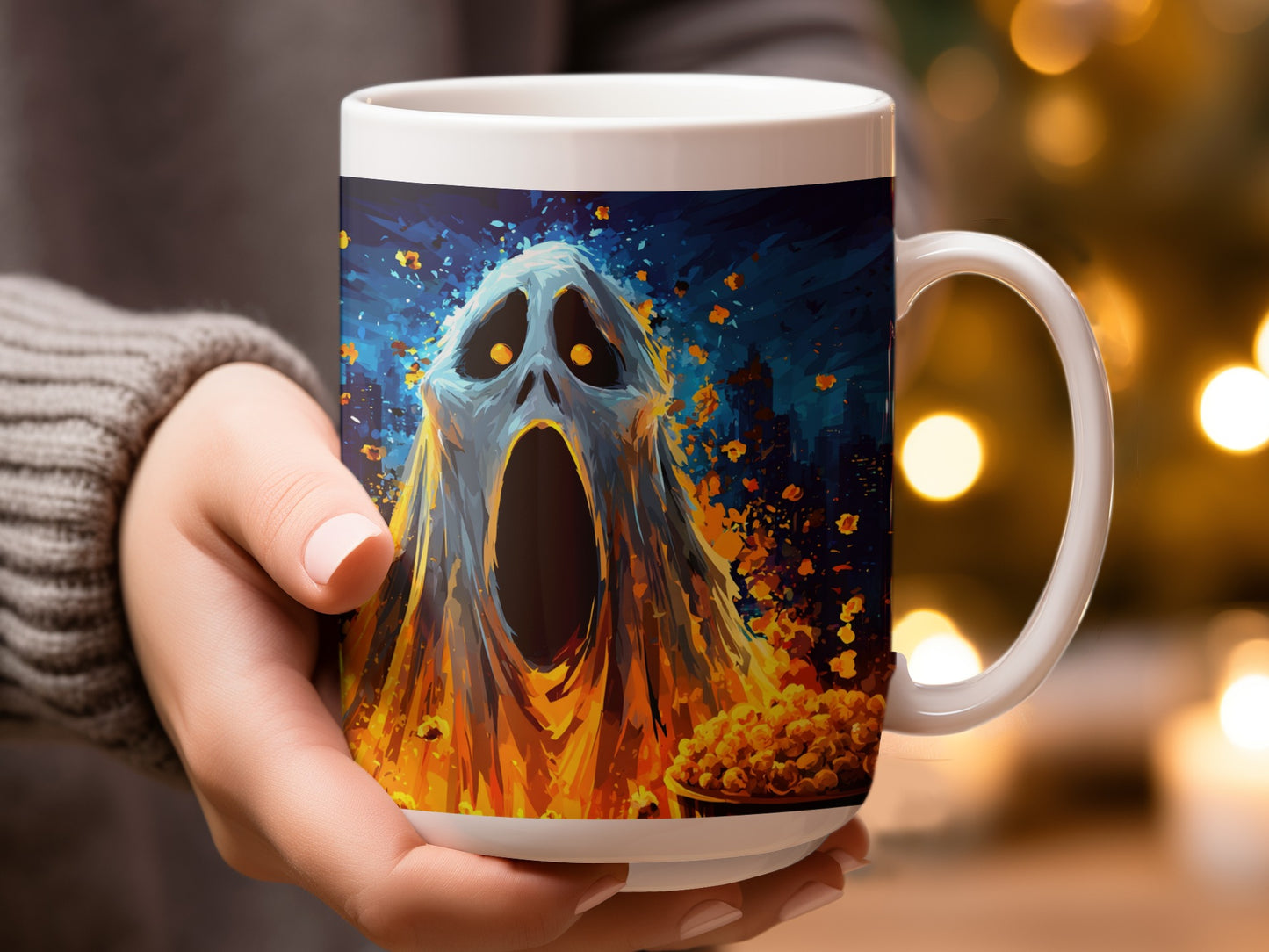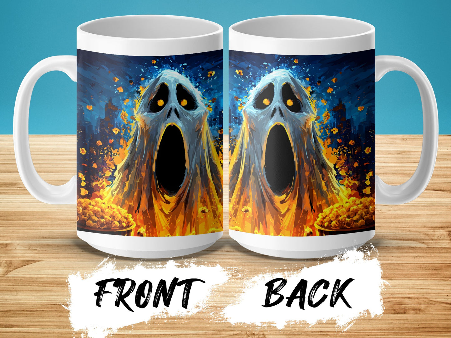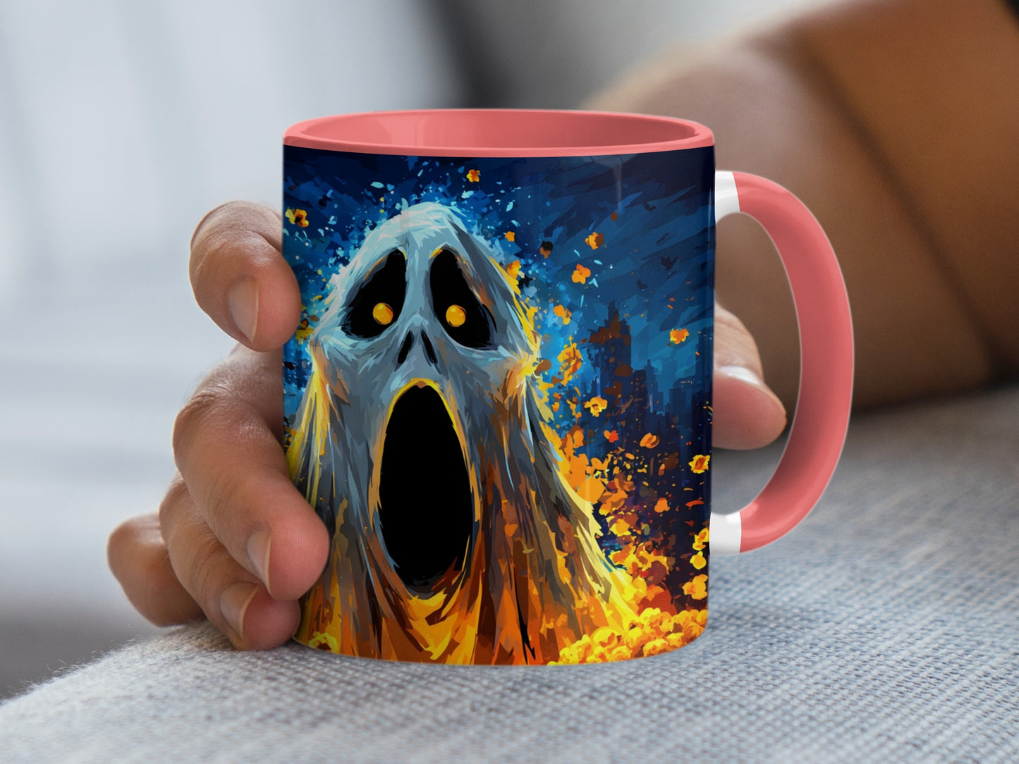 Spooky Screaming City Ghosts in Halloween-Themed Design Mug
