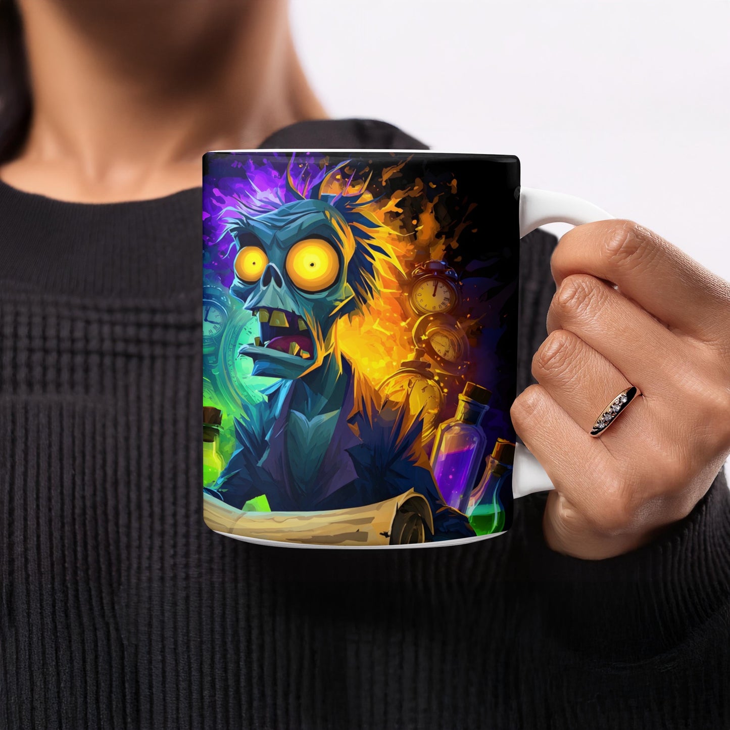 Mad Scientist Potion With Clocks Art Halloween-Themed Mug