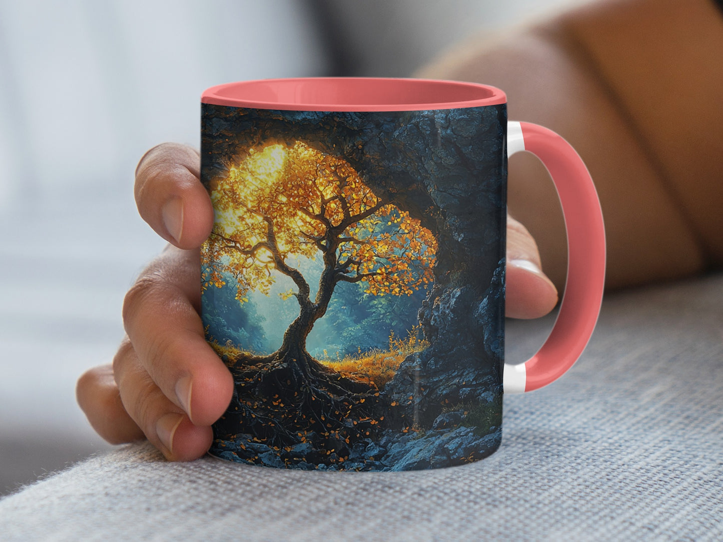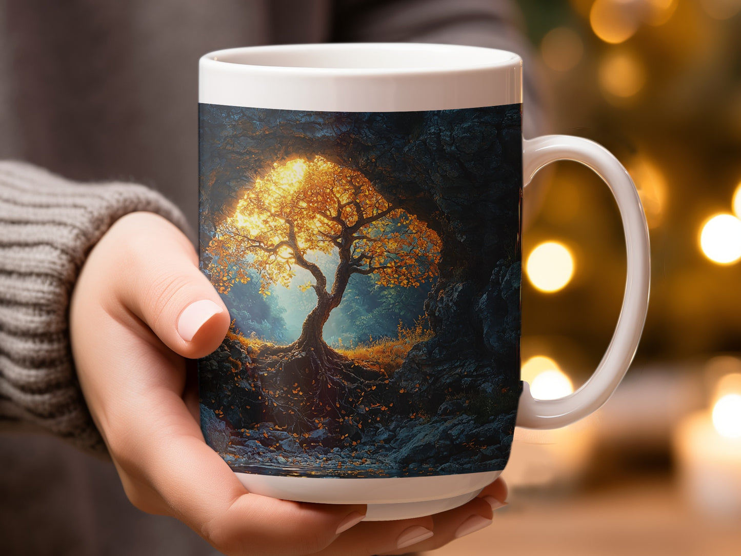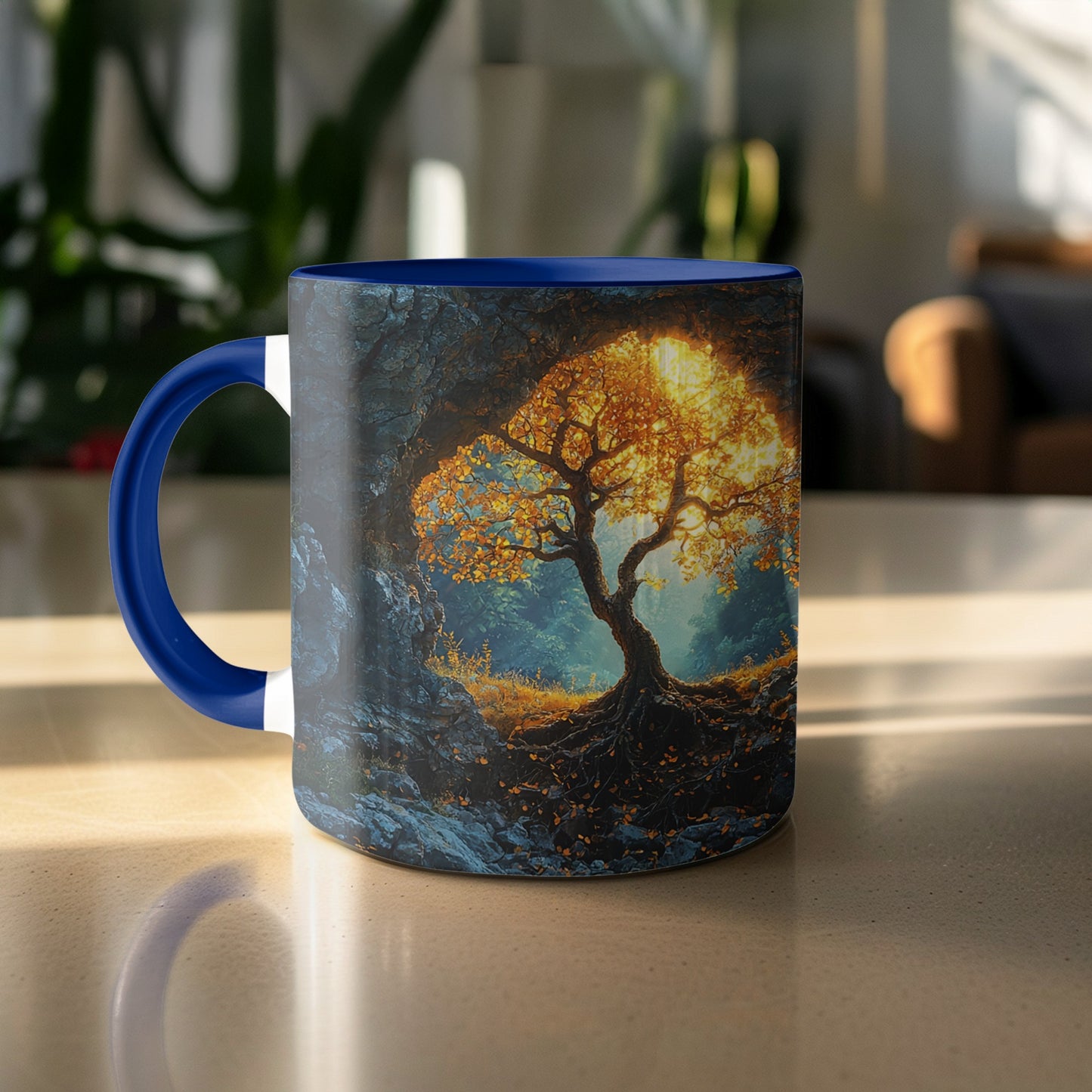 Tree Mug: Fall Colors, Cave Entrance, Artistic Design