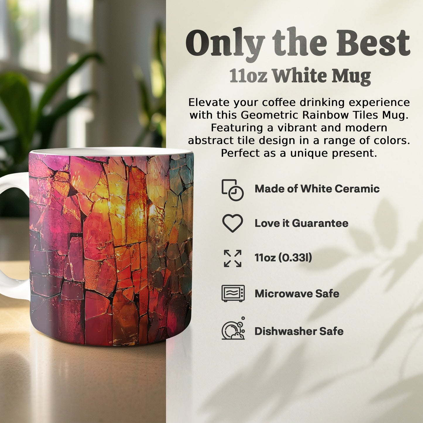 Mosaic Mug: Abstract Red Blue, Colorful Design, Geometric Pattern