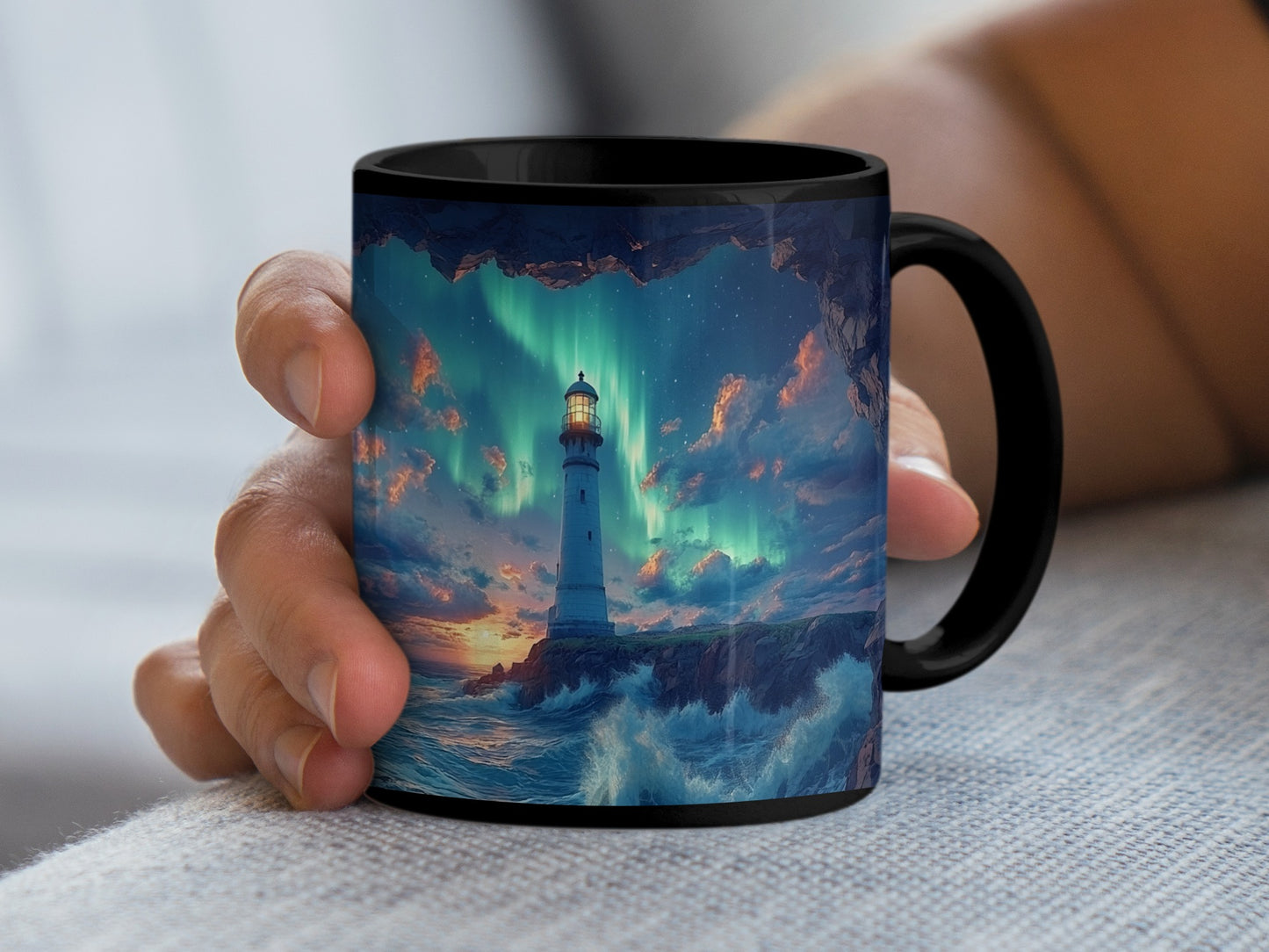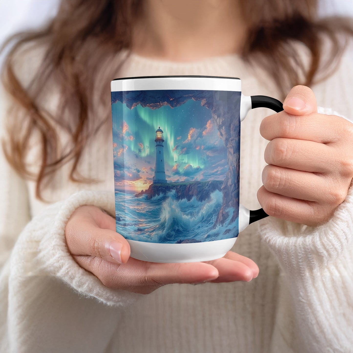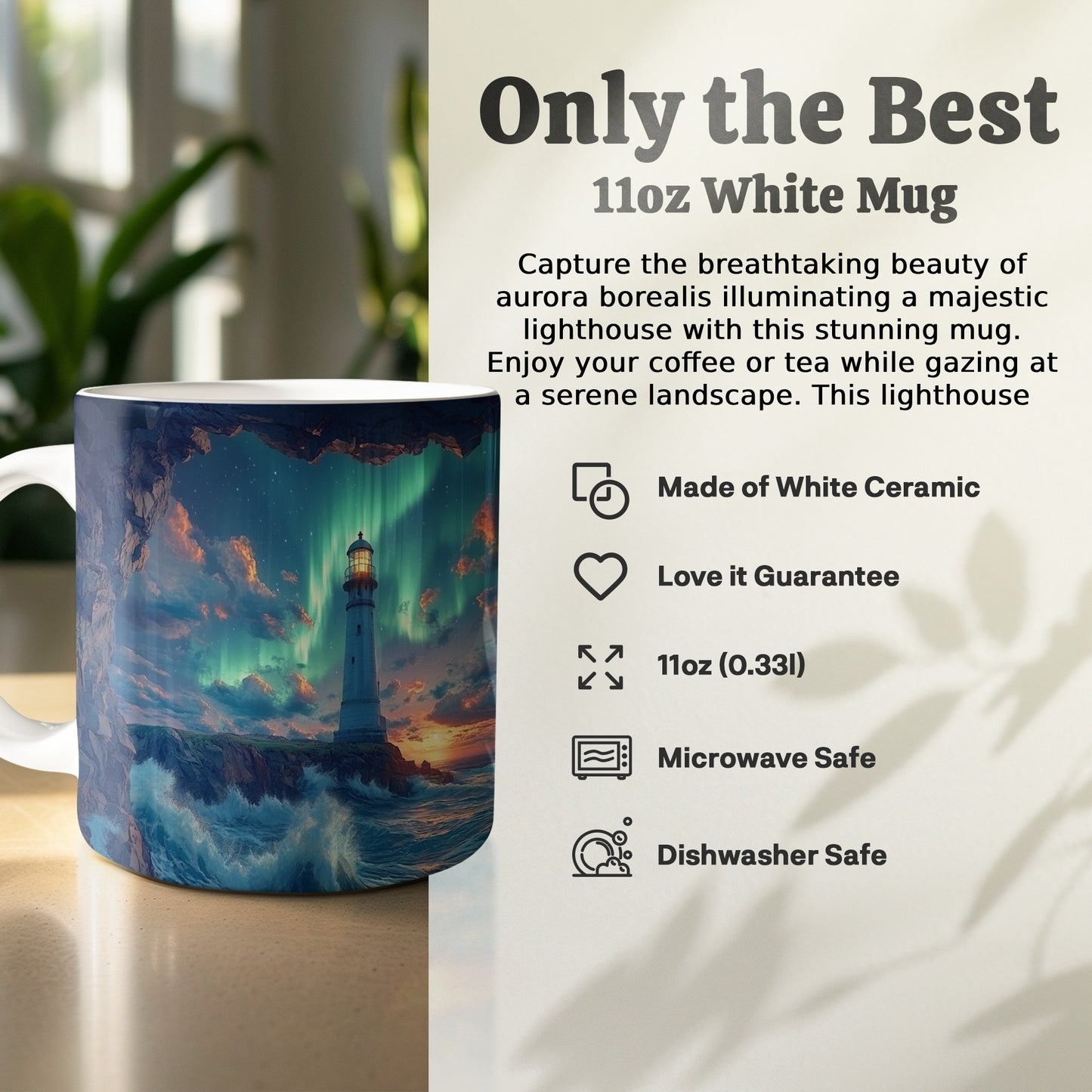 Aurora Over Lighthouse Scenic Landscape Art Display Mug