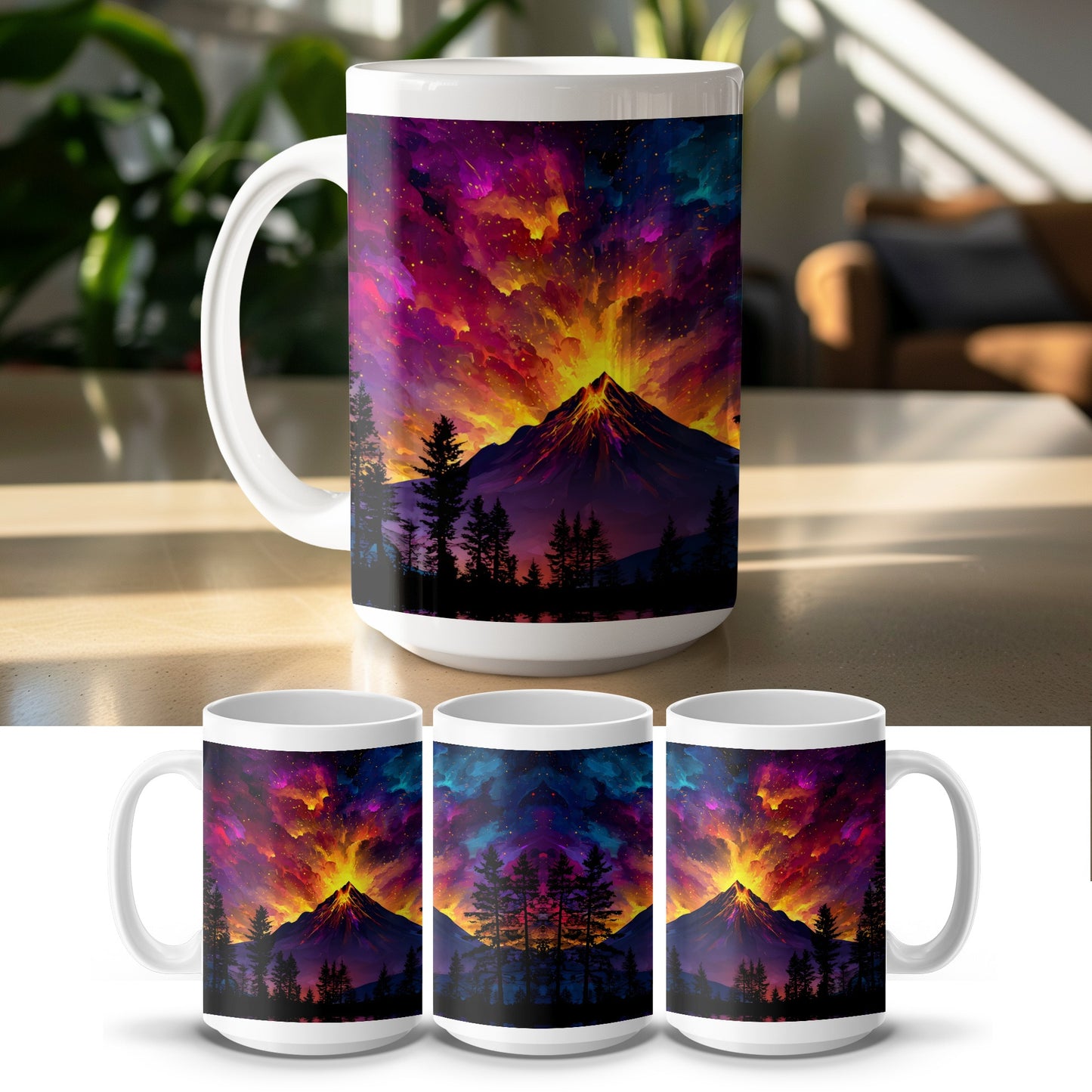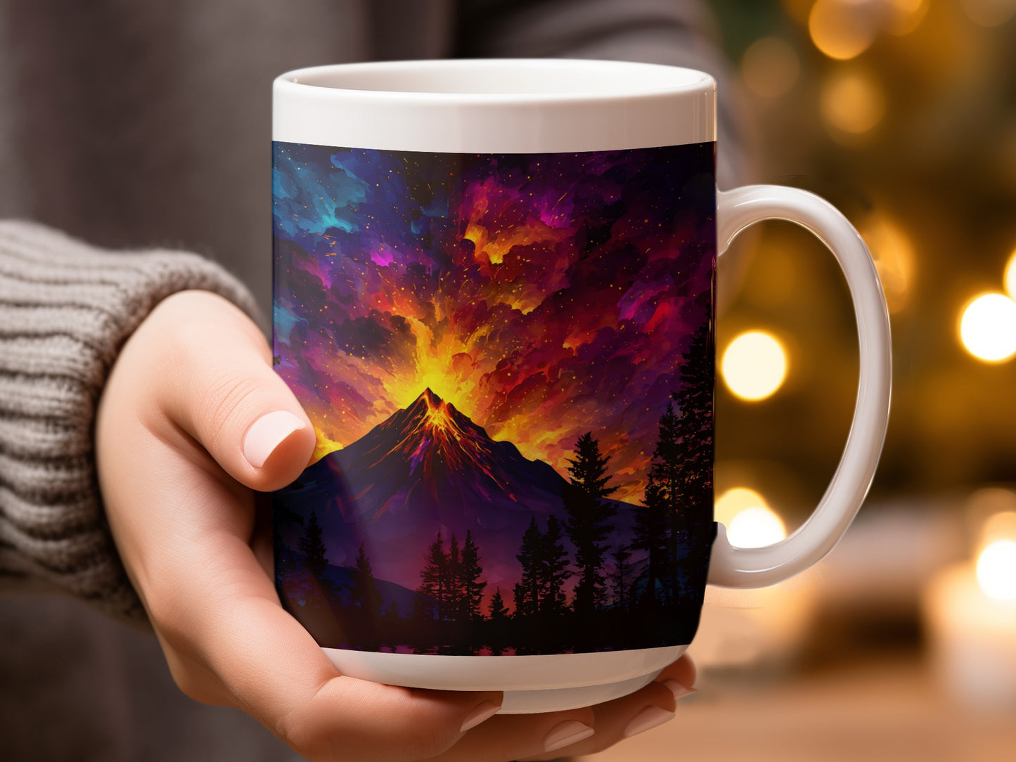 Mirrored Eruption Forest Night Sky Landscape Image Mug