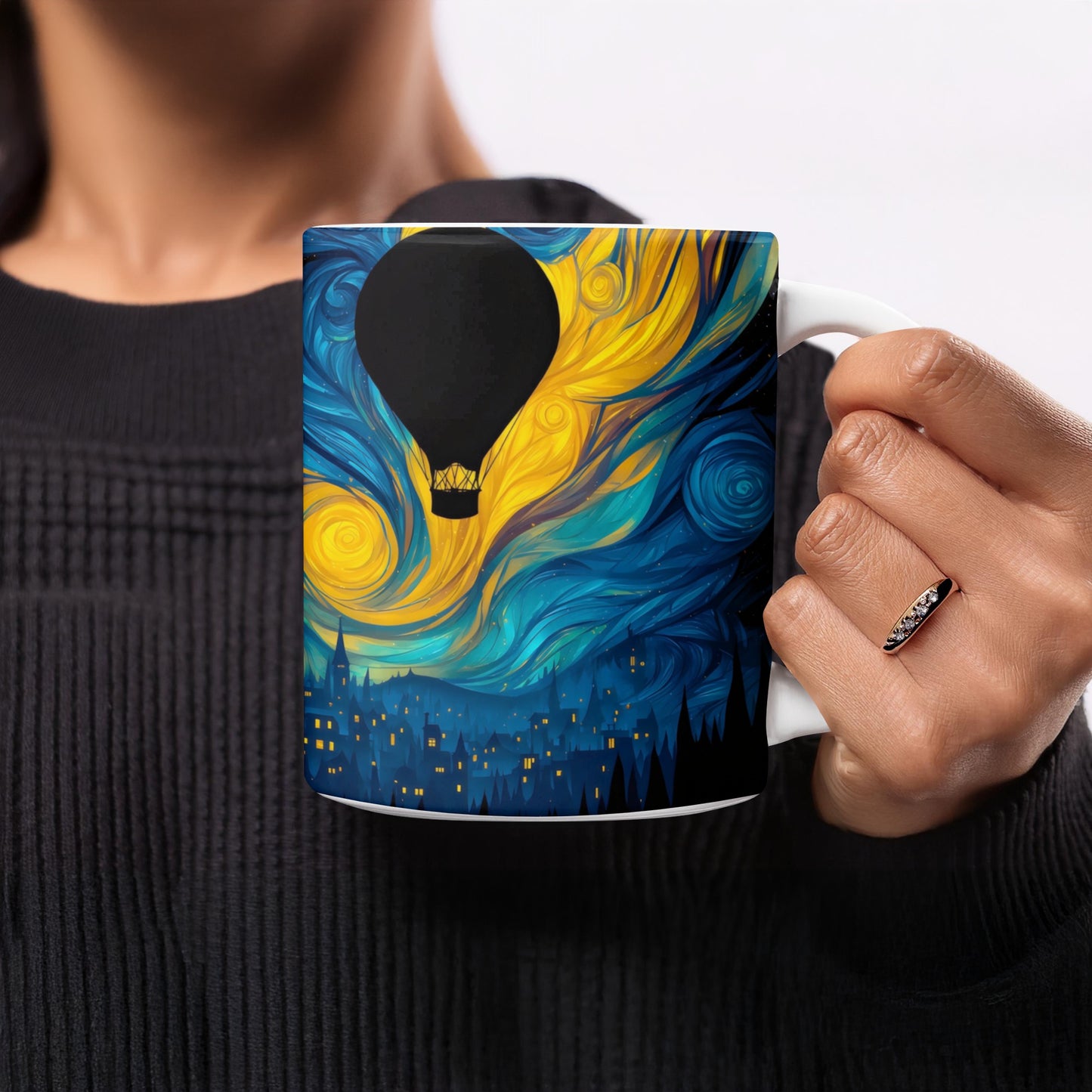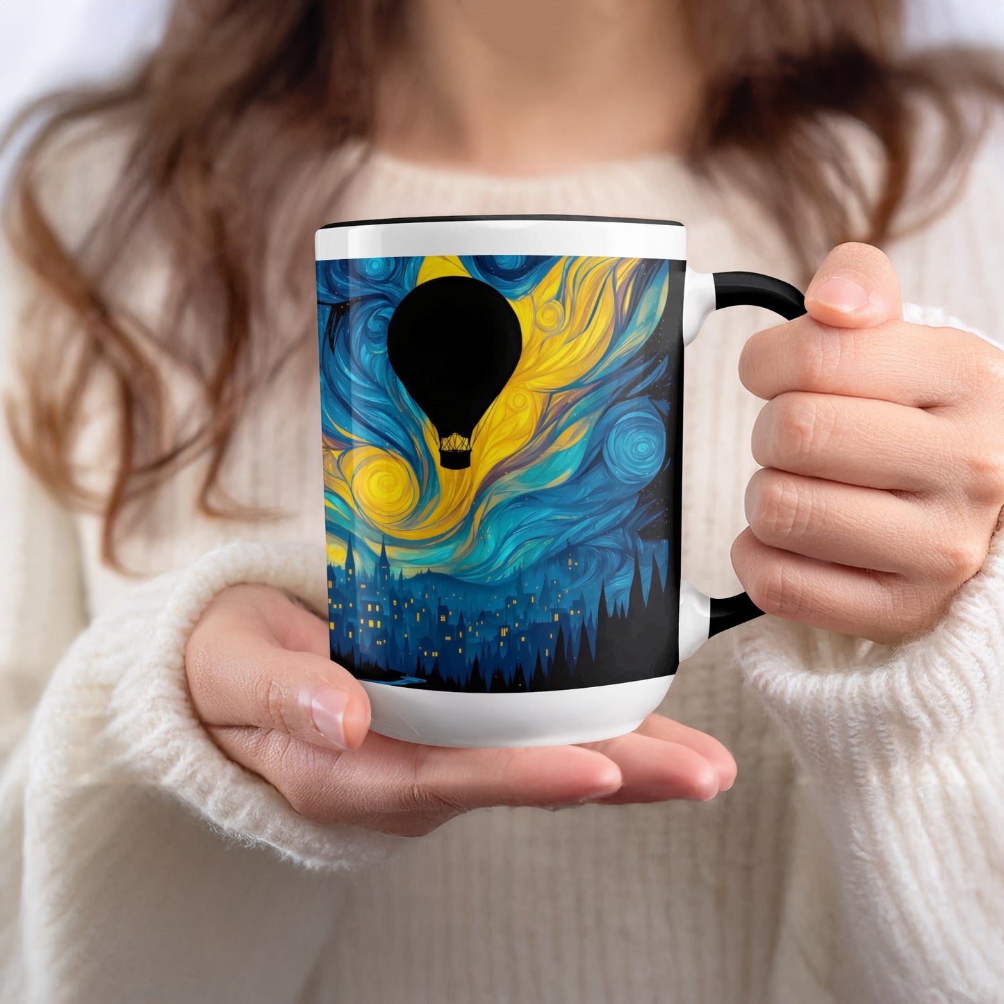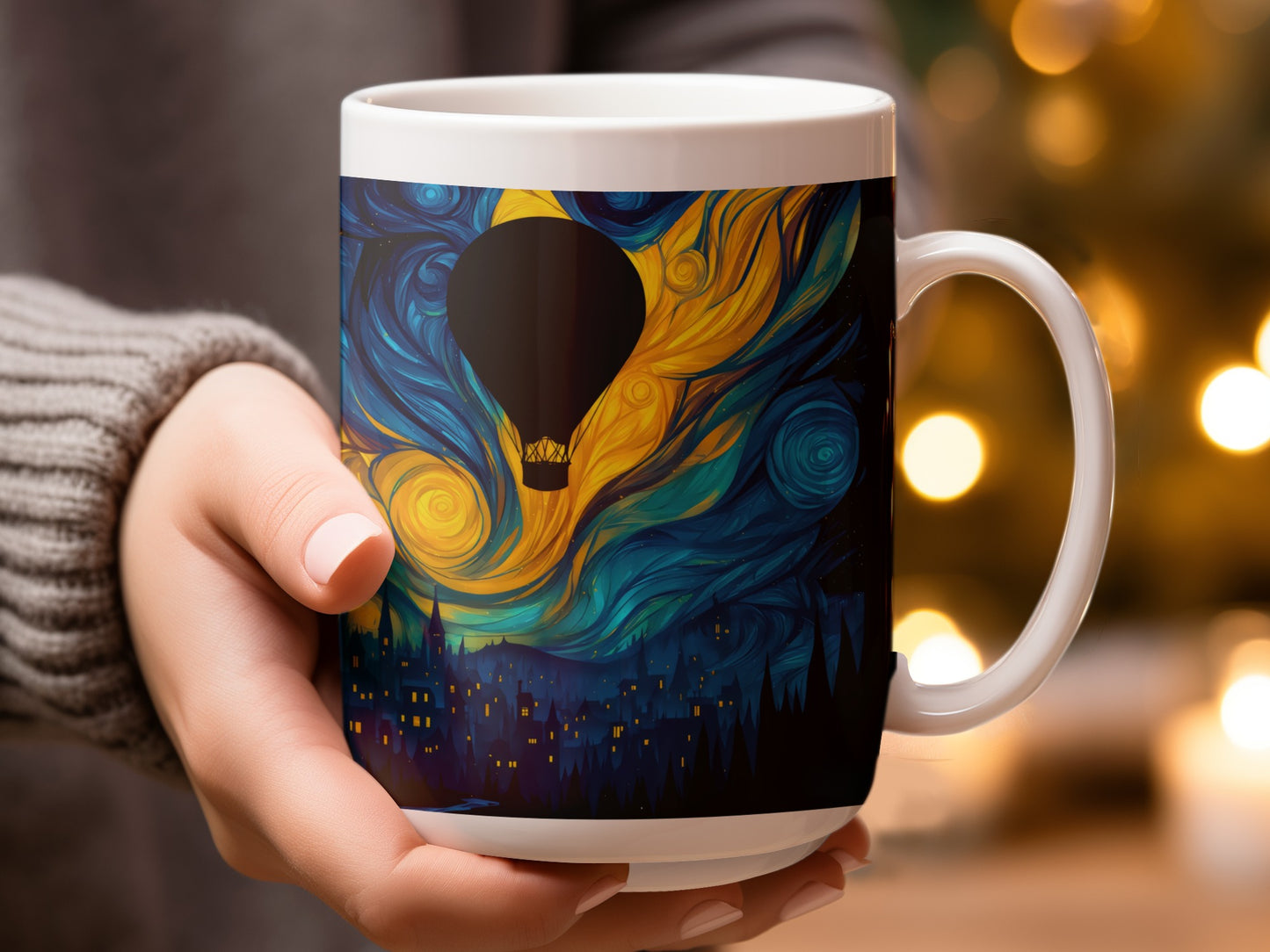 Night Sky Hot Air Balloon Fantasy Art Design Mug