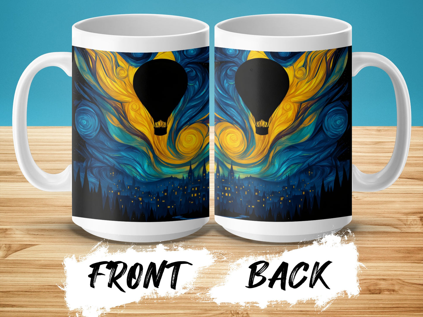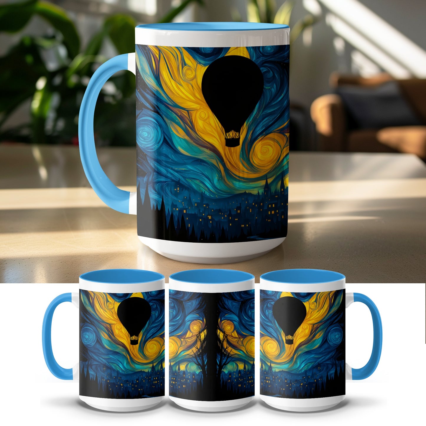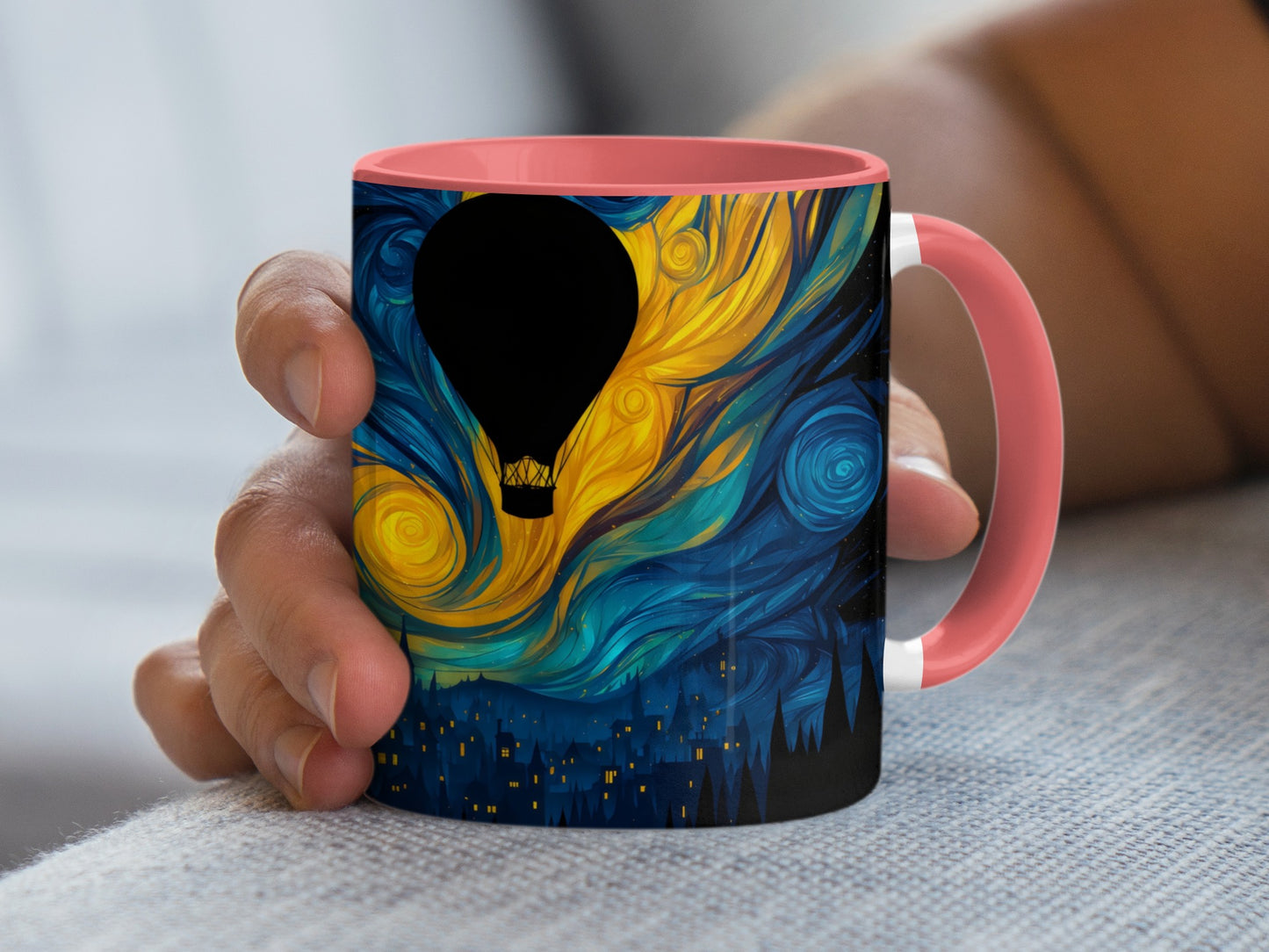 Night Sky Hot Air Balloon Fantasy Art Design Mug