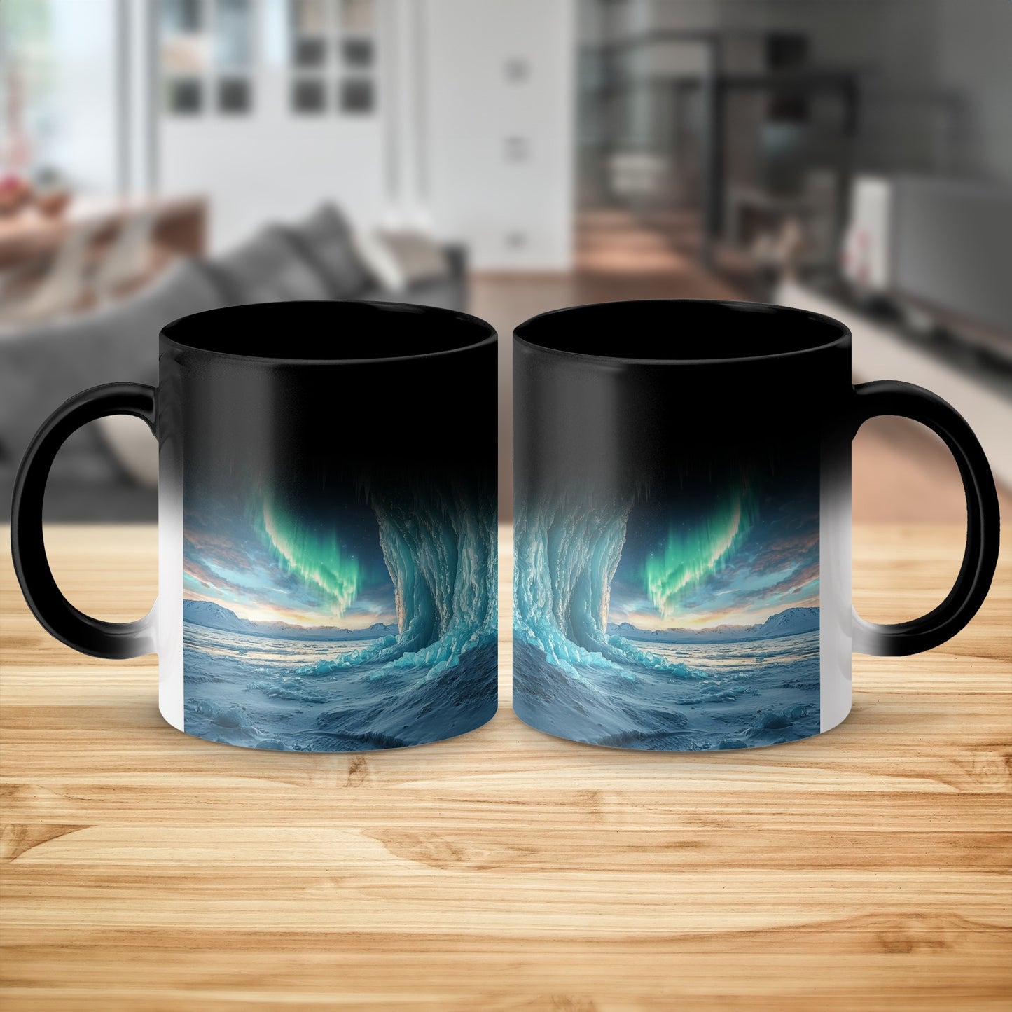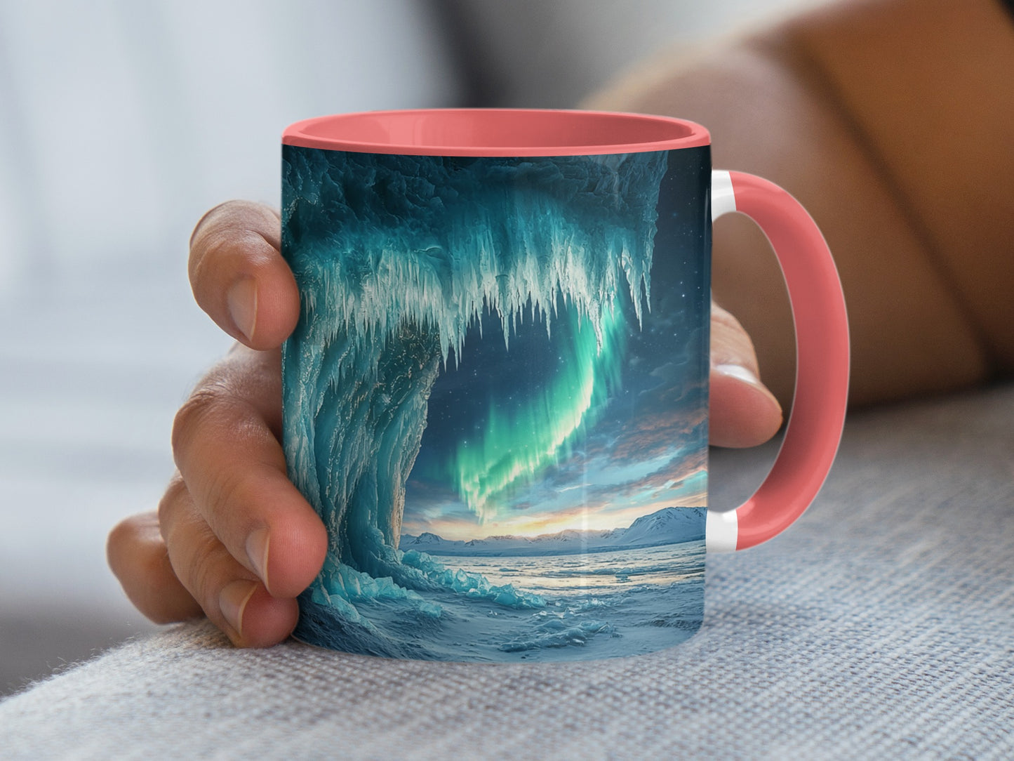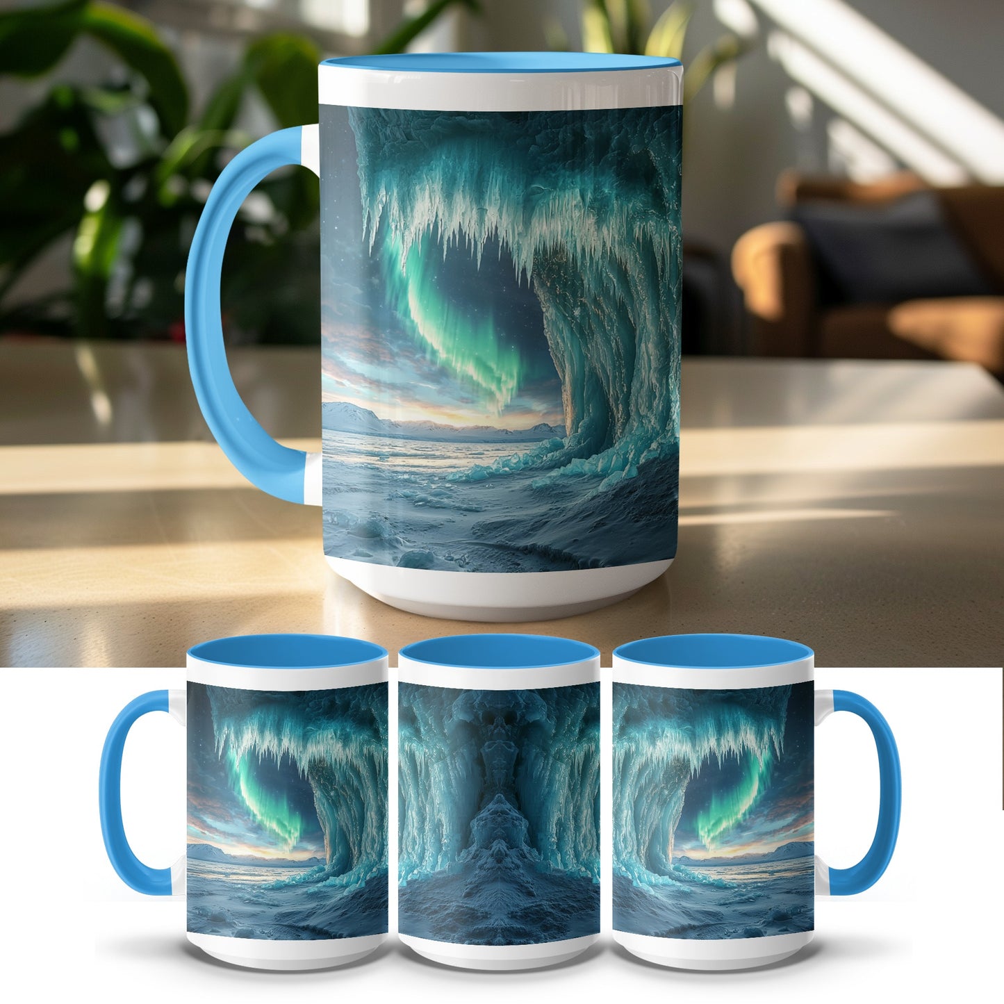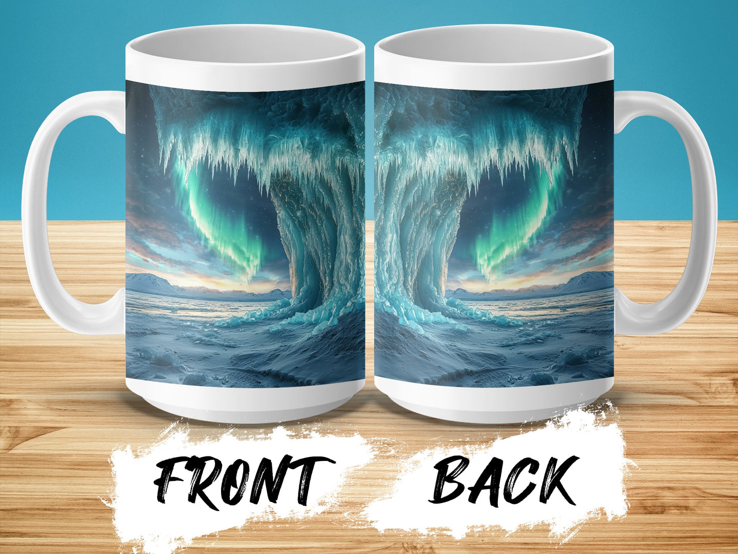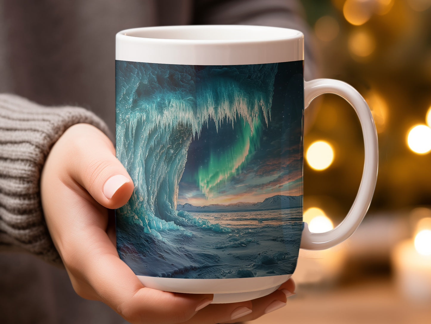 Ice Cave Mug: Aurora Borealis, Landscape Scene, Winter Theme
