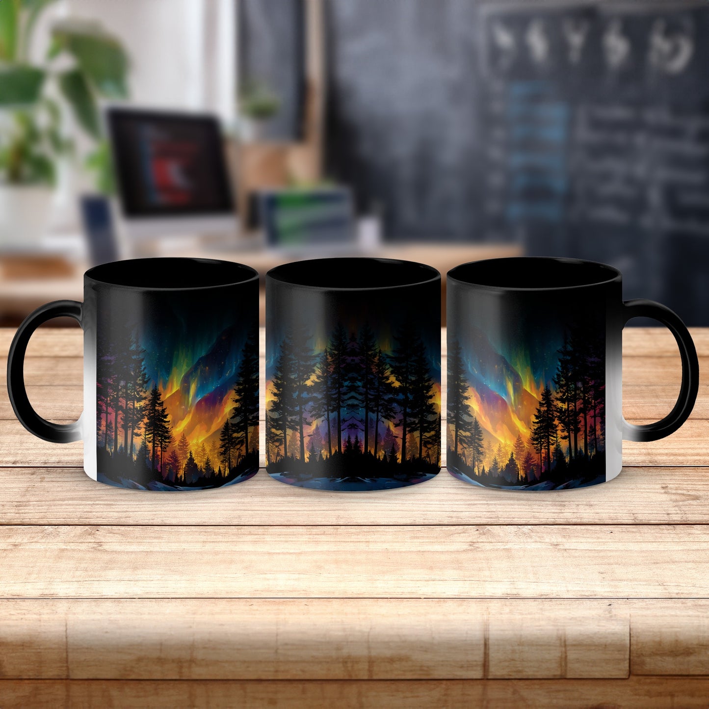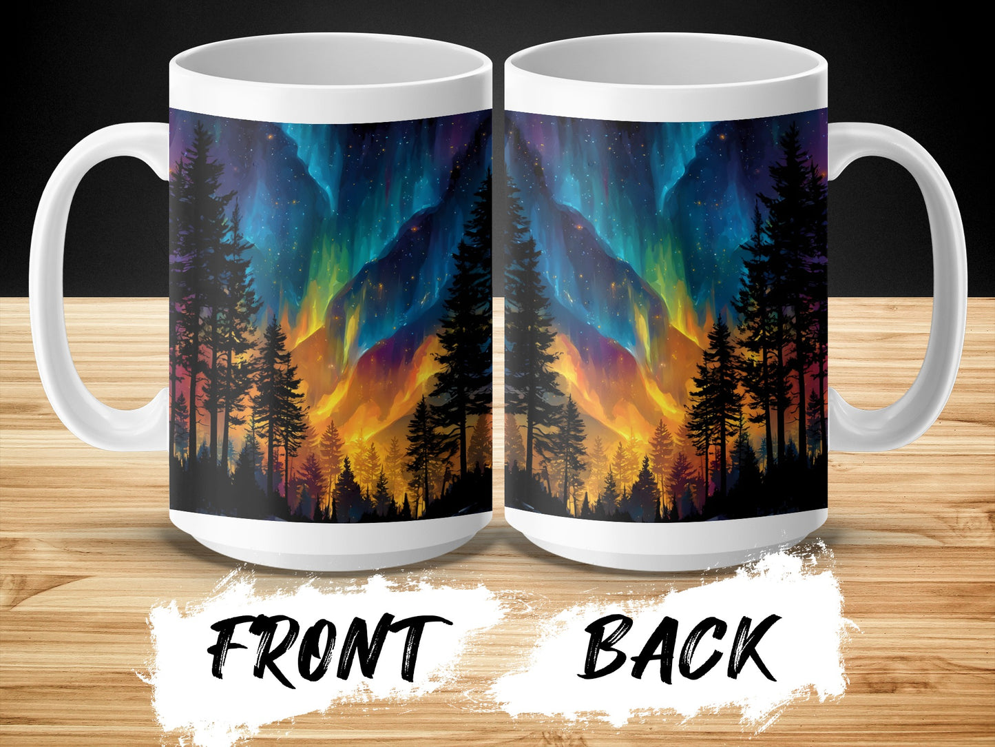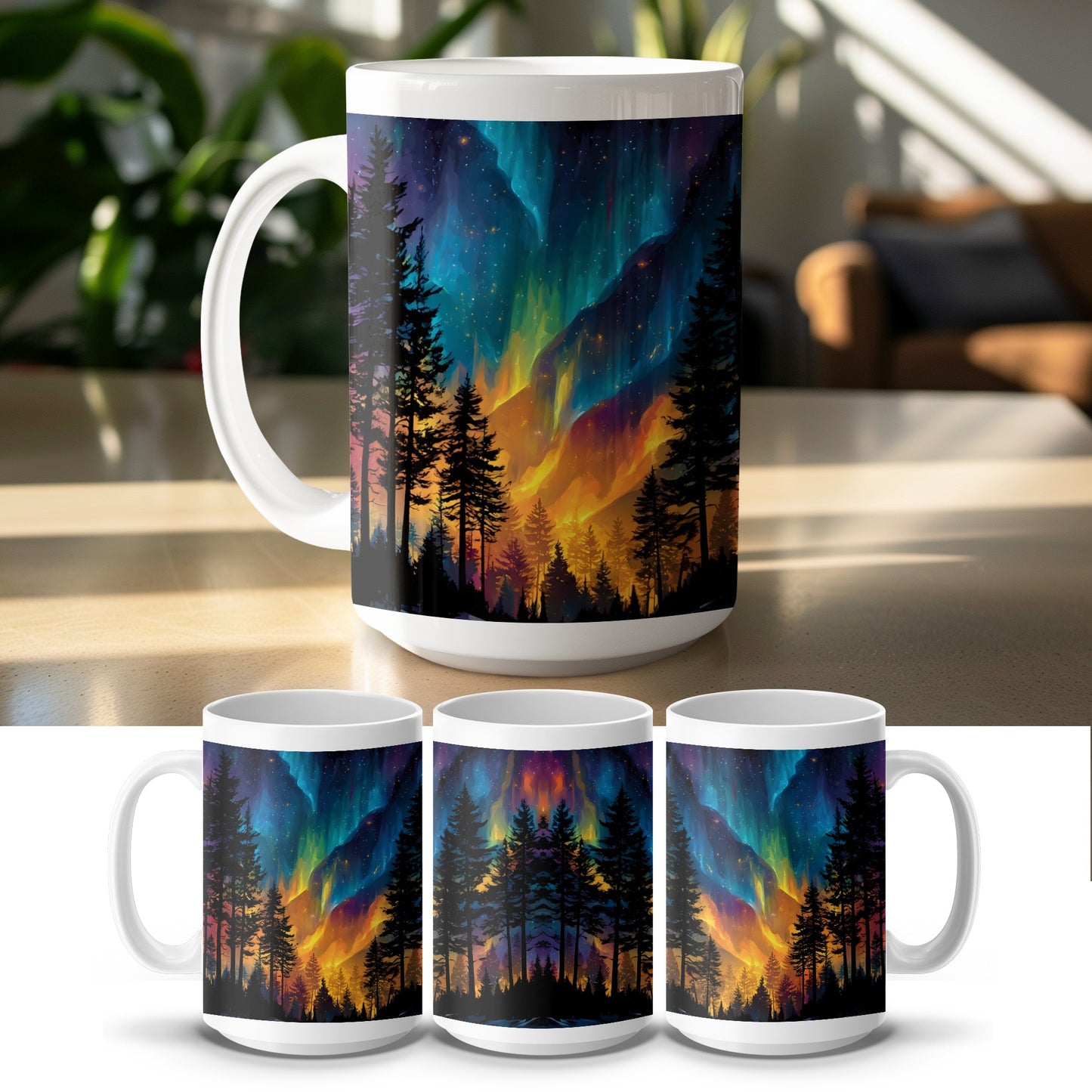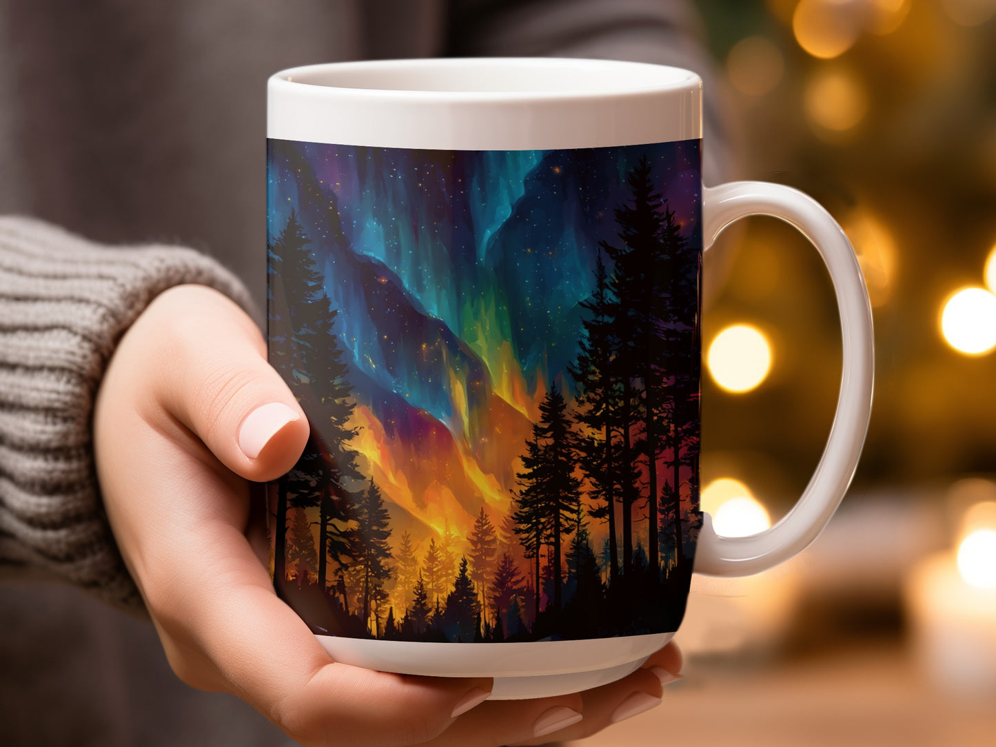 Northern Lights Above The Forest Scene Art Gift Idea Mug